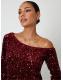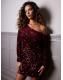 Threadbare Red Sequin Velour Slash Neck Mini Dress