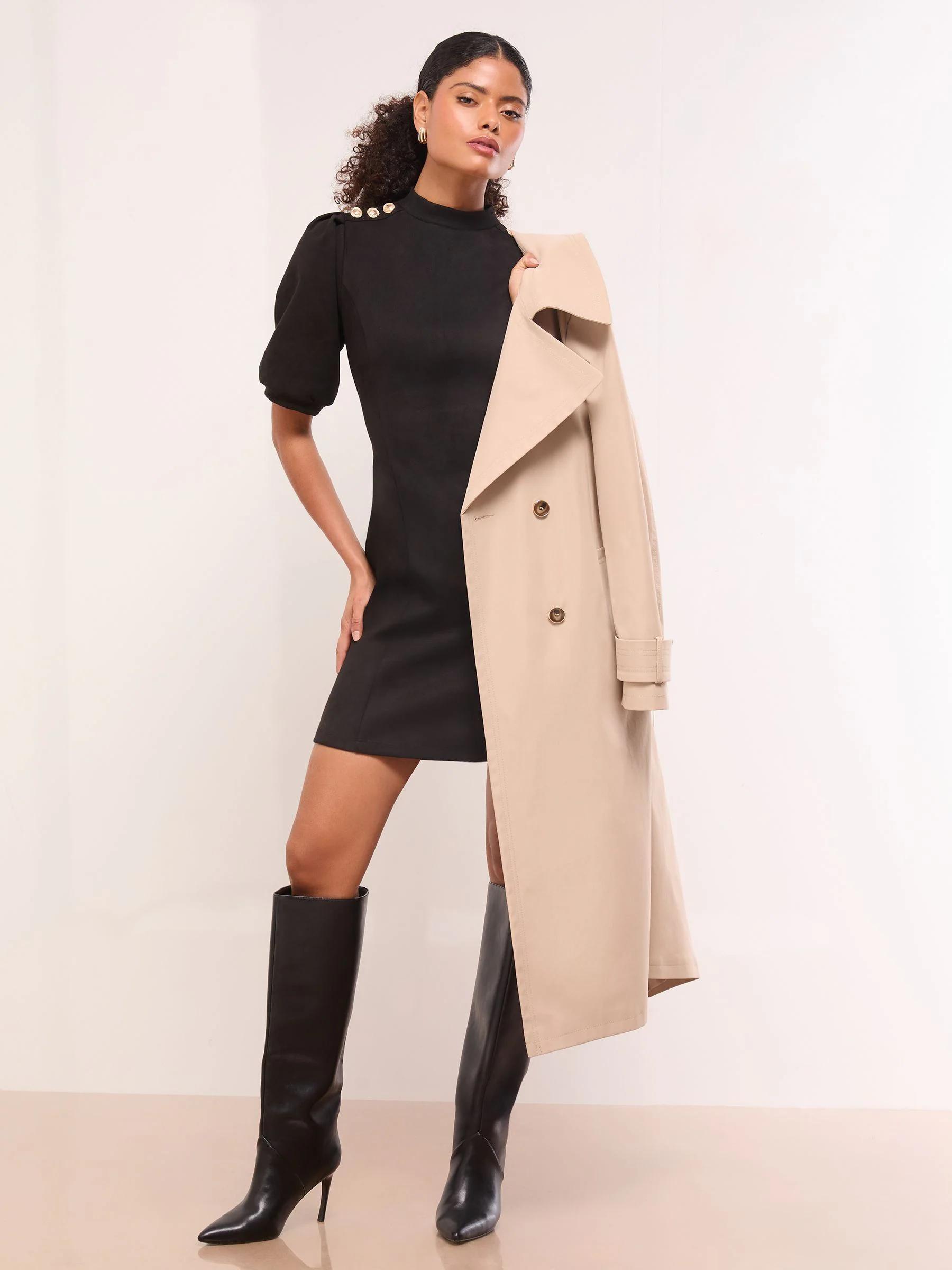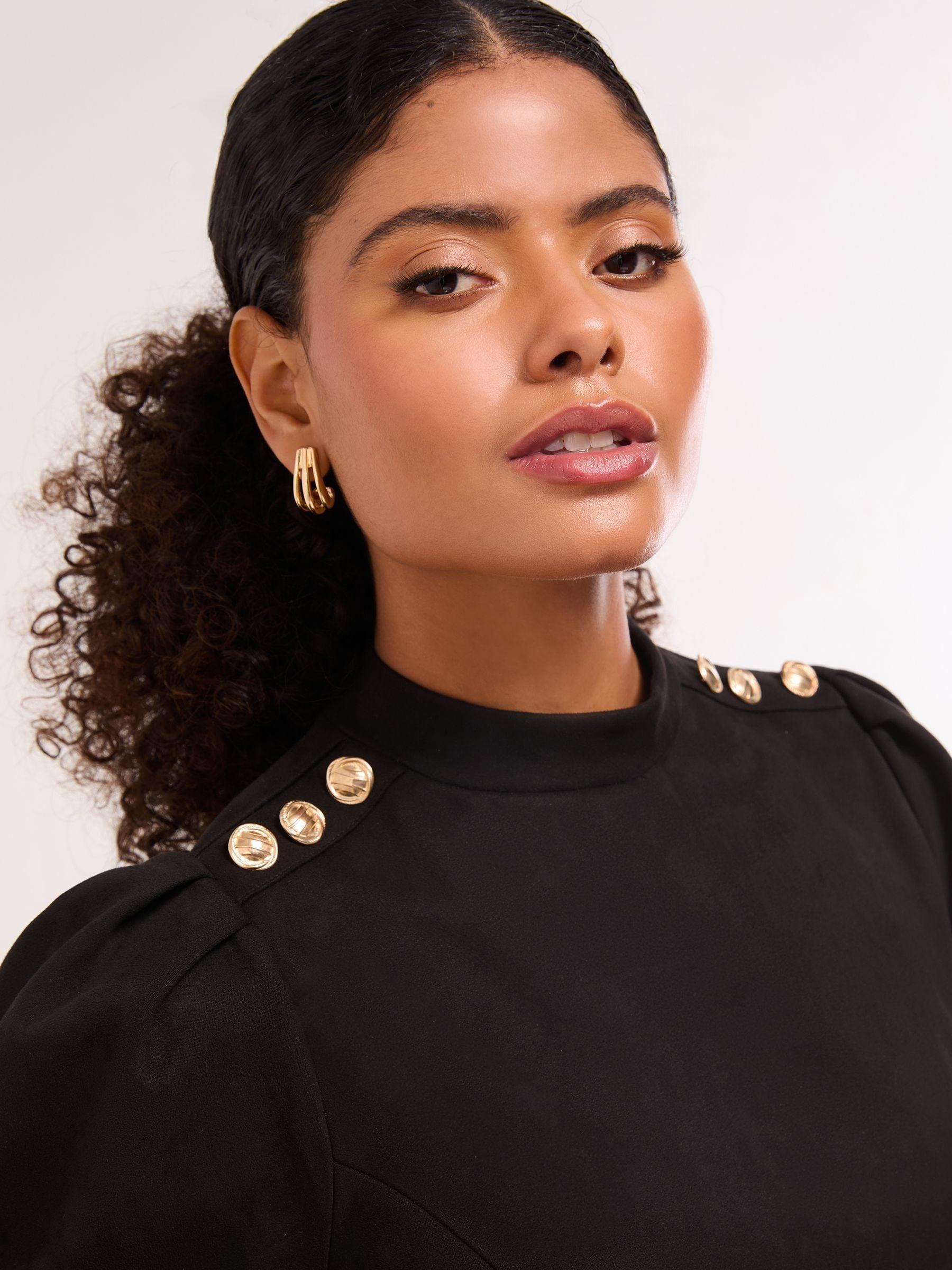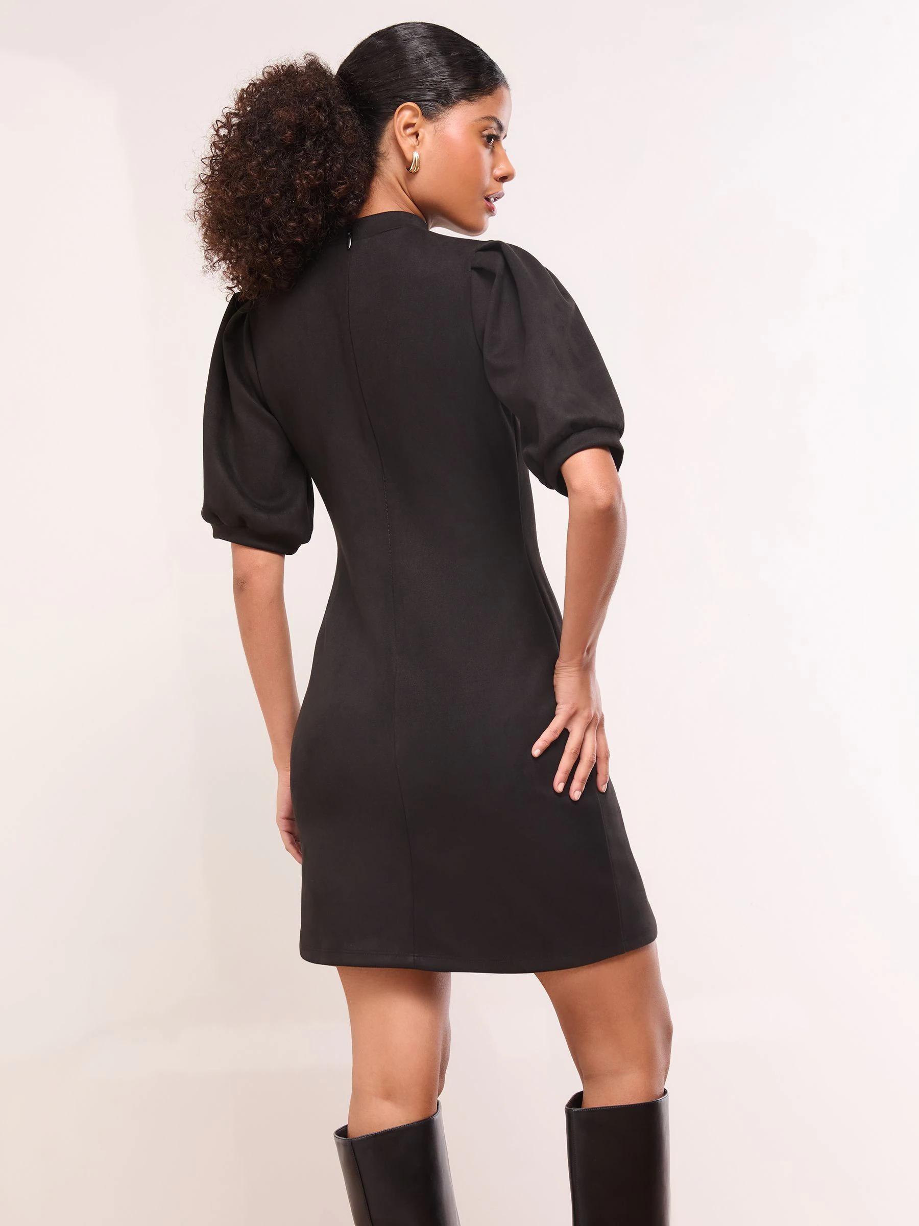 Lipsy Black Mini Faux Suede Short Sleeve Dress