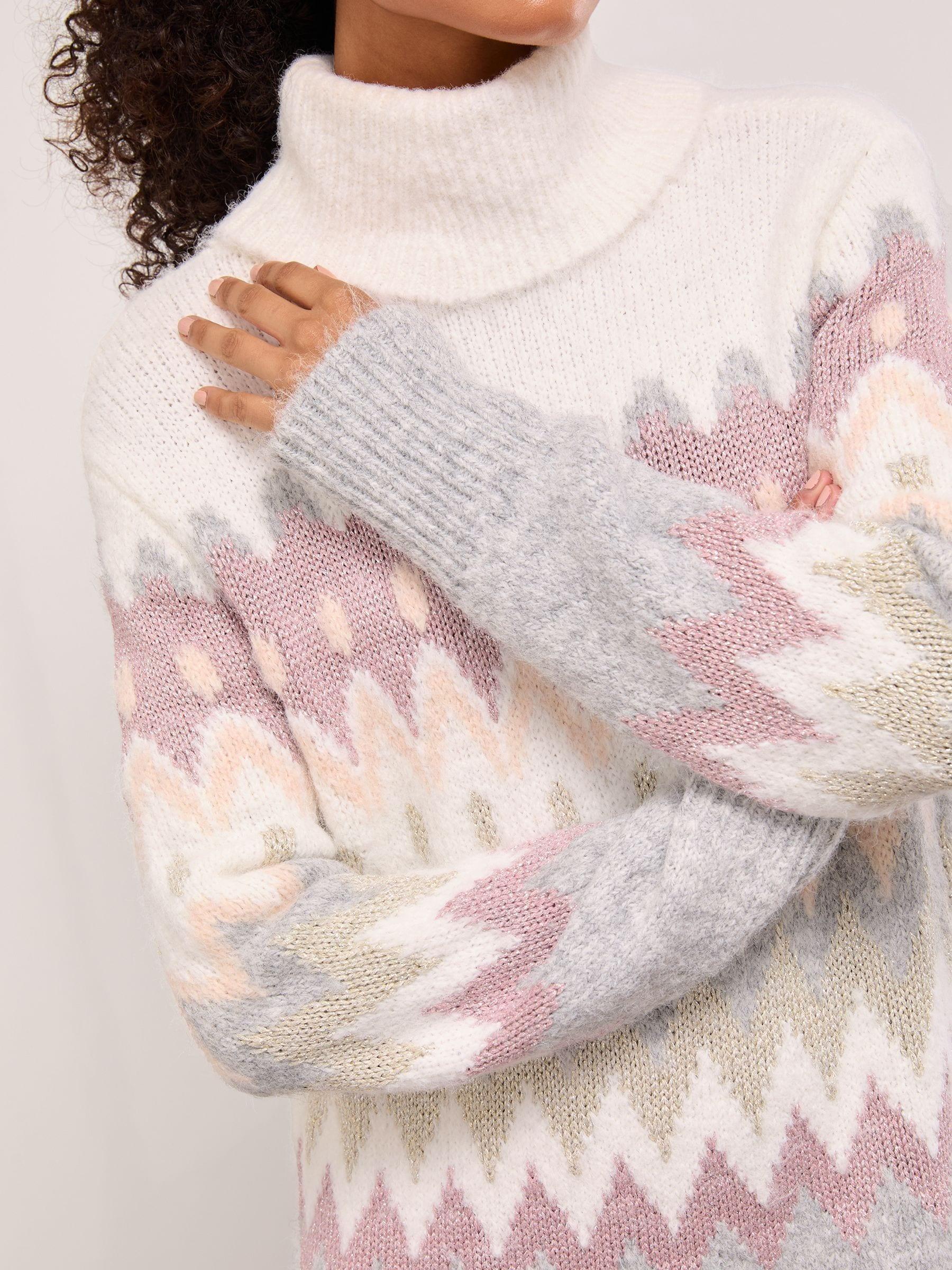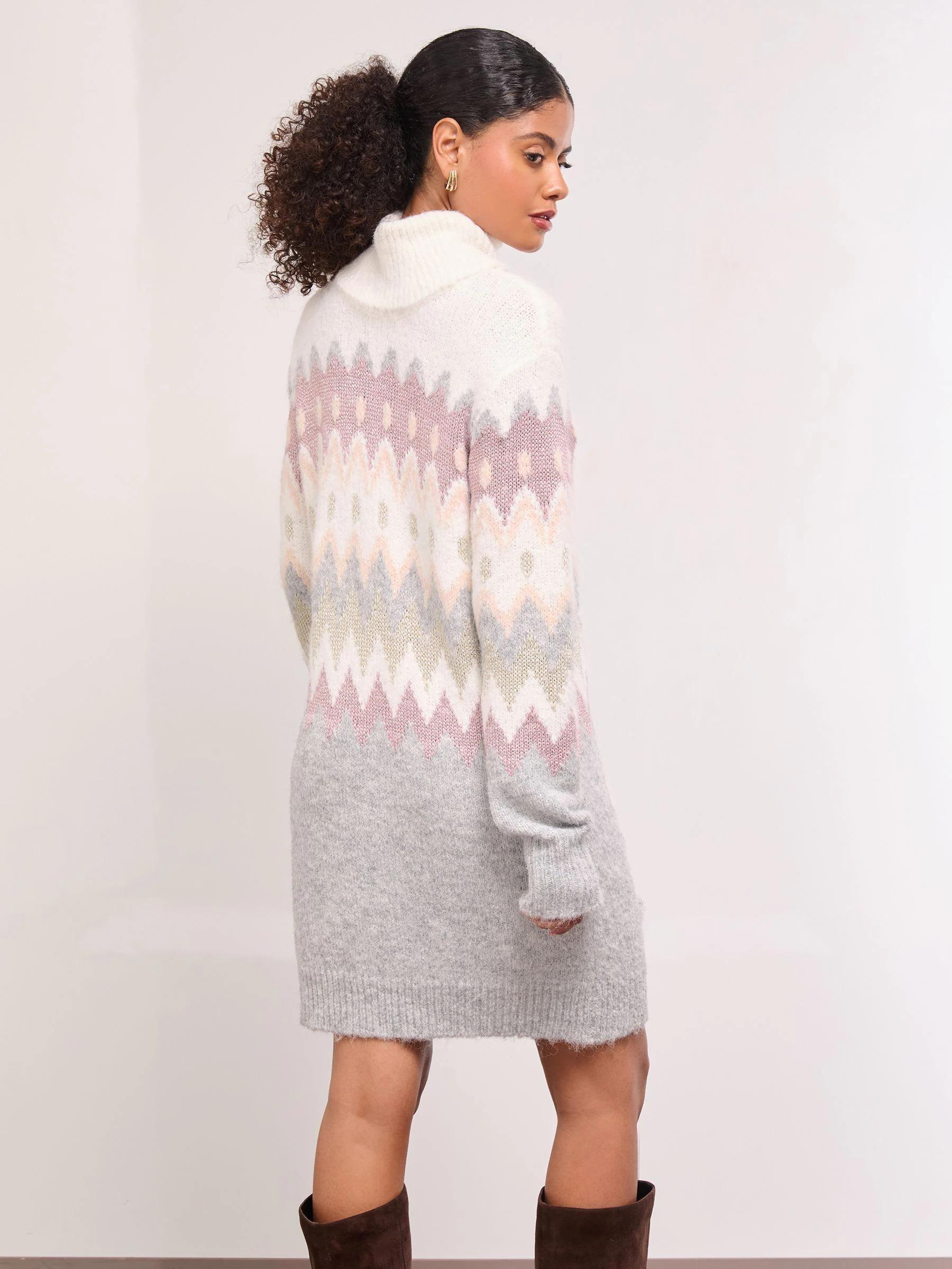 Lipsy Pink/White Christmas Fairisle Pattern Cowl Neck Knitted Jumper Dress