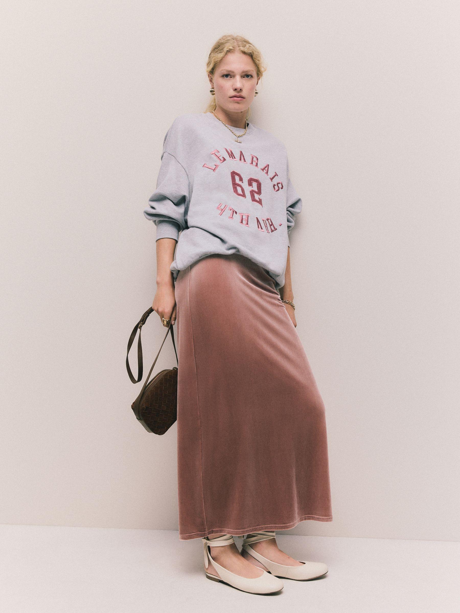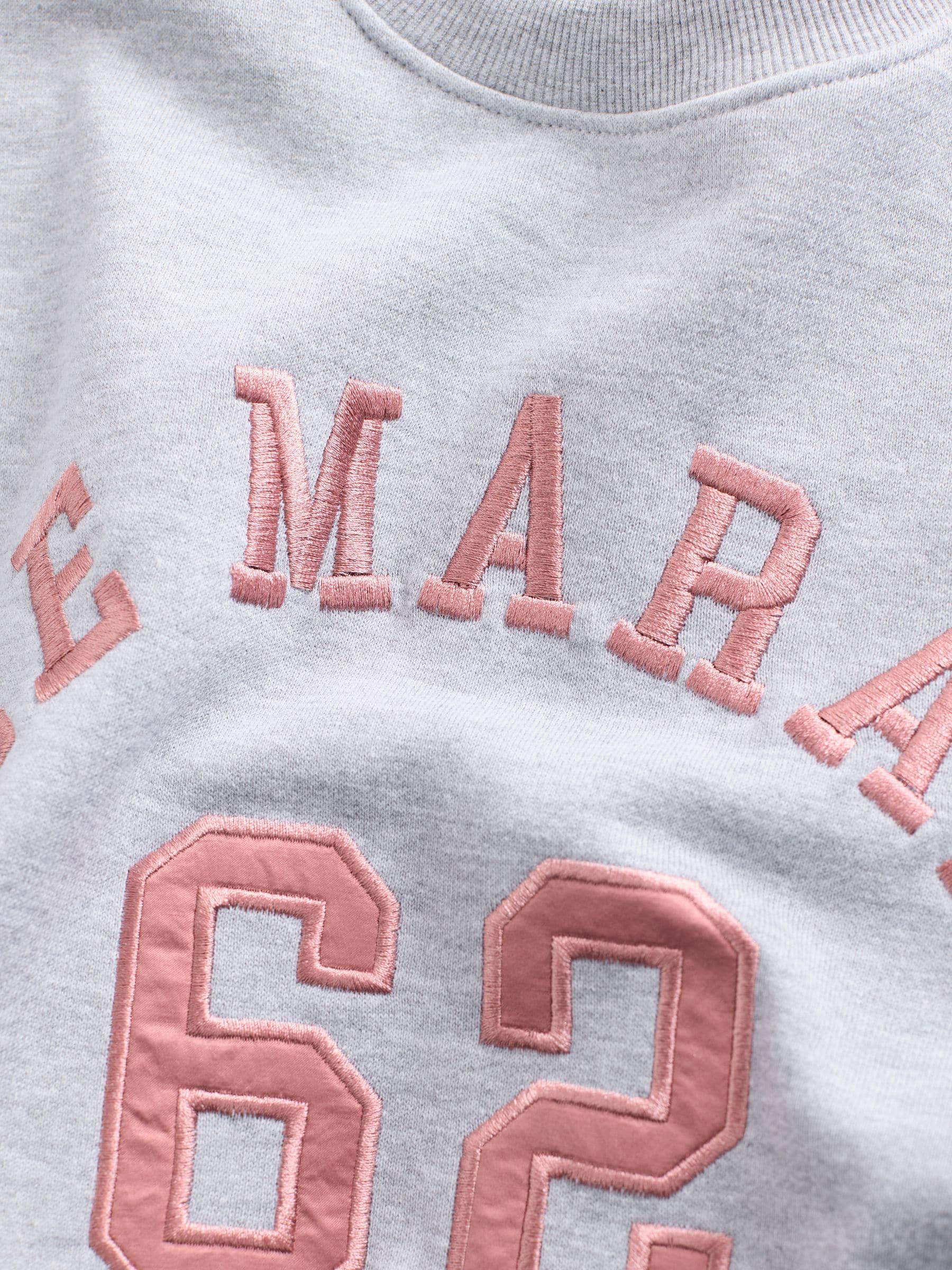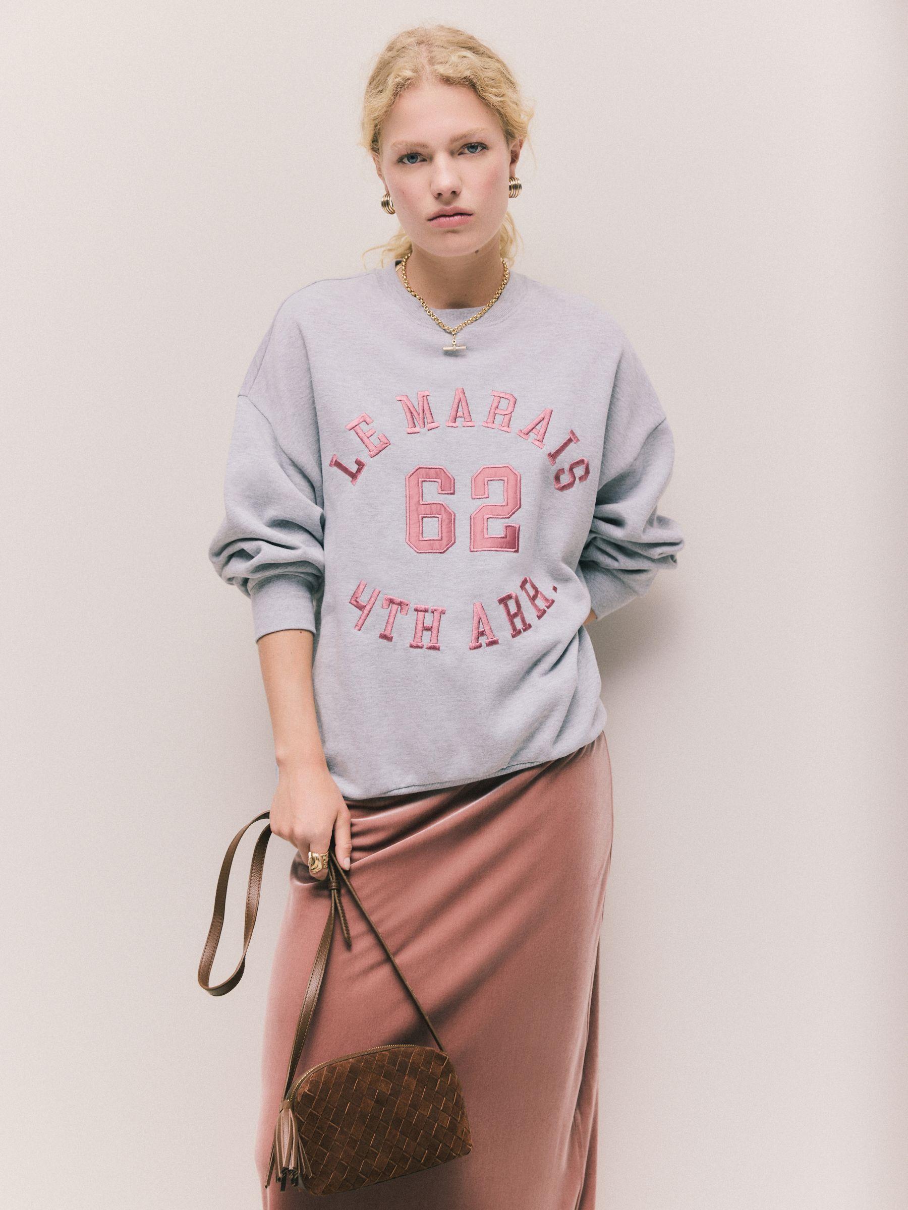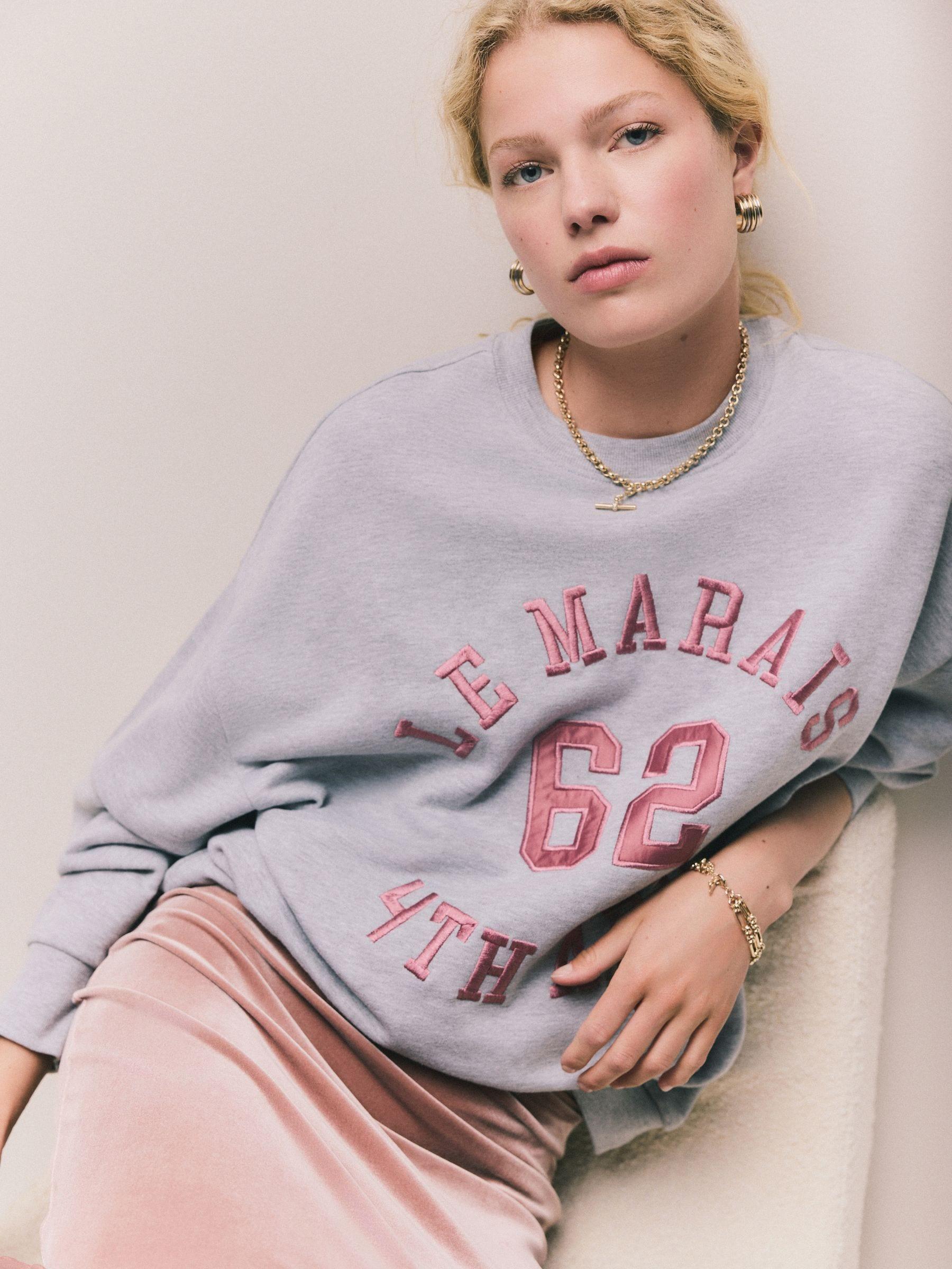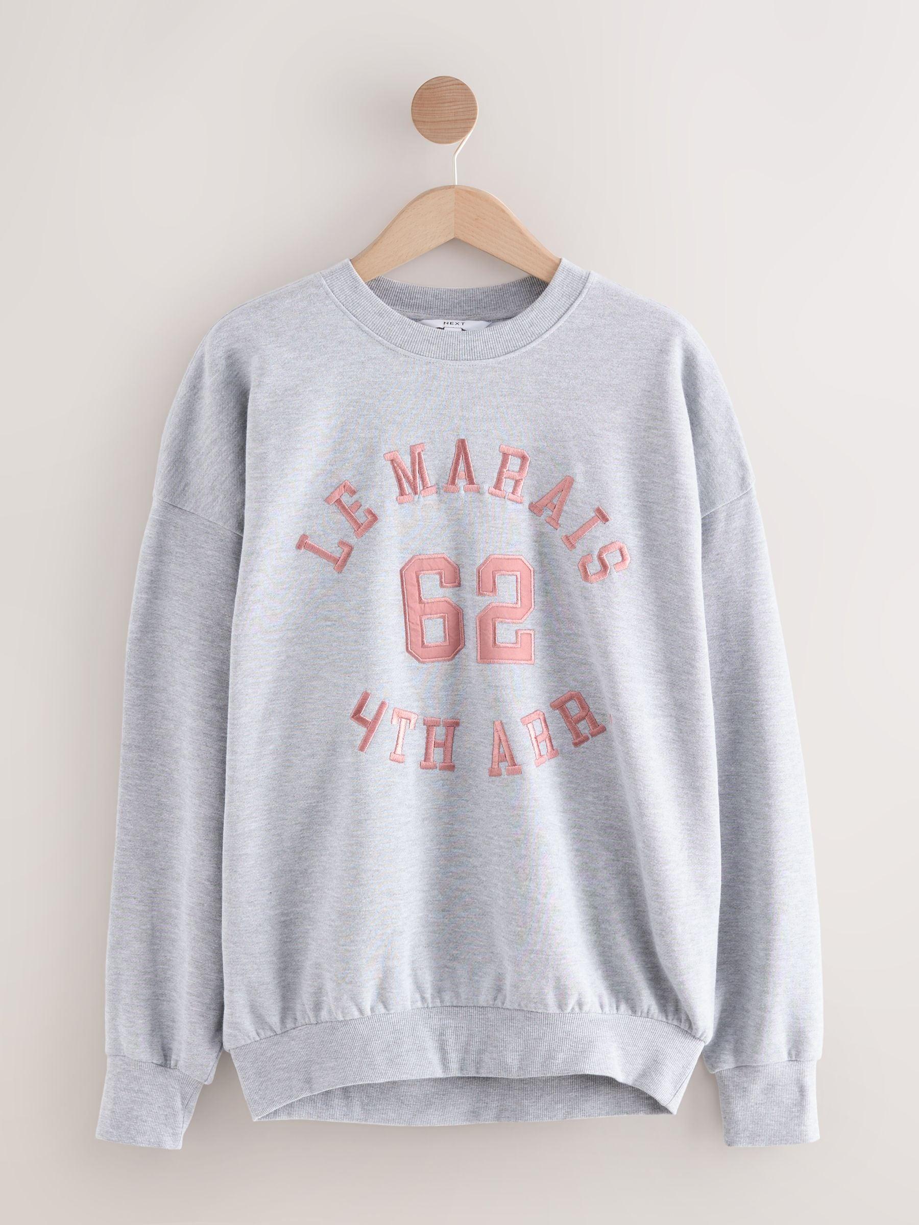 Grey Graphic Satin Applique 'Le Marais' City Longsleeve Crewneck Sweatshirt
