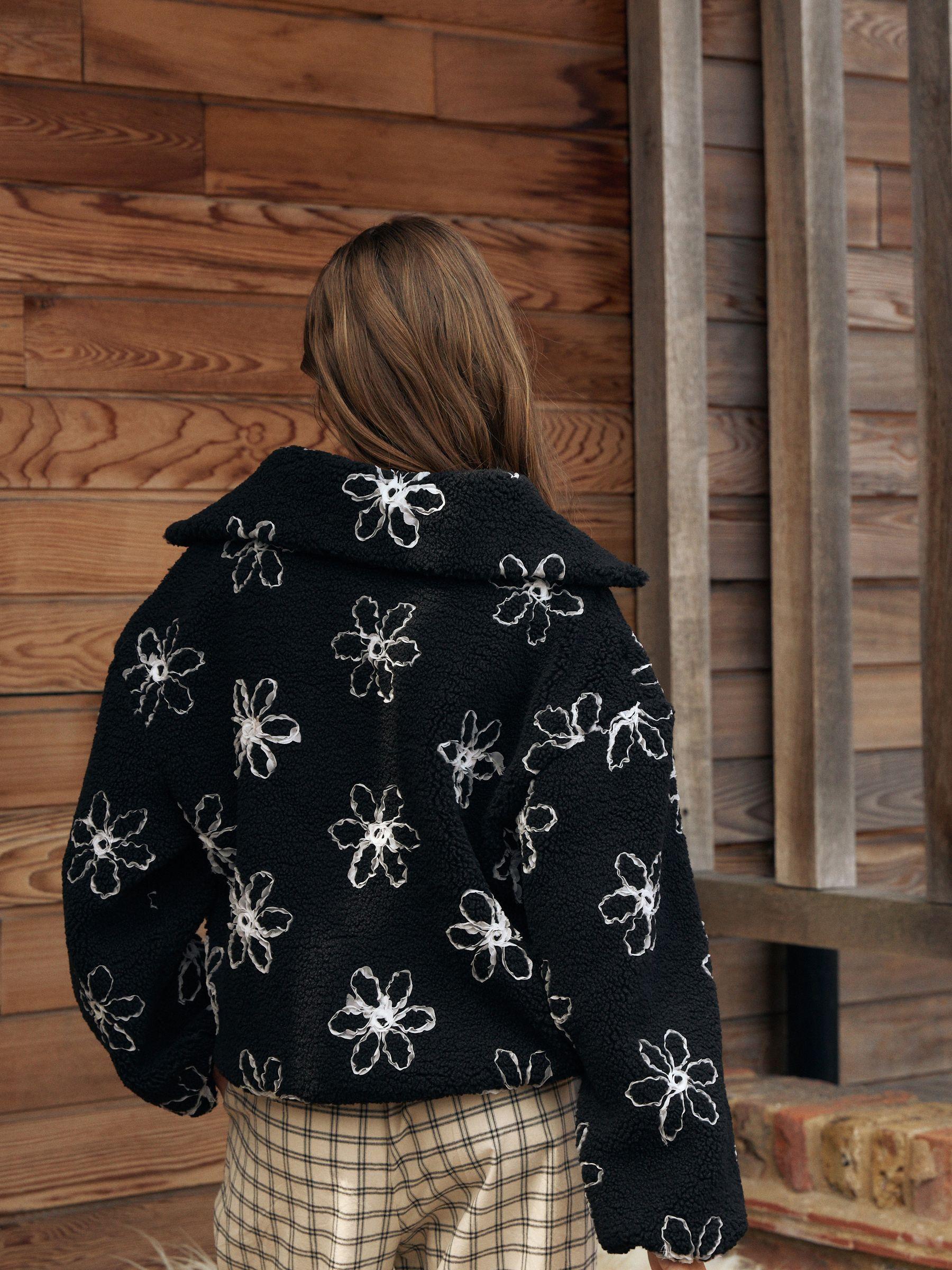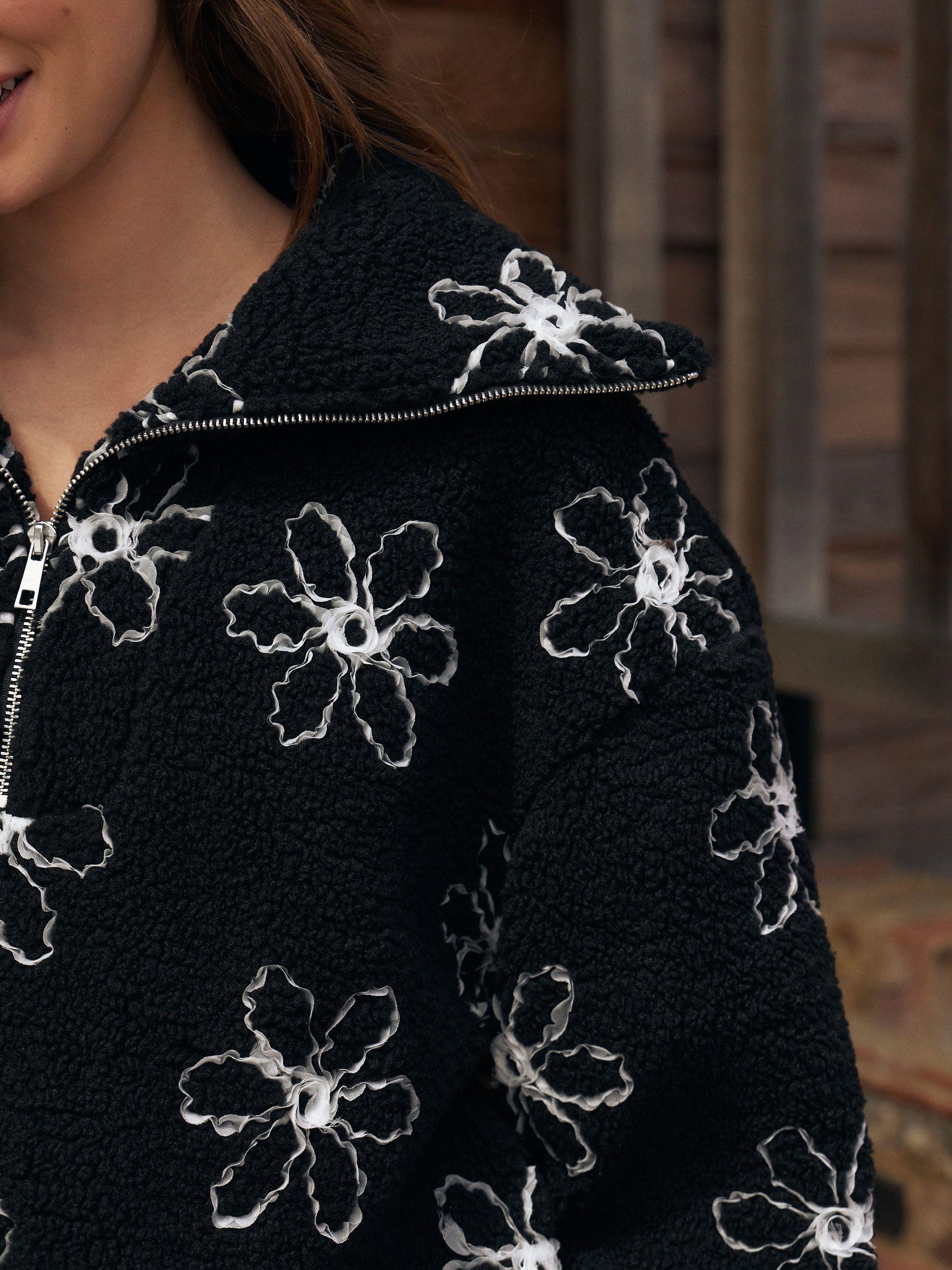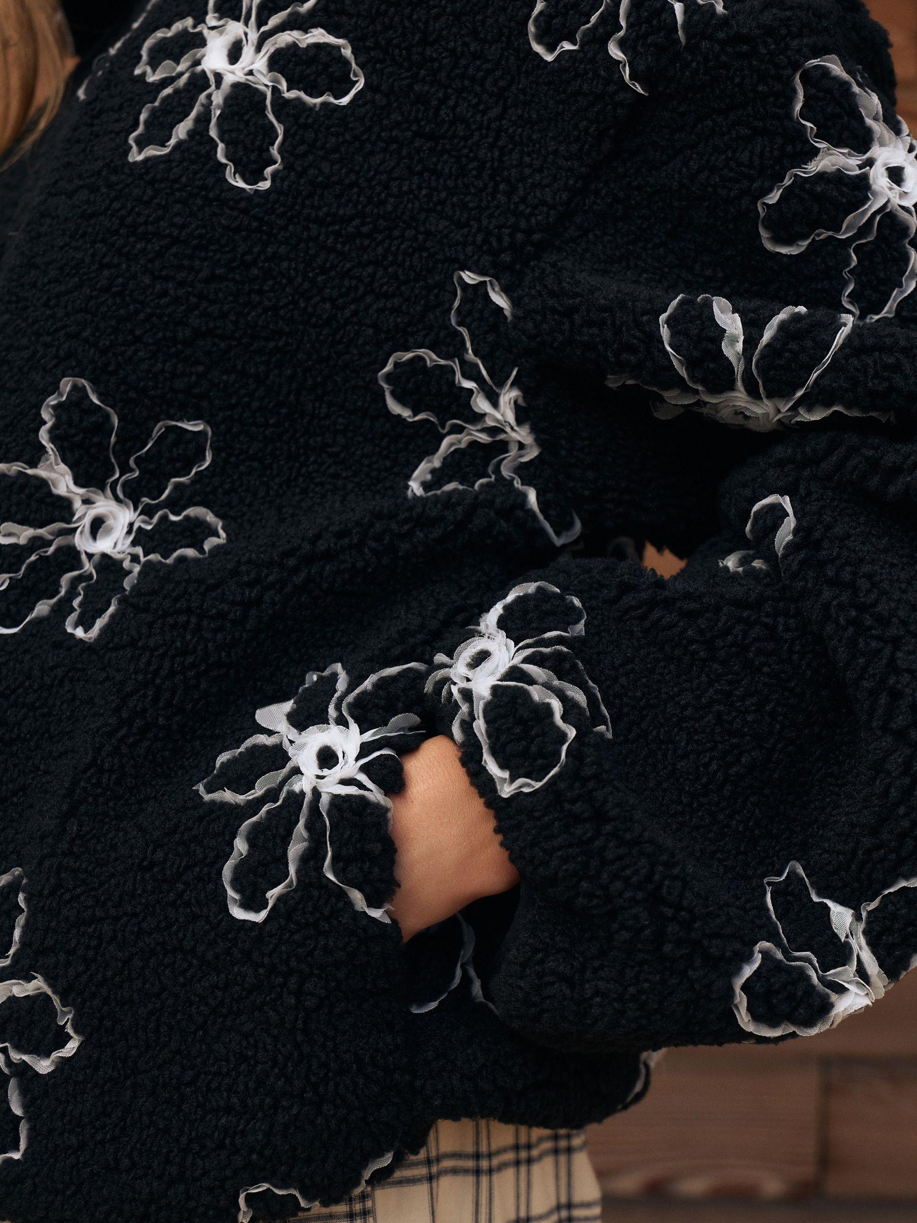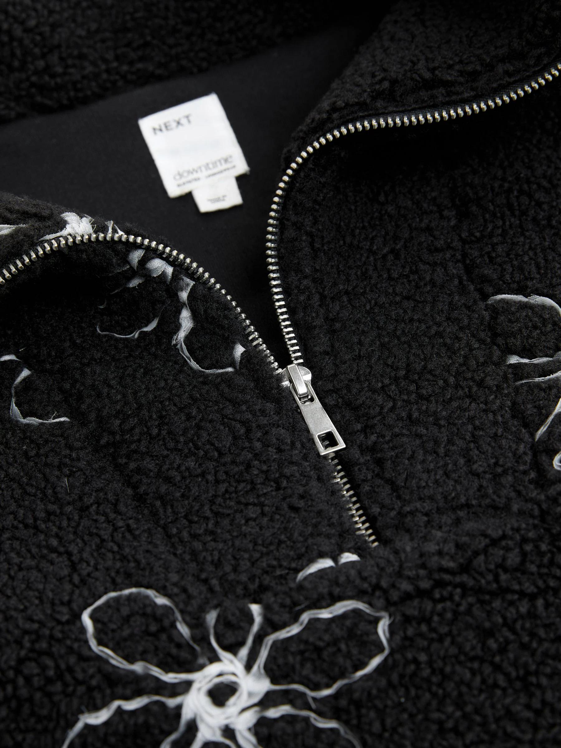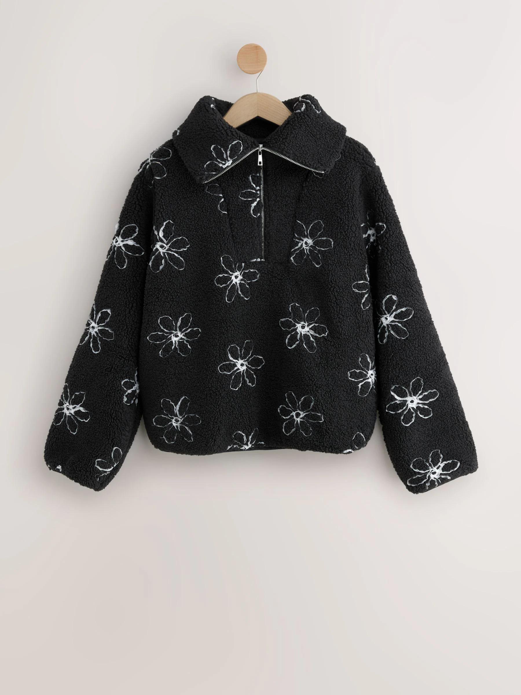Black Flower Borg Half Zip Jumper