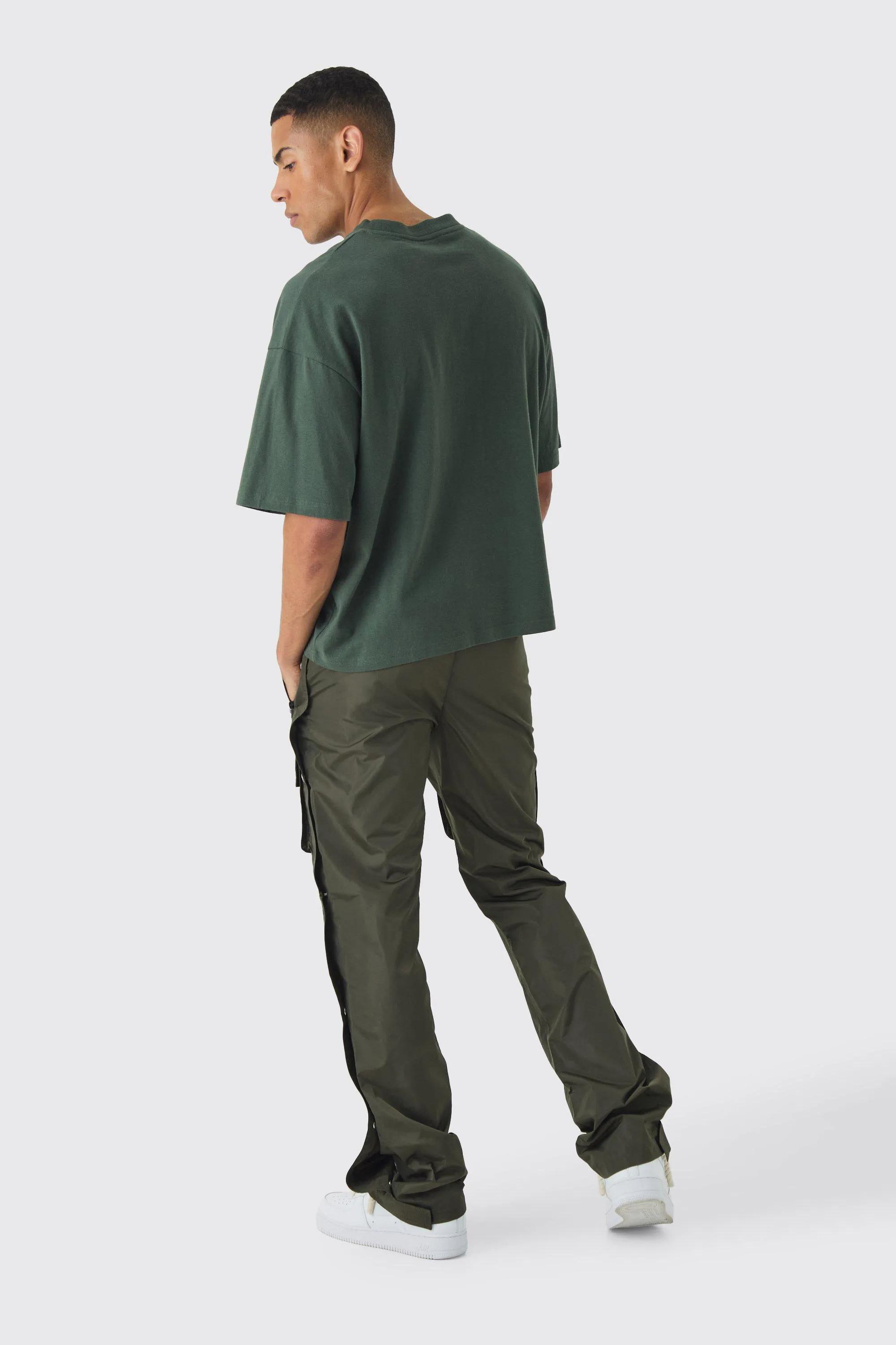 Trousers | Elasticated Waist Slim Flare Stacked Cargo Trousers | boohooMAN