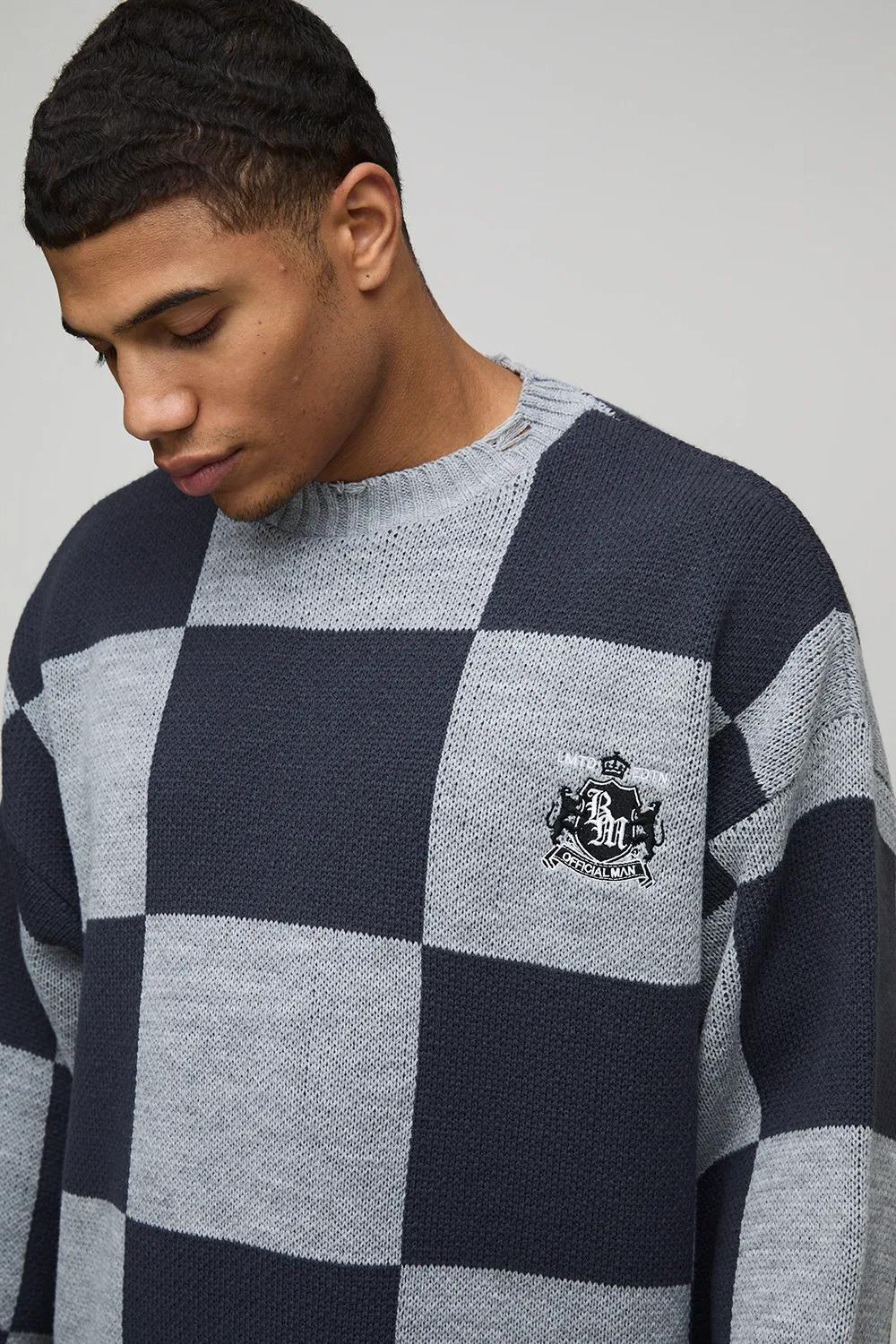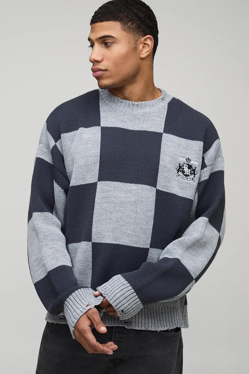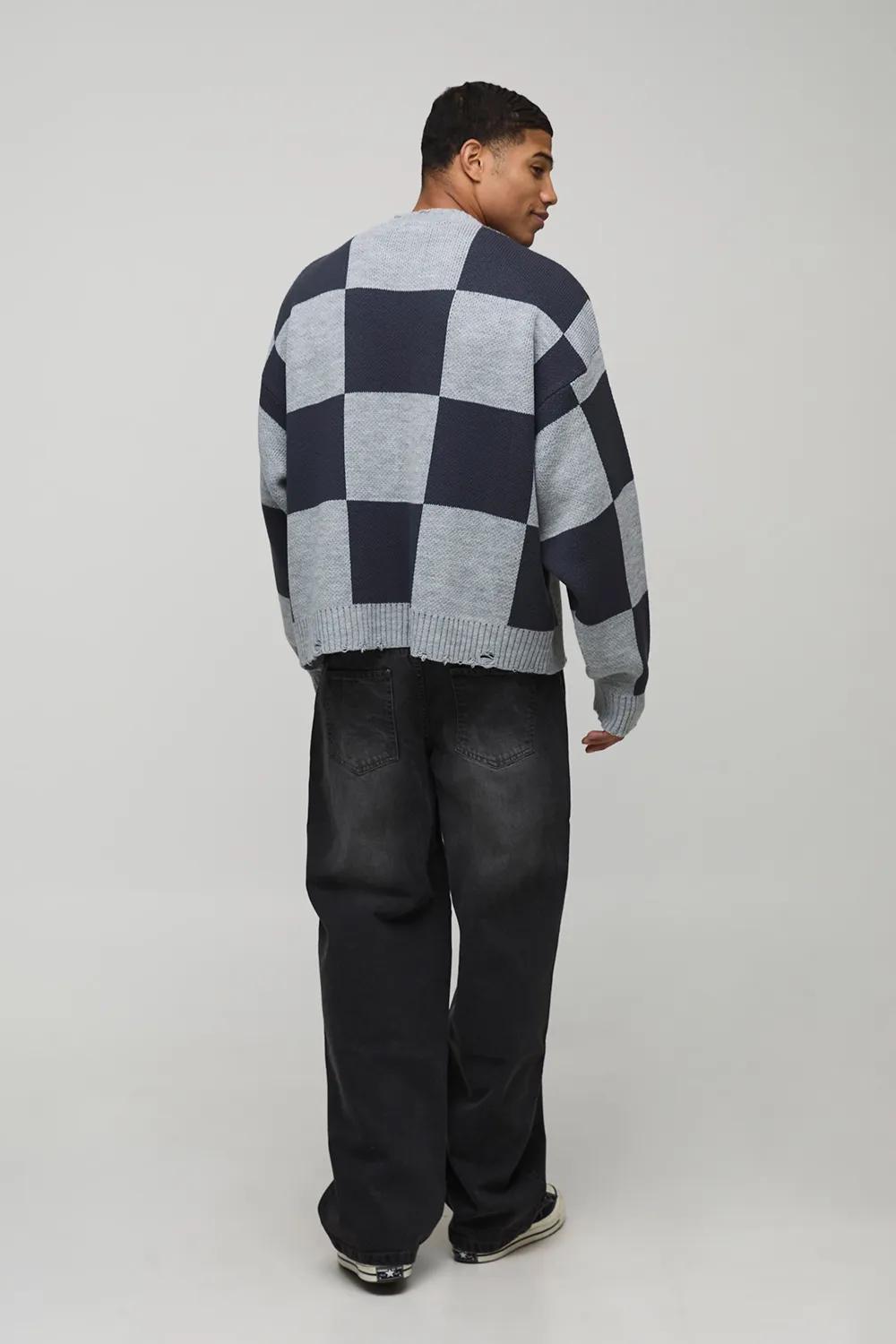 Discover Boxy Oversized Distressed Checkerboard Knitted Jumper available to buy online at boohoo.com. Available with quick delivery and easy return options. Shop now!