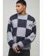 Jumpers & Cardigans | Boxy Oversized Distressed Checkerboard Knitted Jumper | boohooMAN