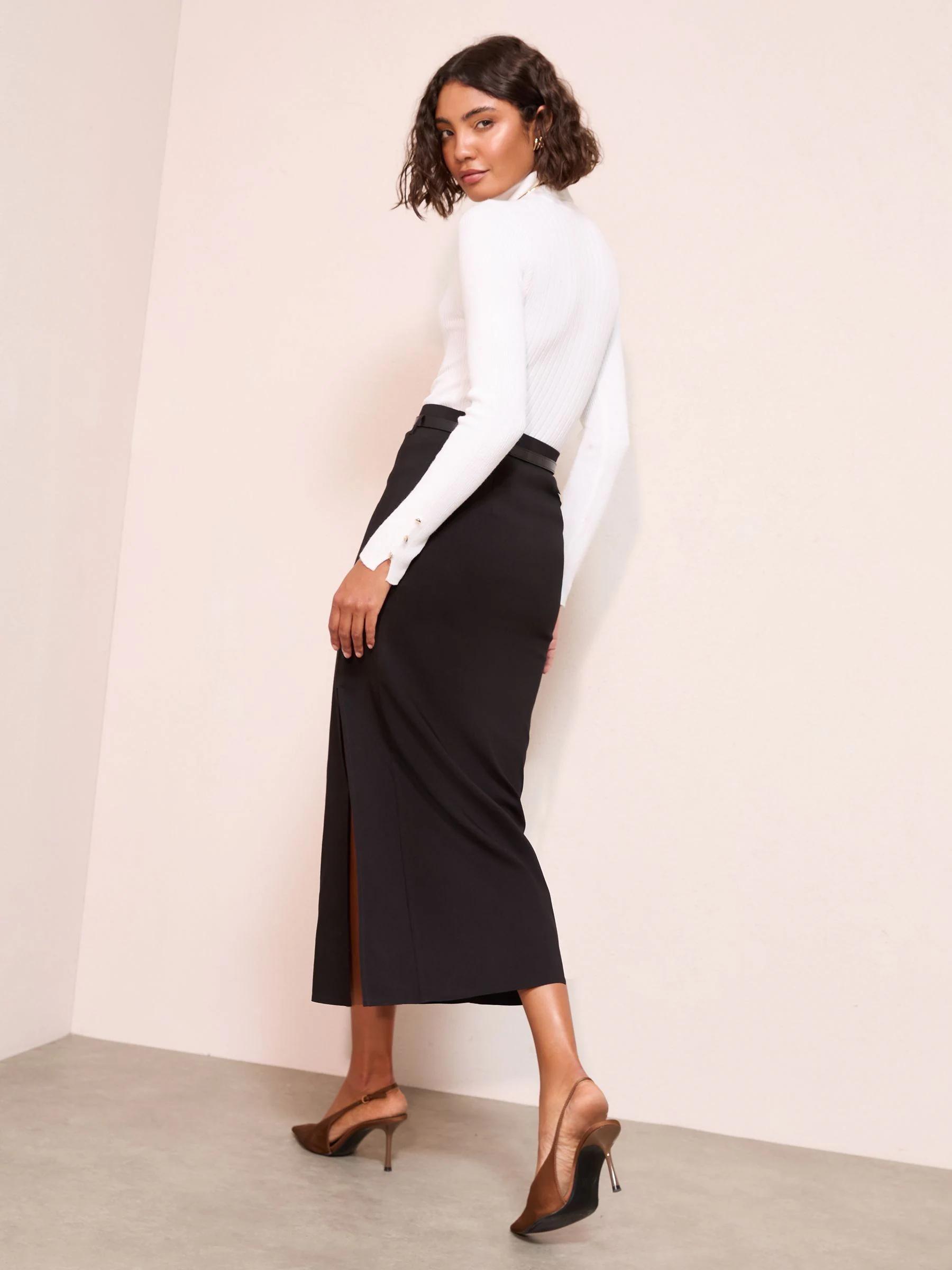 Friends Like These Black Belted Pencil Midi Skirt