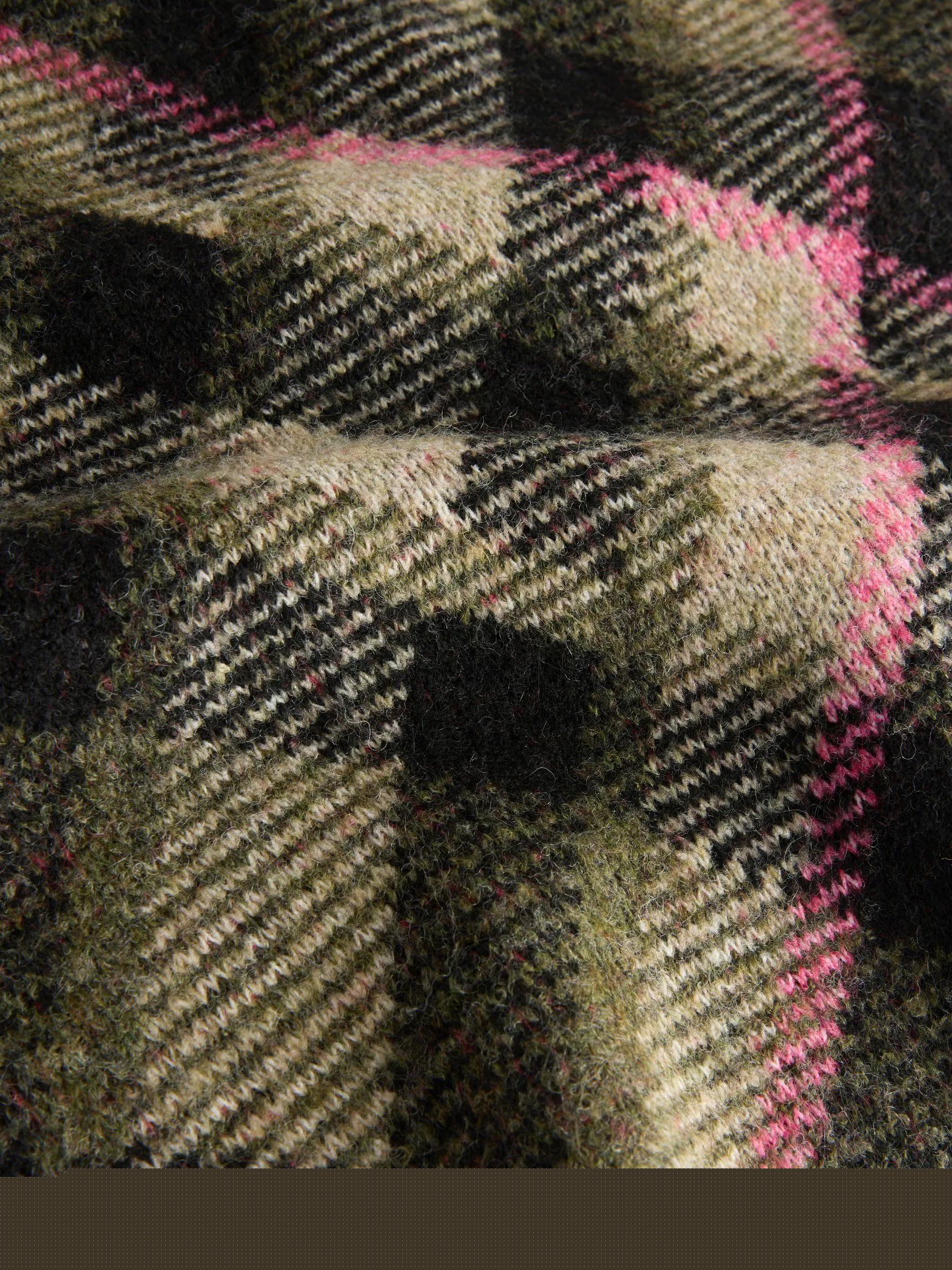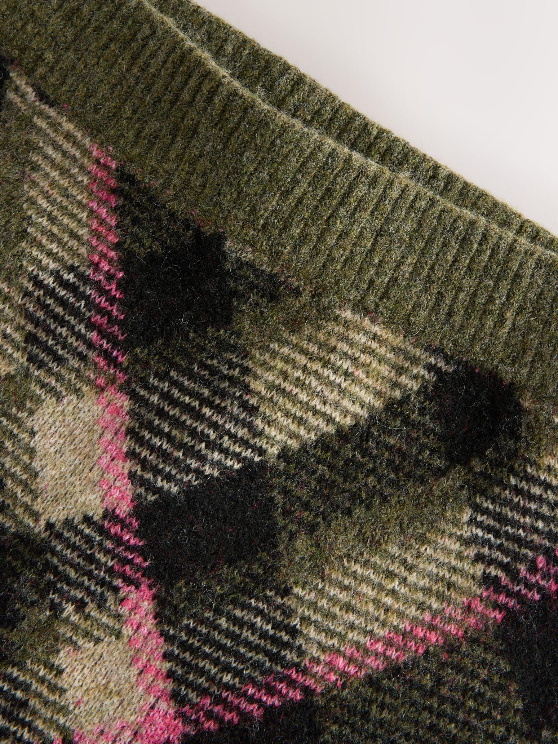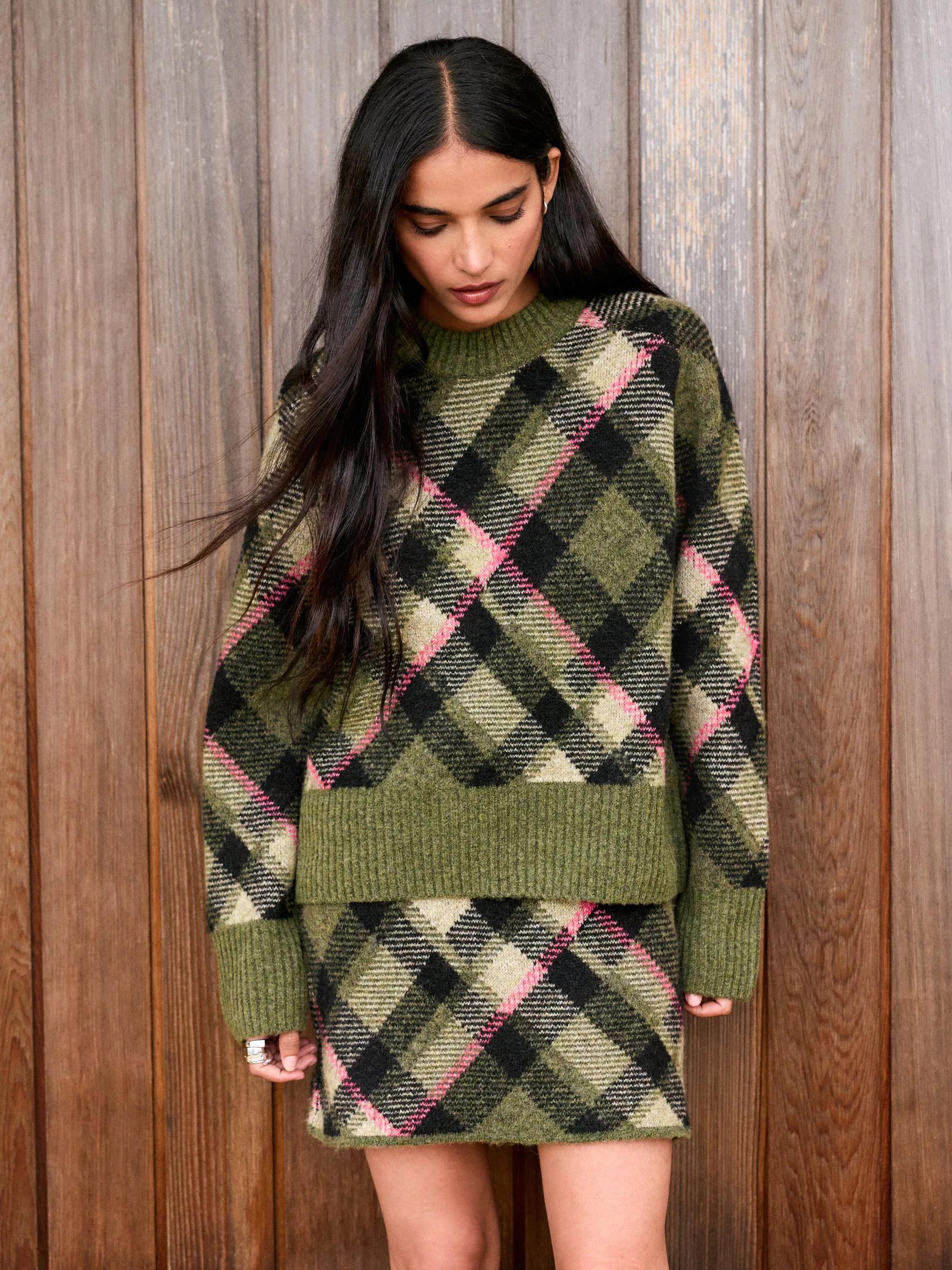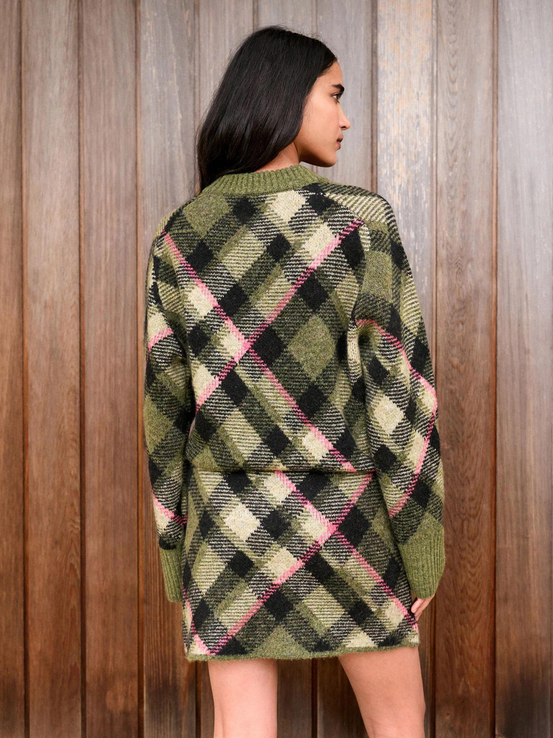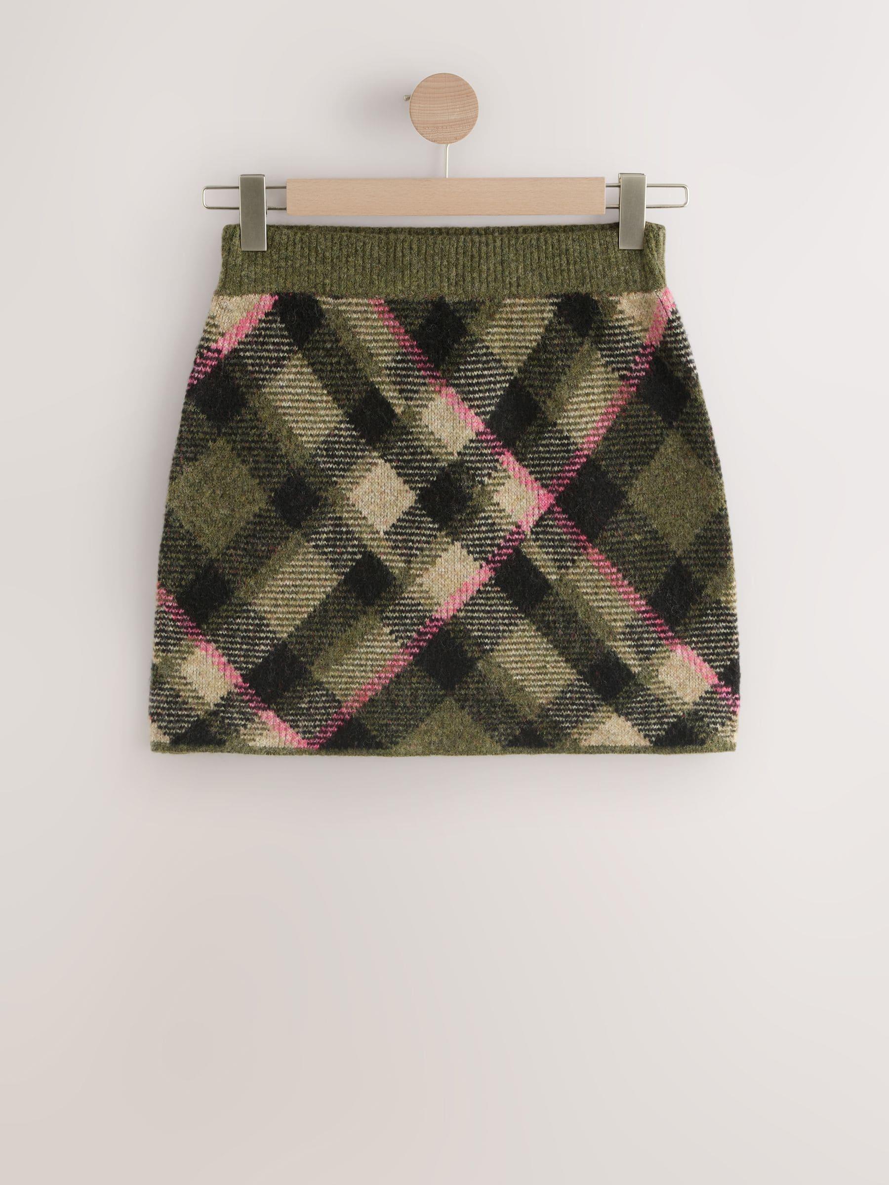 Khaki Green Tartan Check Knitted Mini Skirt With Wool