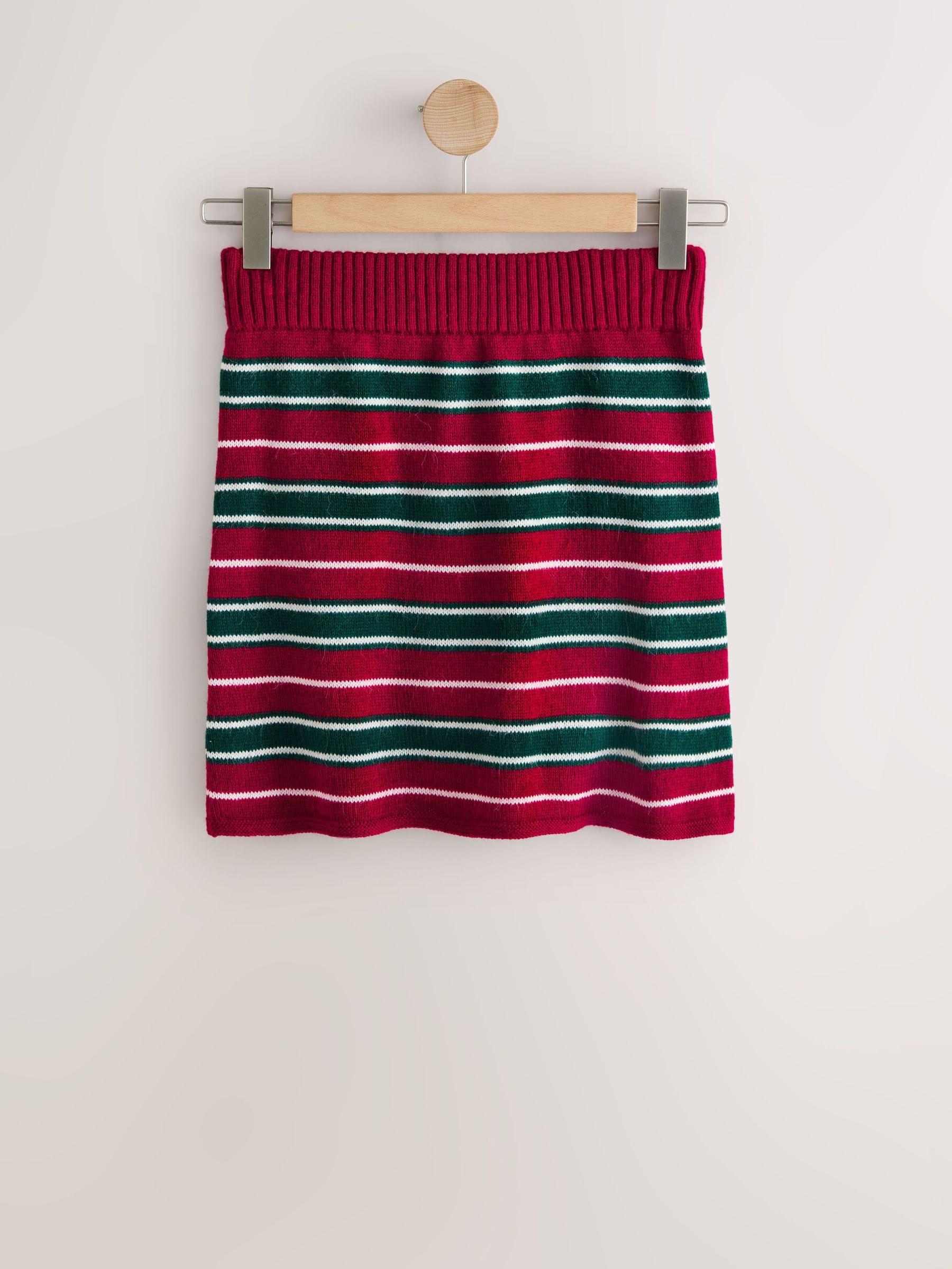 Burgundy Red/Green Stripe Co-Ord Knitted Mini Skirt