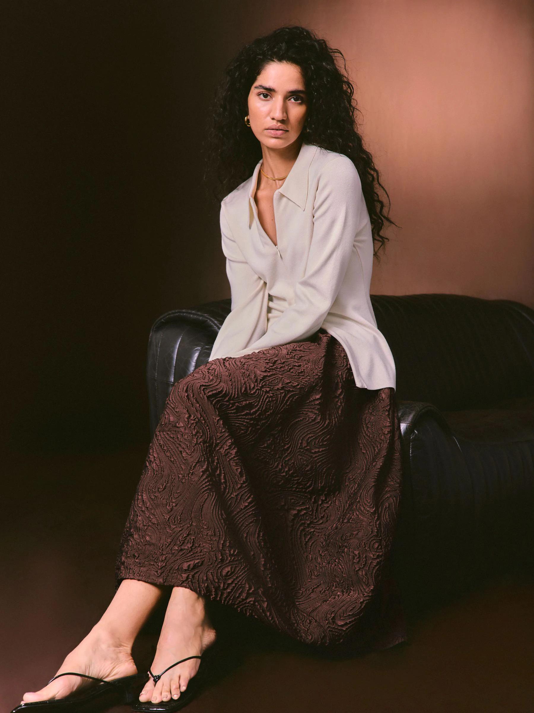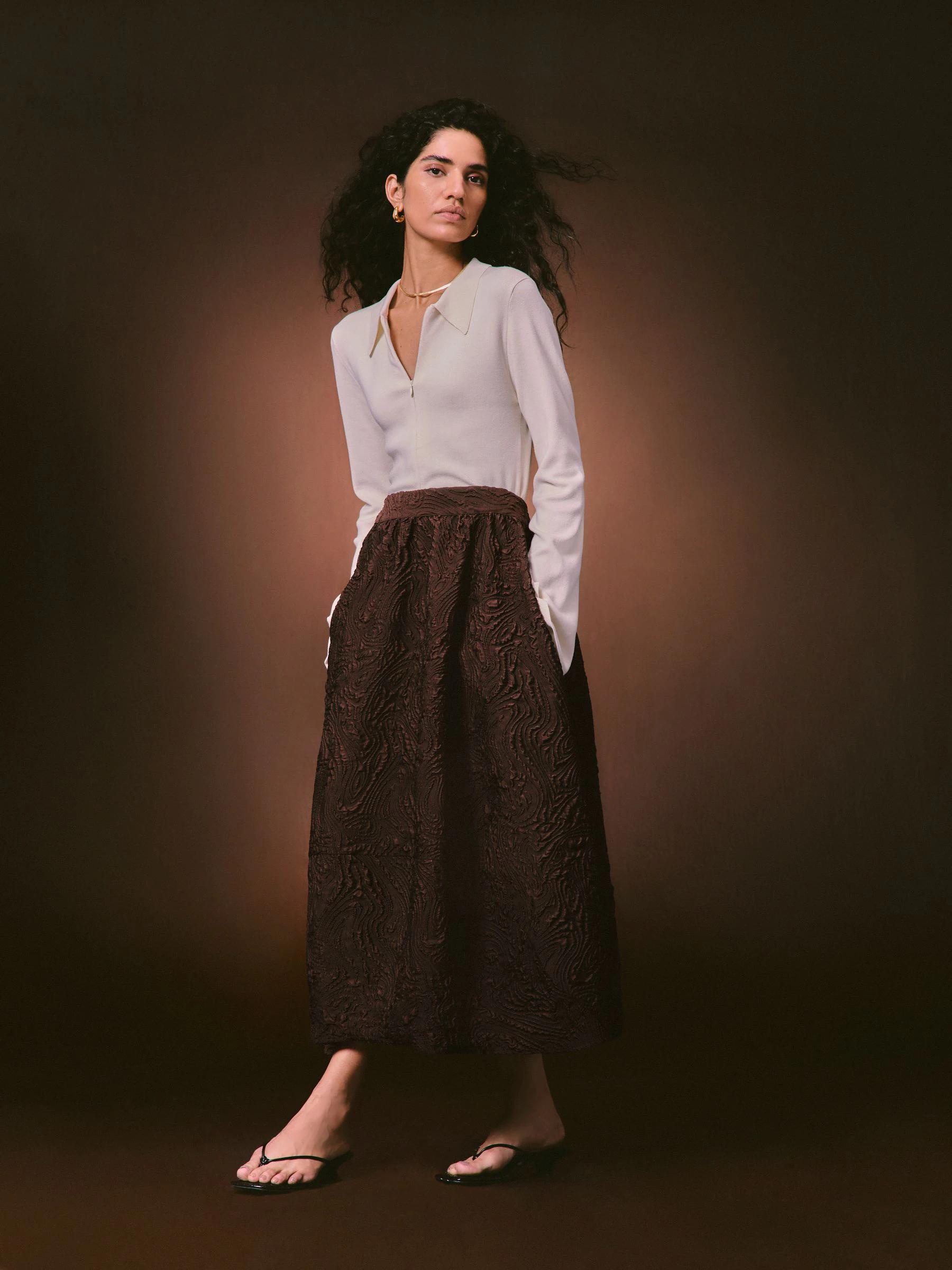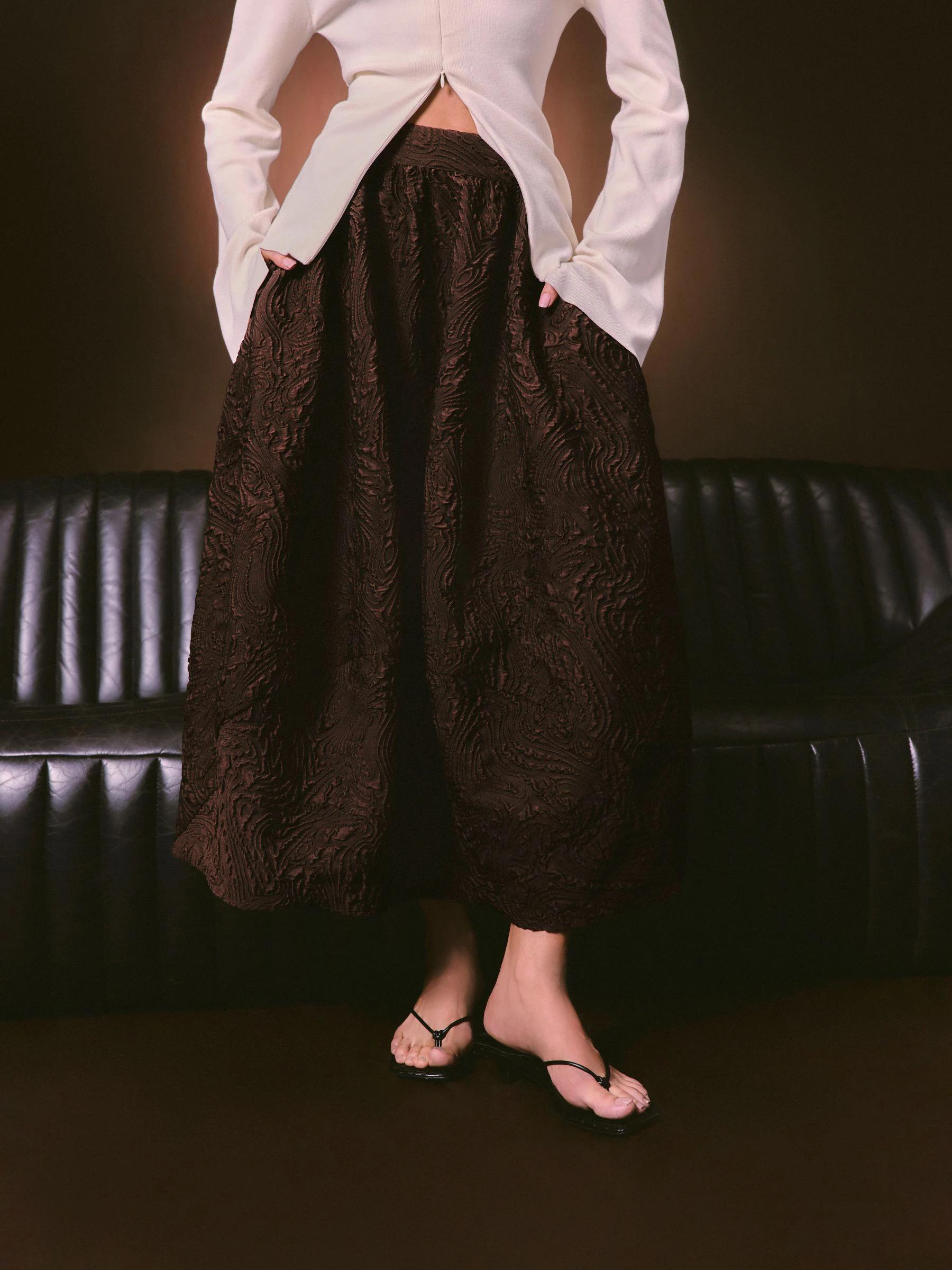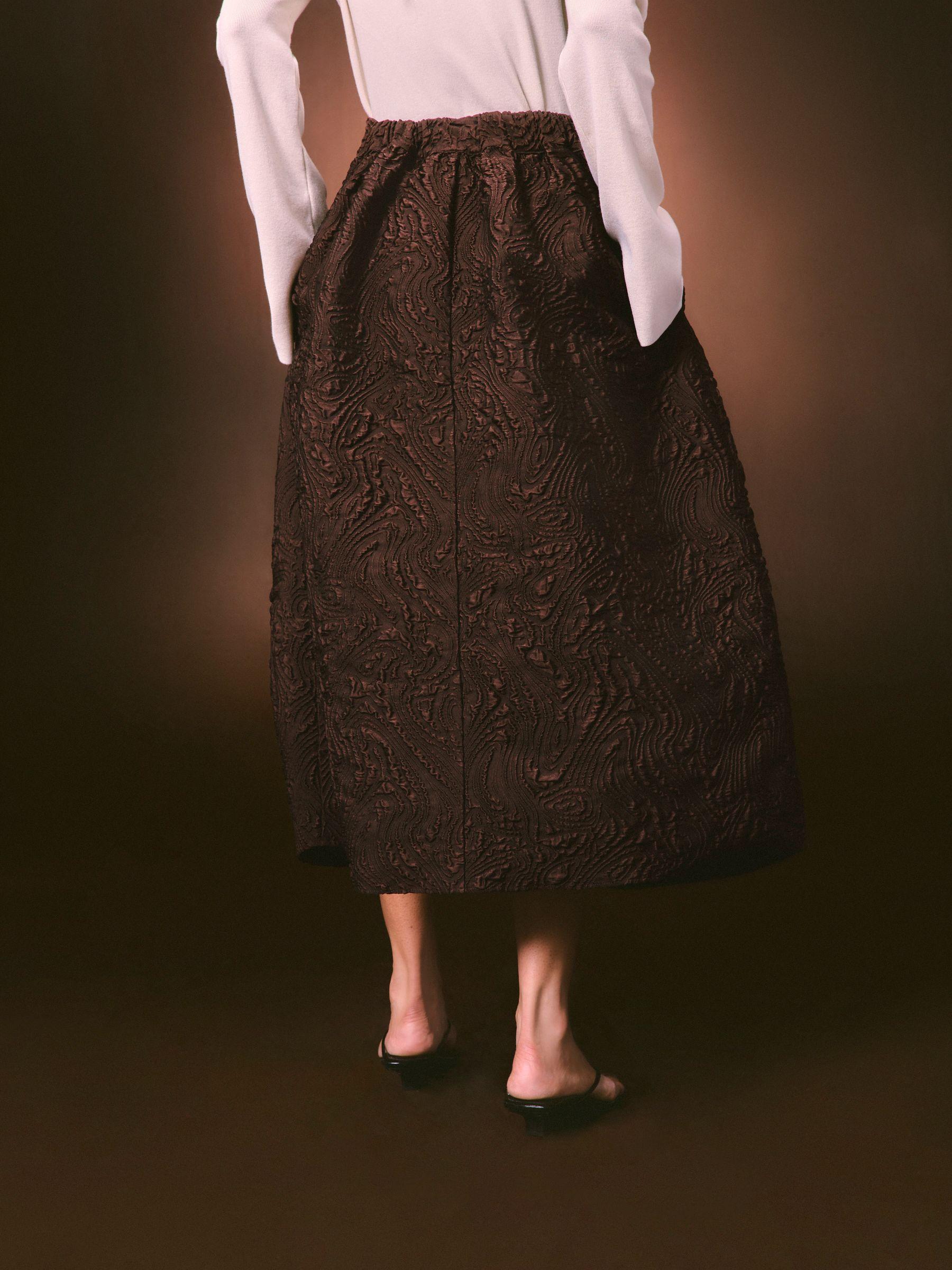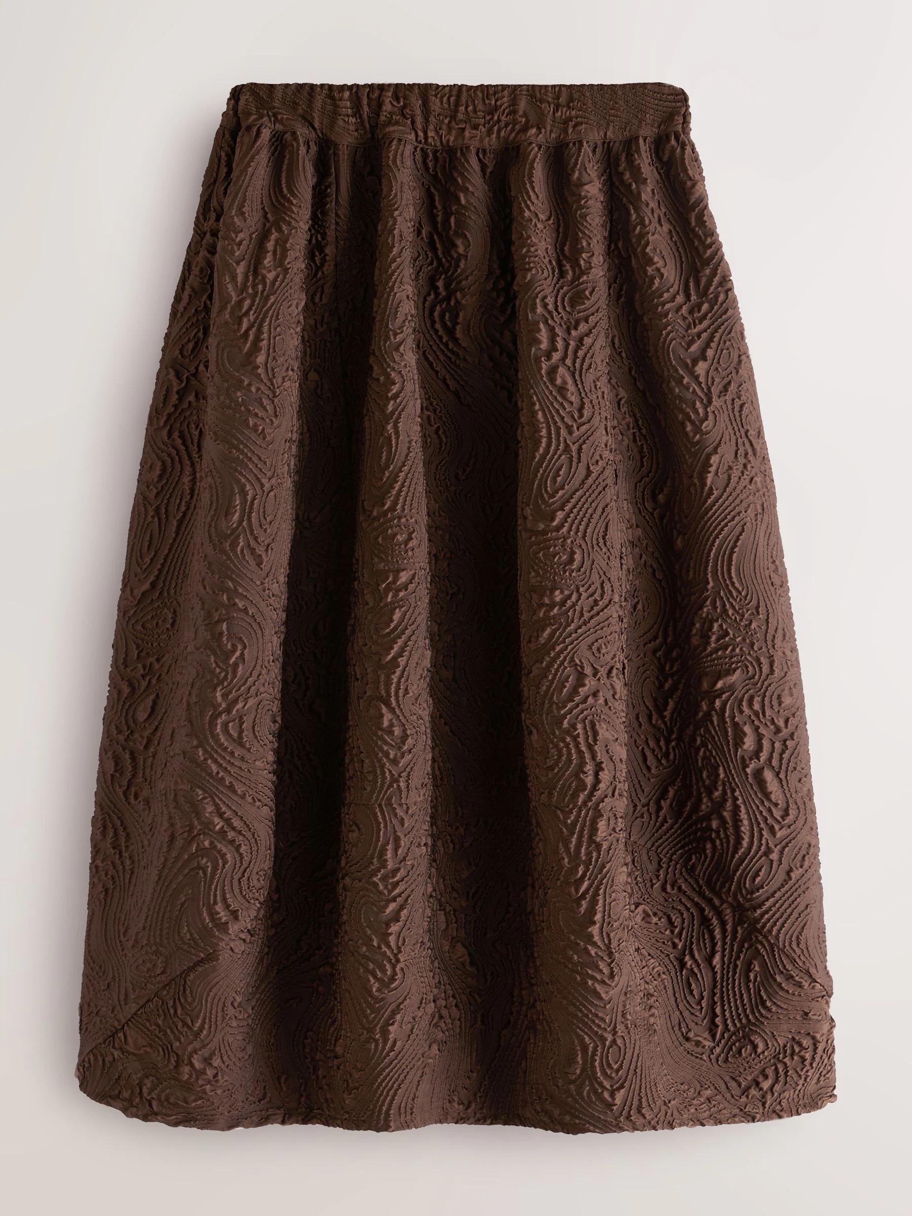 Nothing Ordinary Chocolate Brown Volume Jaquard Midi Skirt