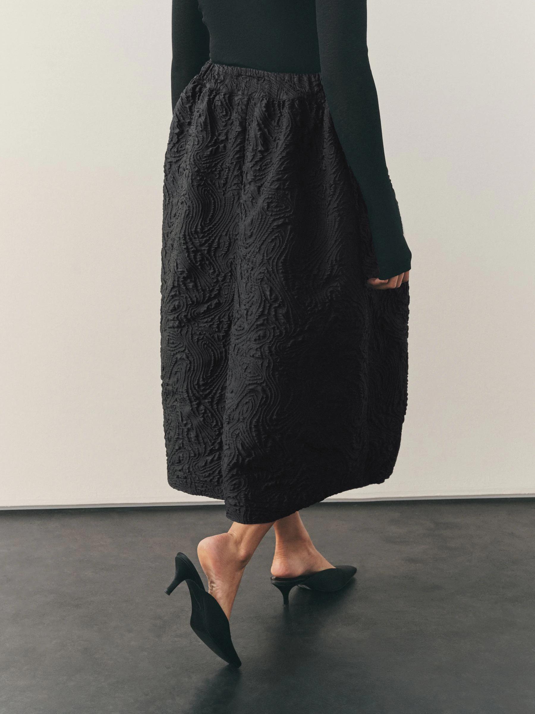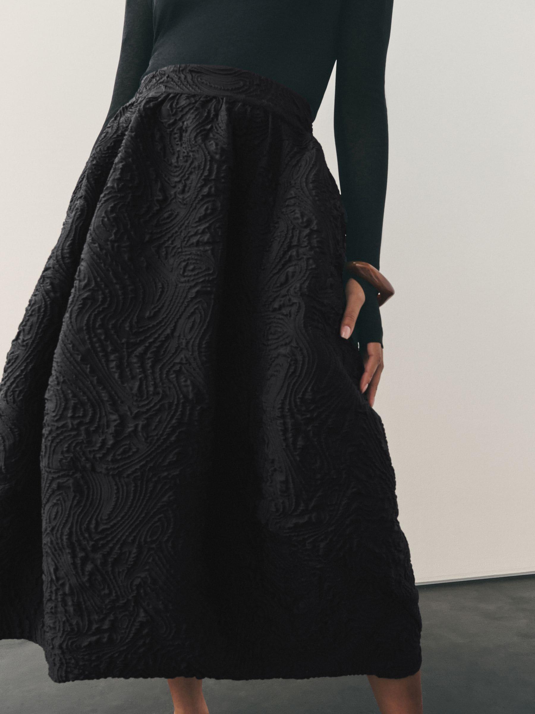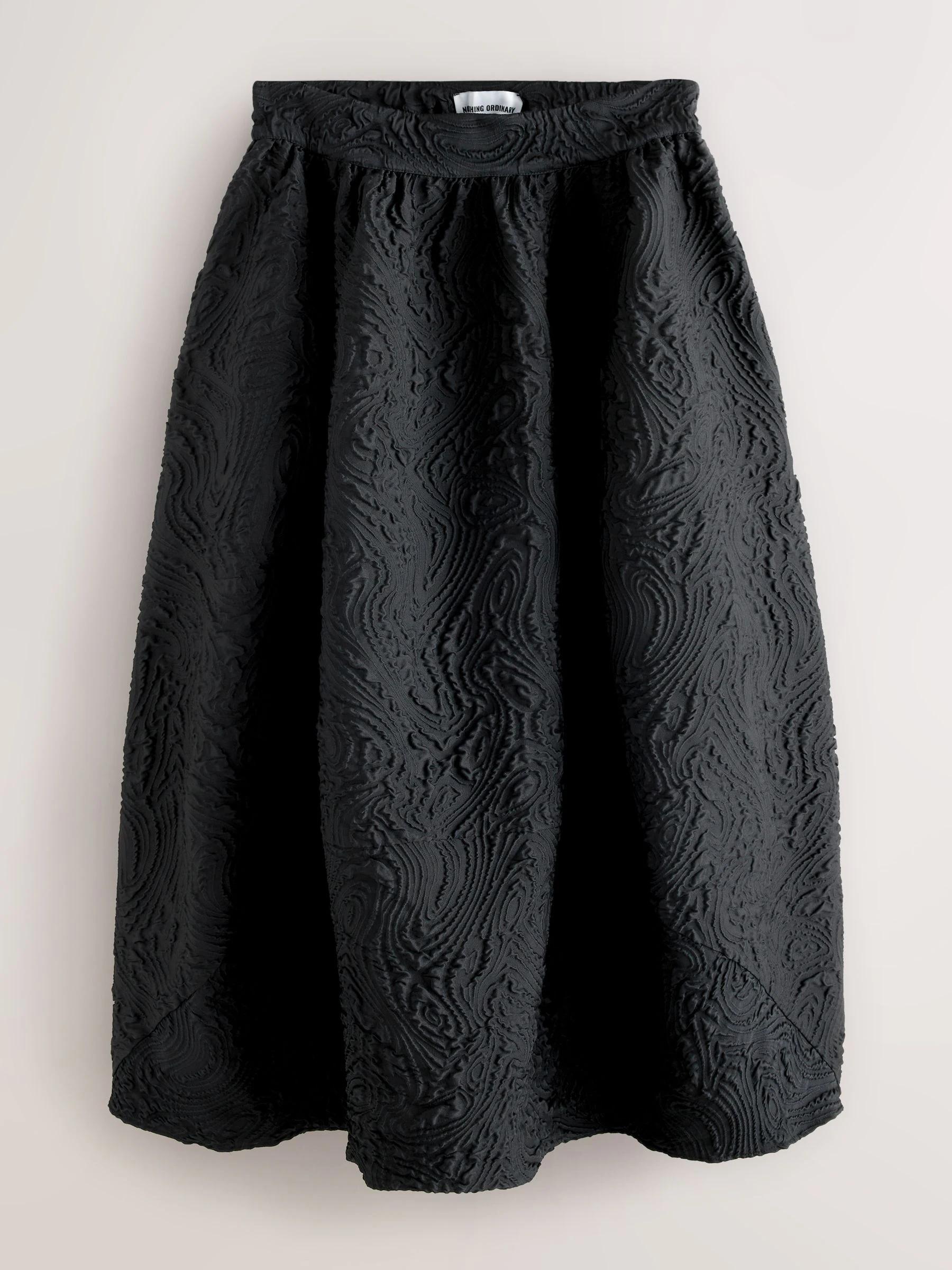 Nothing Ordinary Black Volume Jaquard Midi Skirt