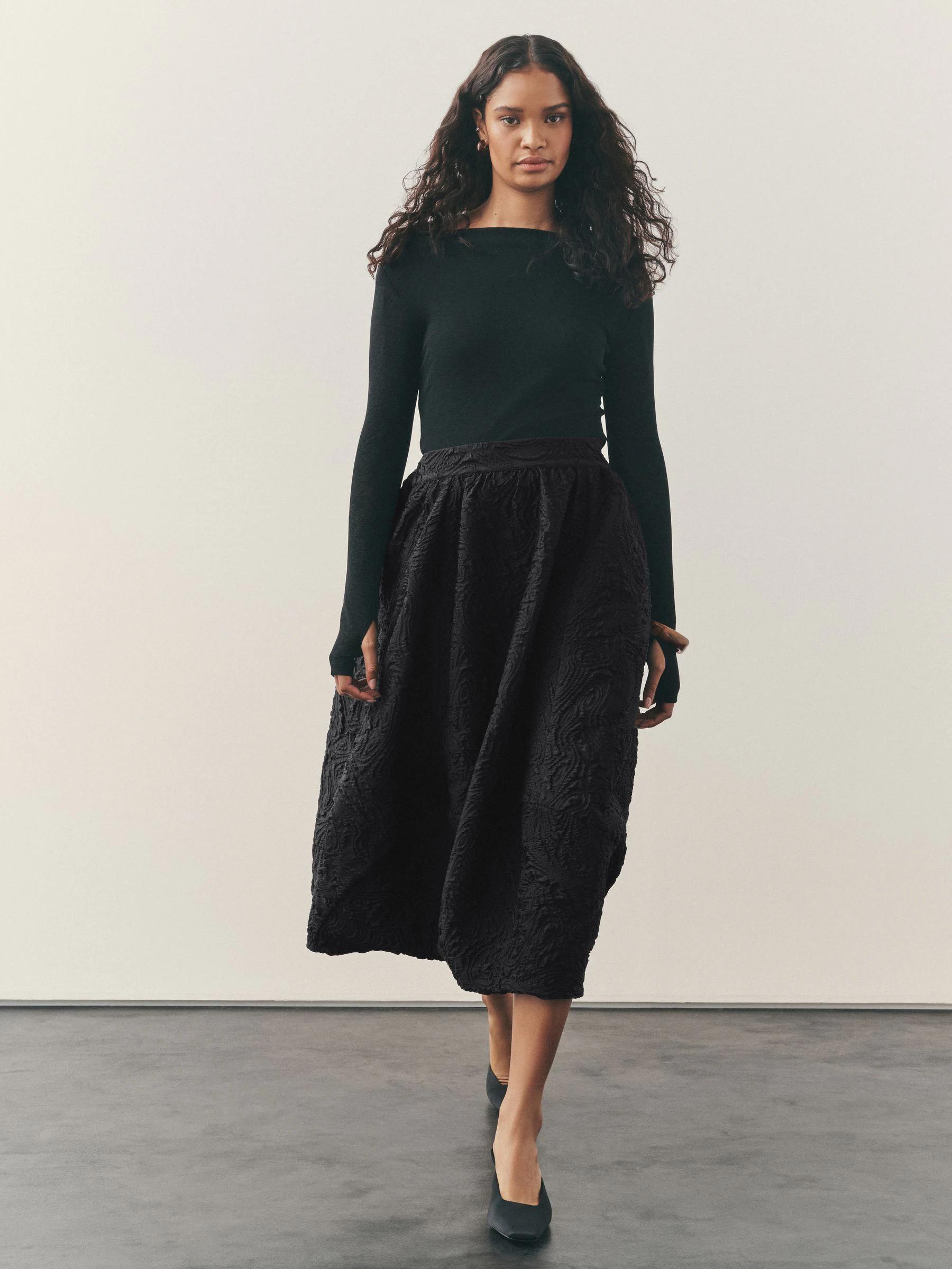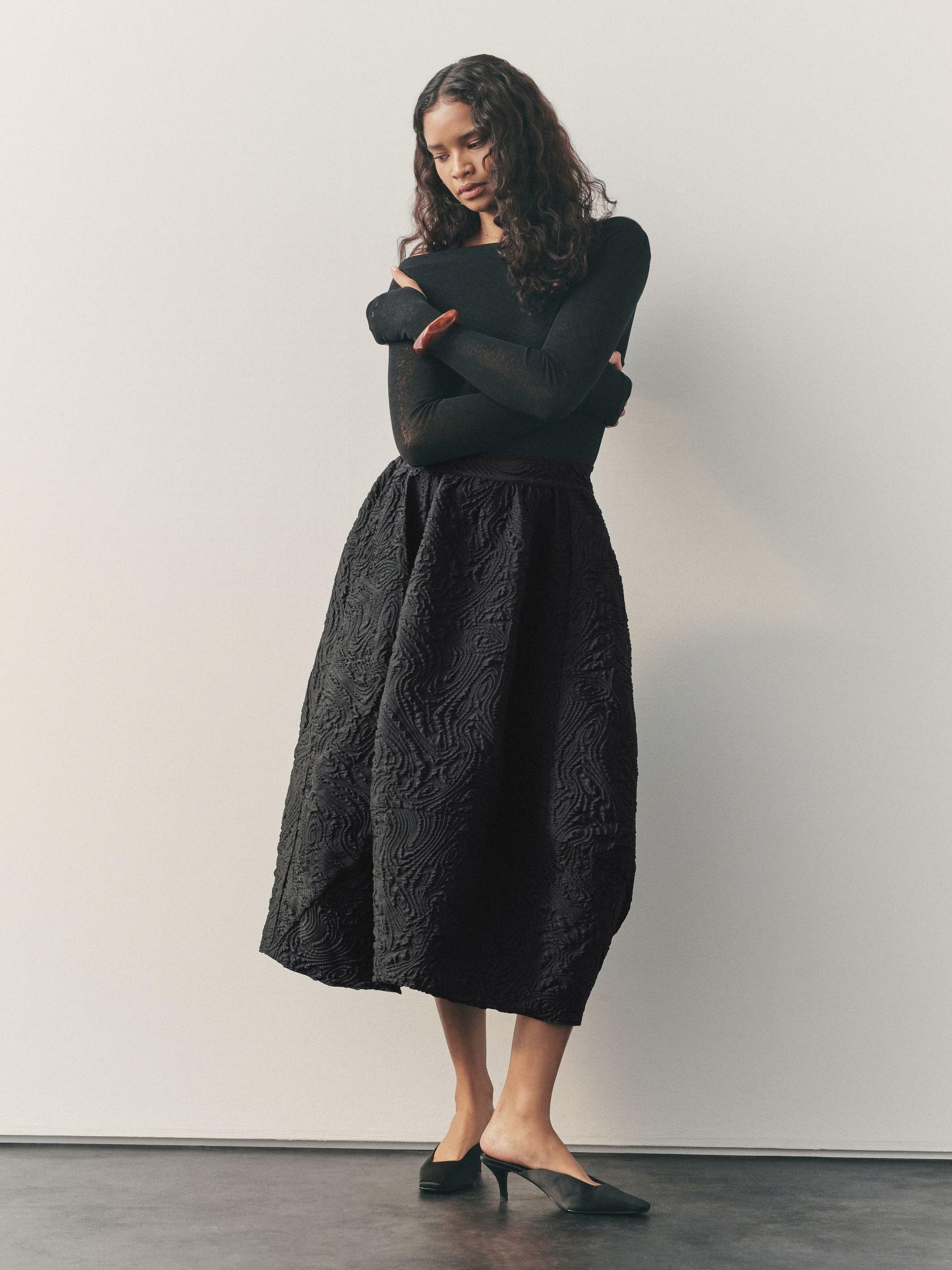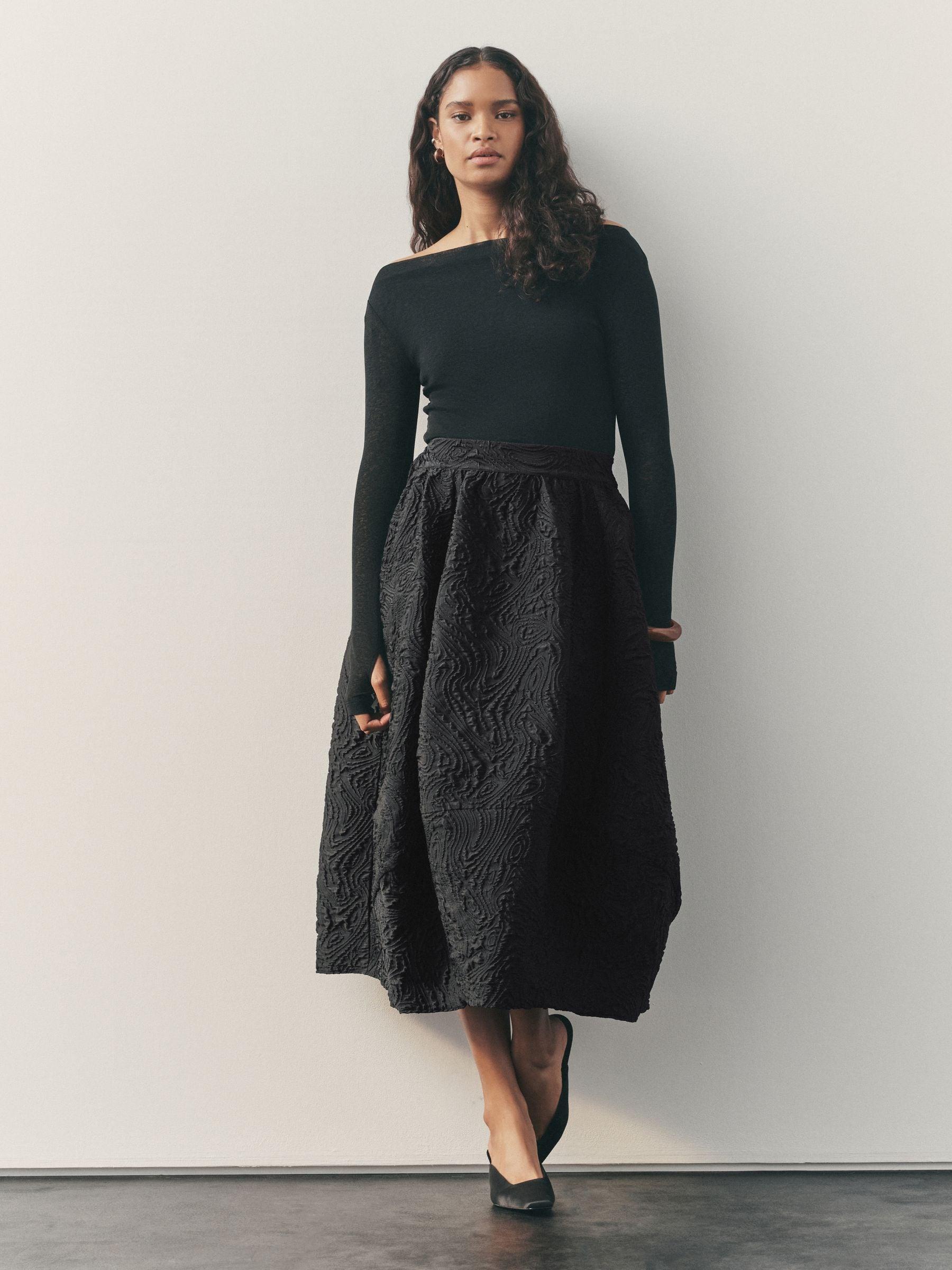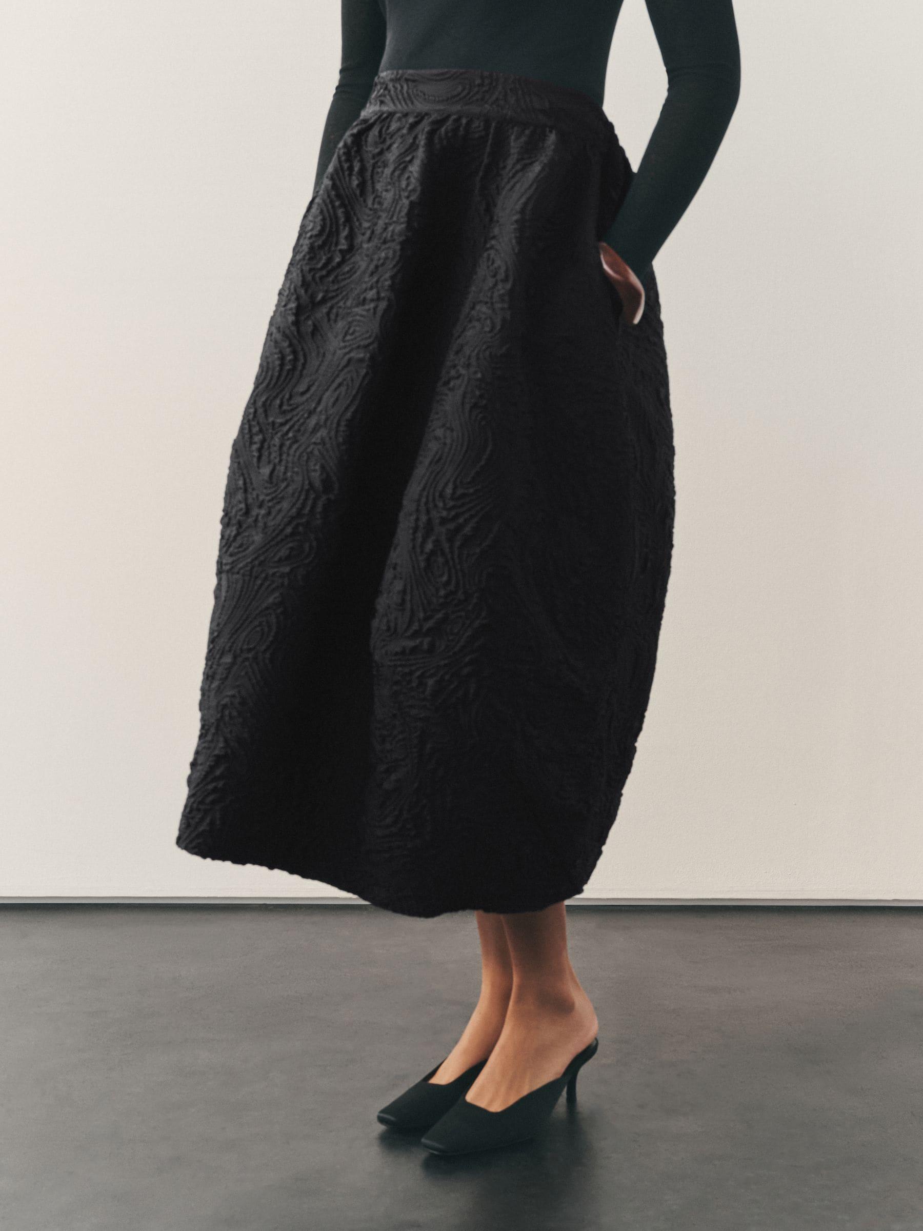 Nothing Ordinary Black Volume Jaquard Midi Skirt