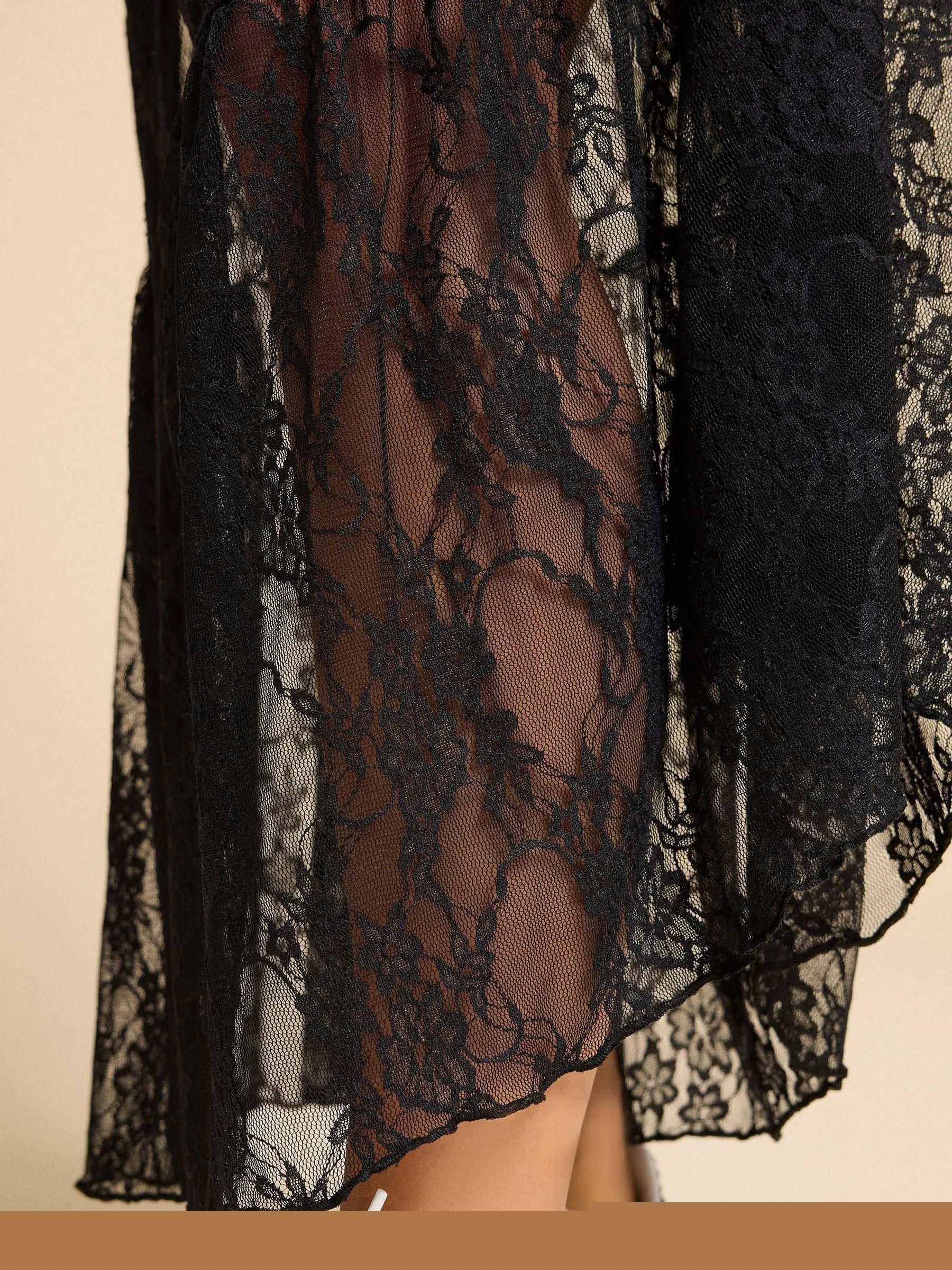 PixieGirl Petite Black Maxi Lace Lined Skirt