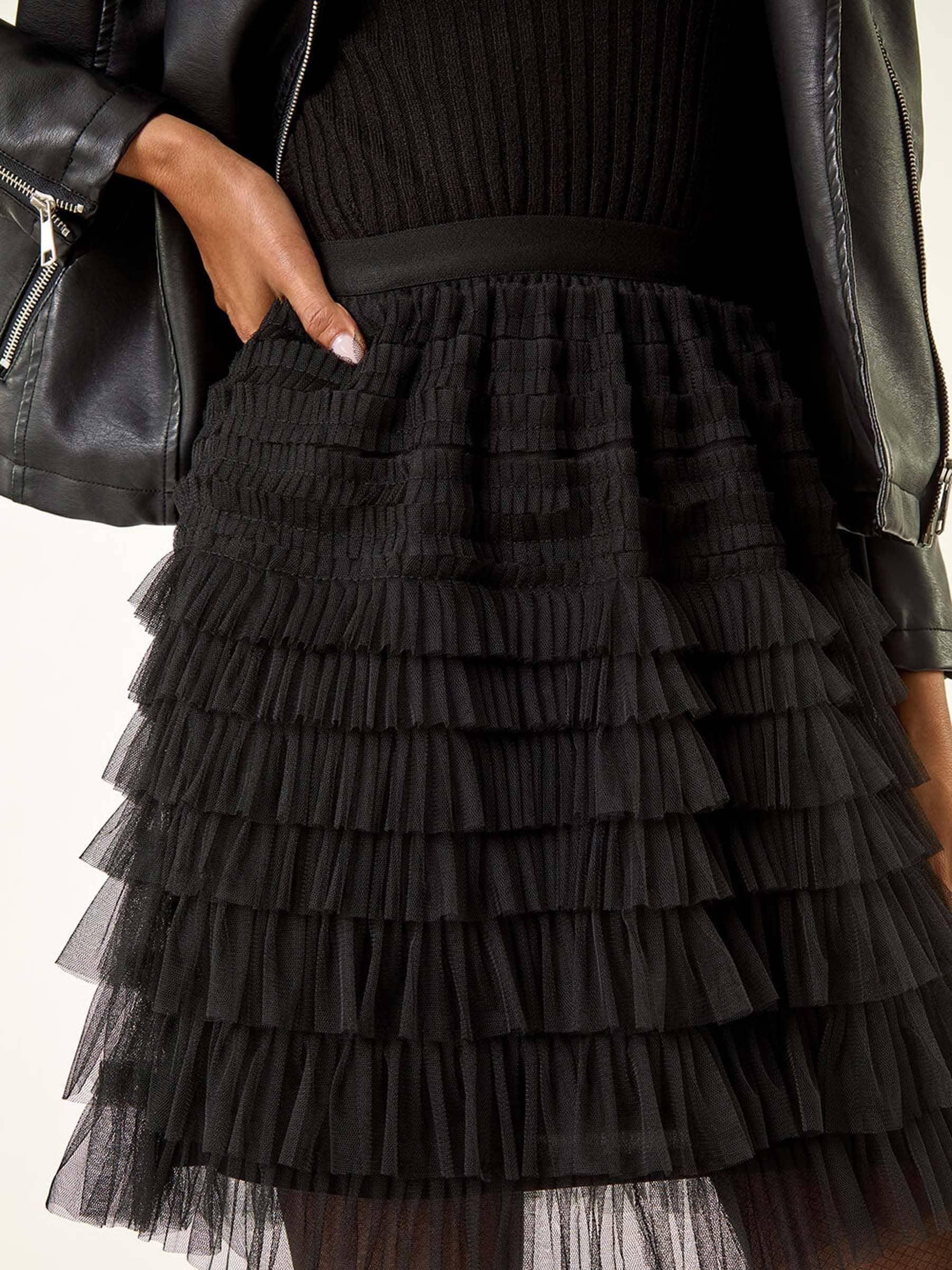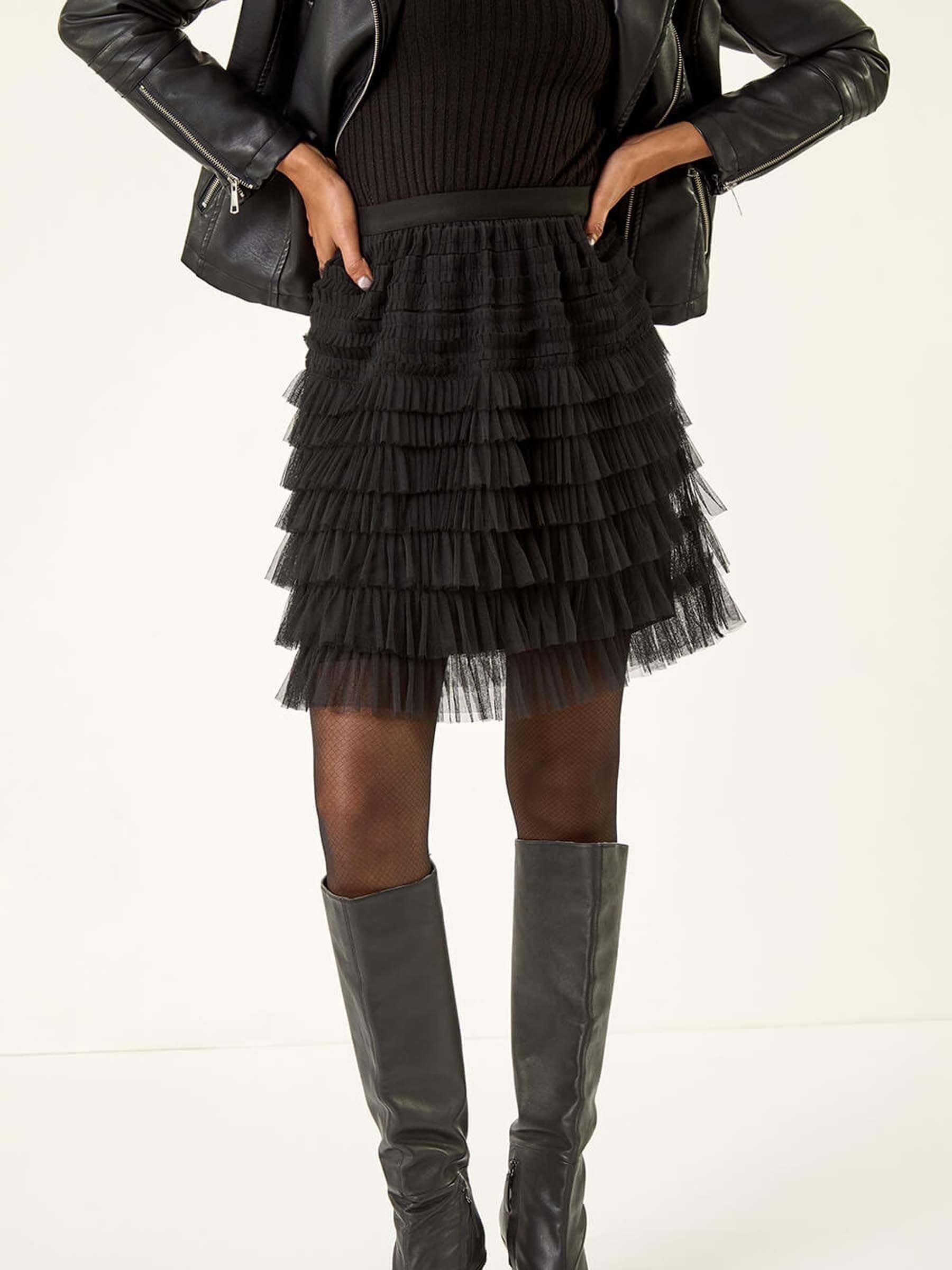 Roman Black Mesh Layered Mini Skirt