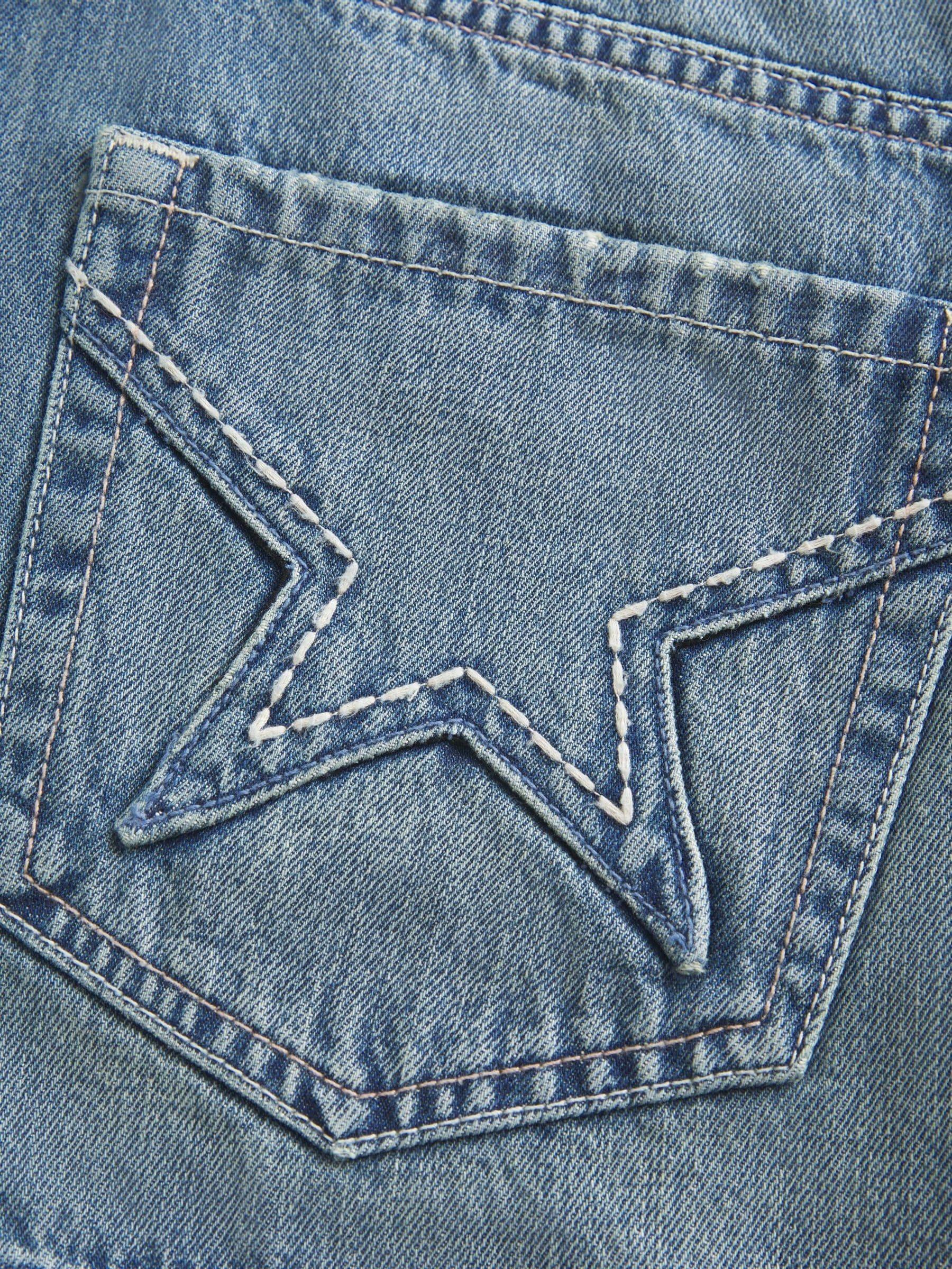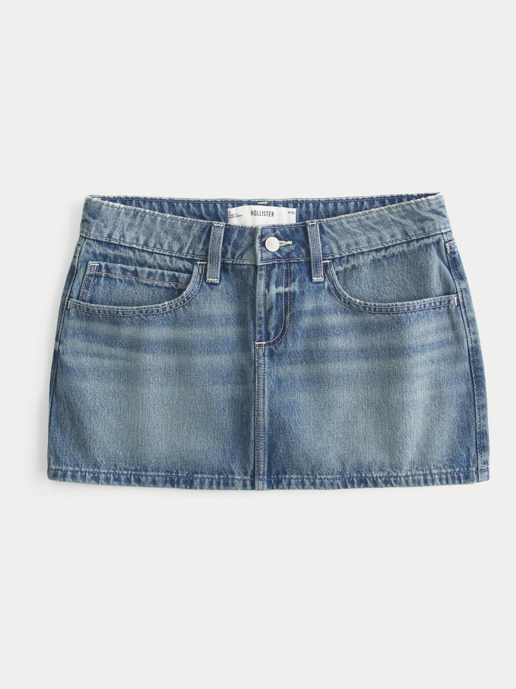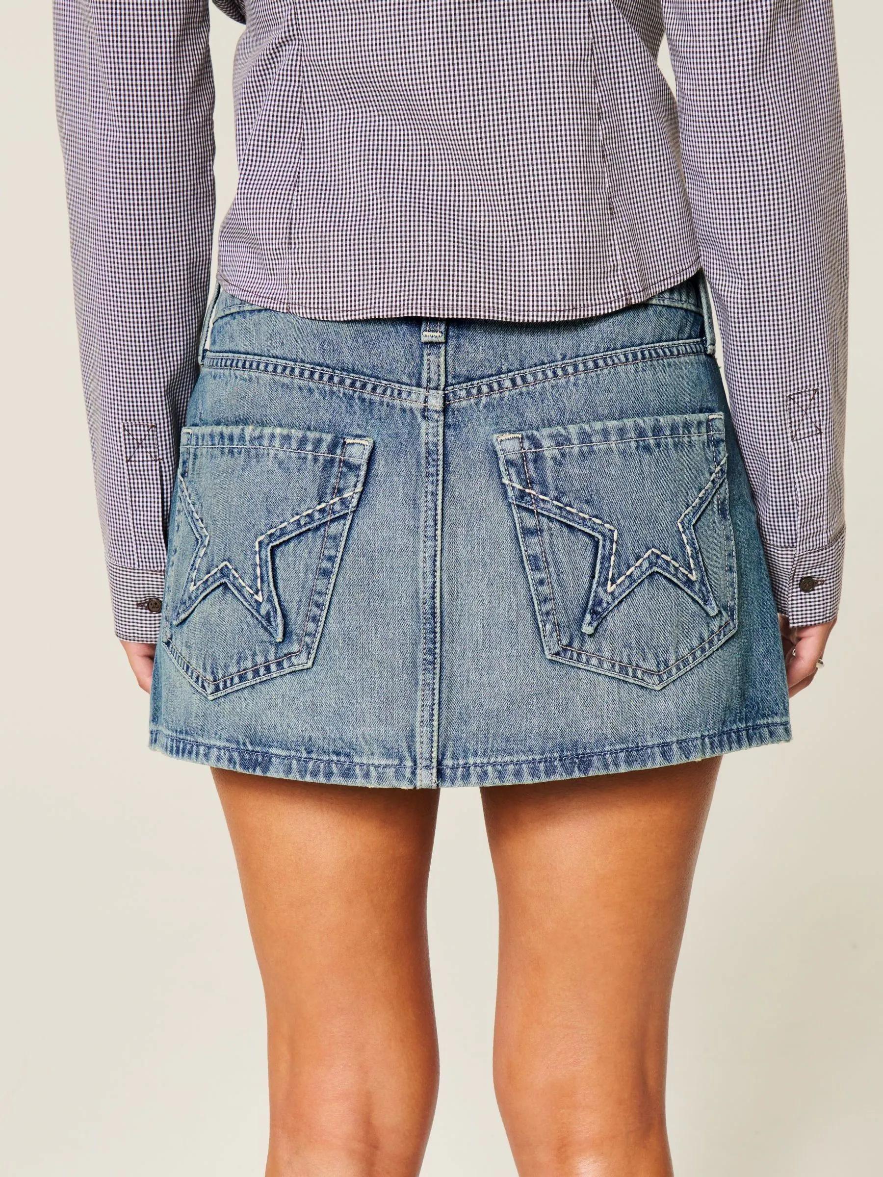 Hollister Low Rise Denim Black Mini Skirt With Star Embroidery Pocket Detail