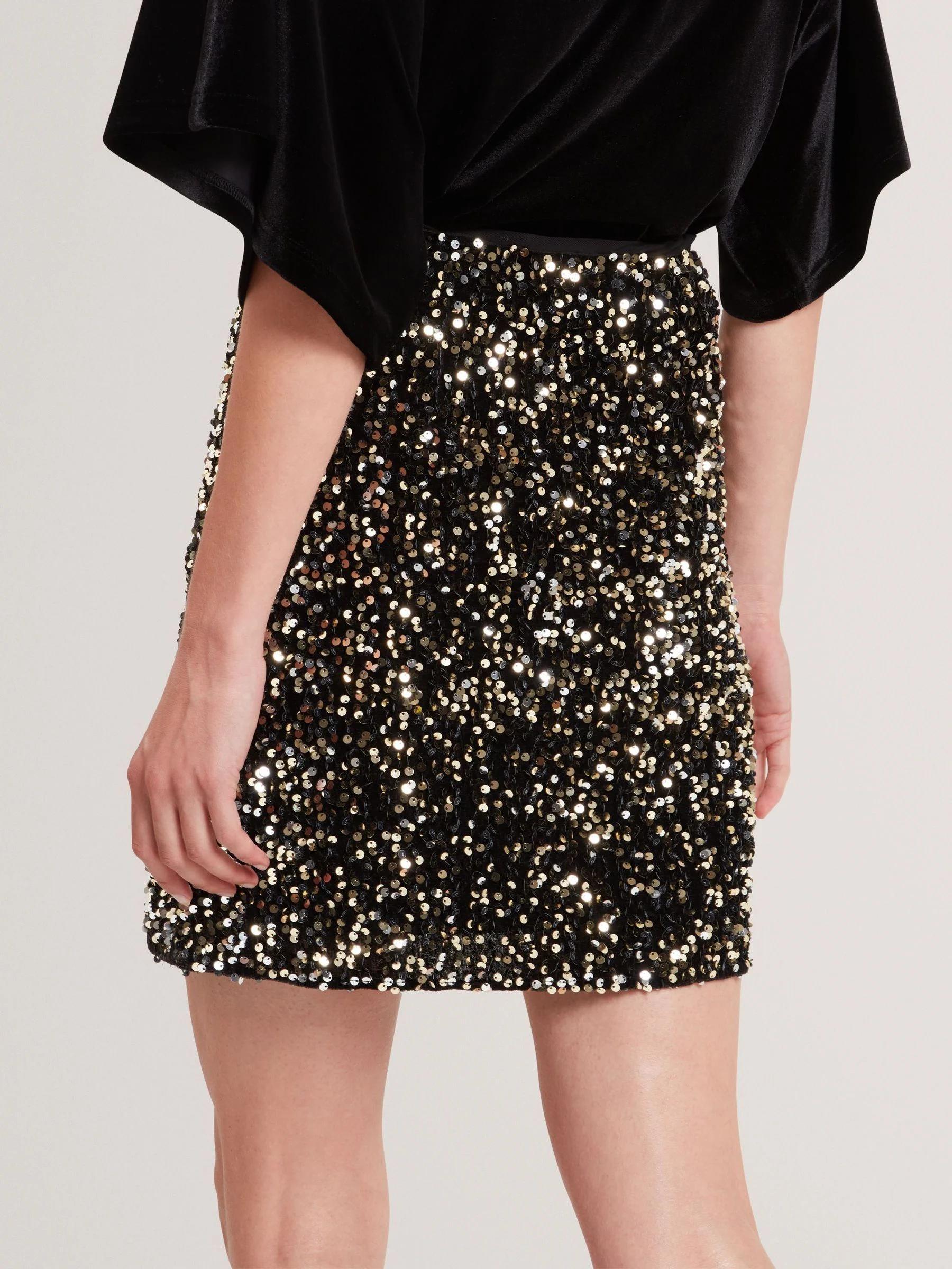 Ted Baker Black Pearsom - Velvet Sequin Mini Skirt