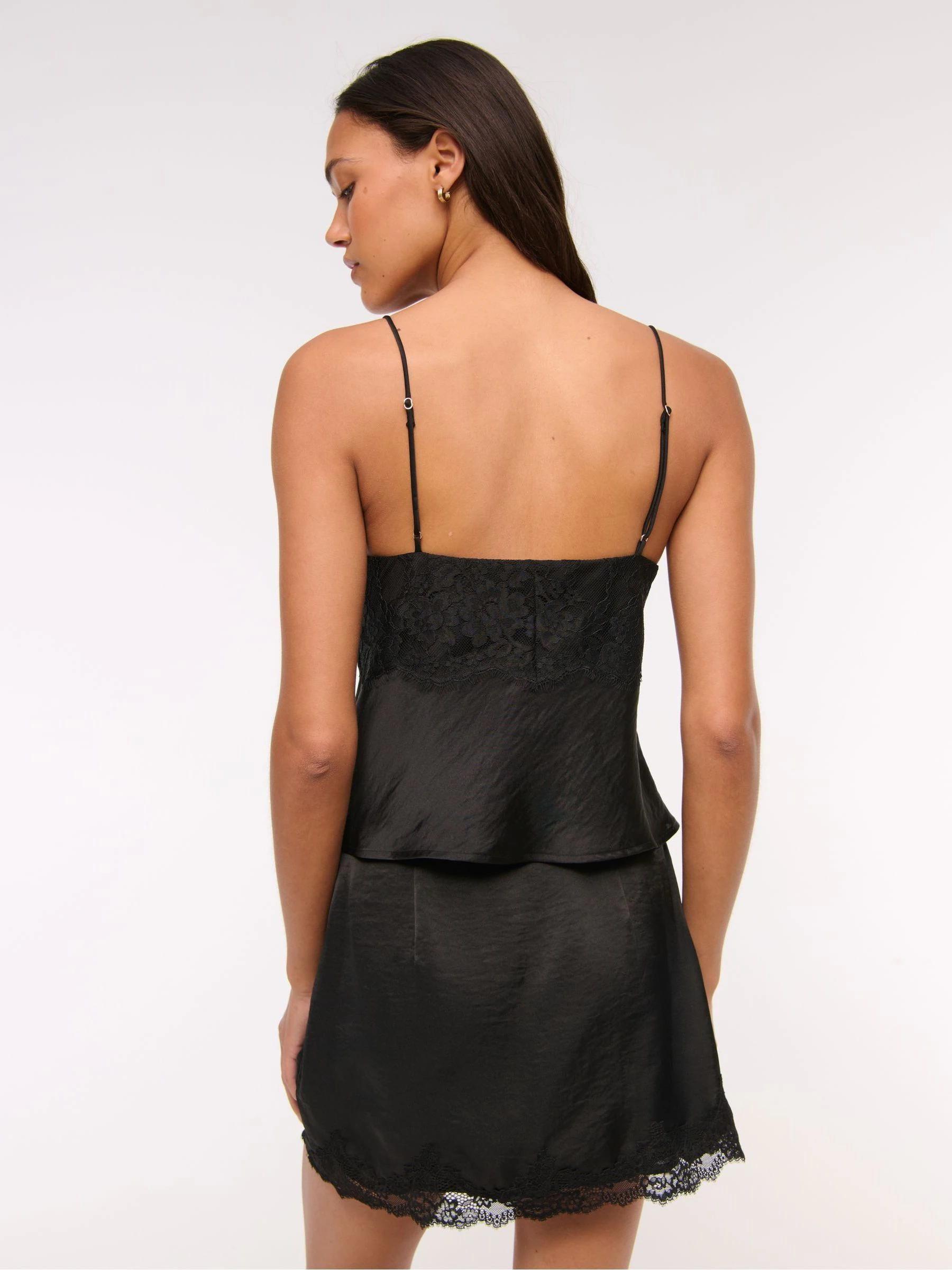 Abercrombie & Fitch Black Satin and Lace Mini Skort