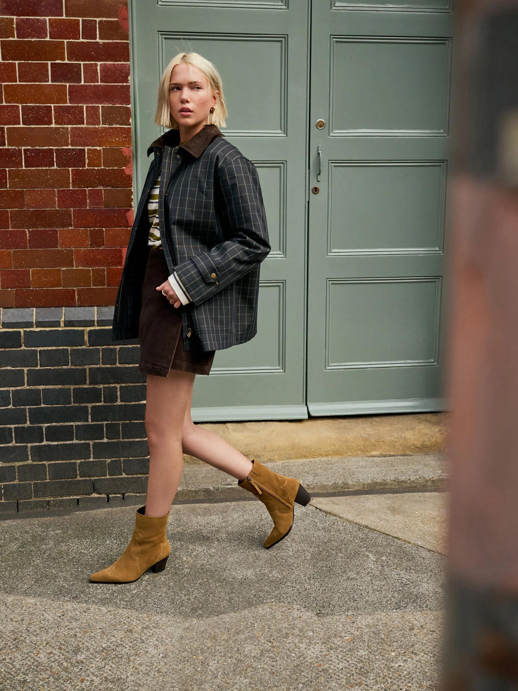 Navy Check Cord Collar Heritage Coat