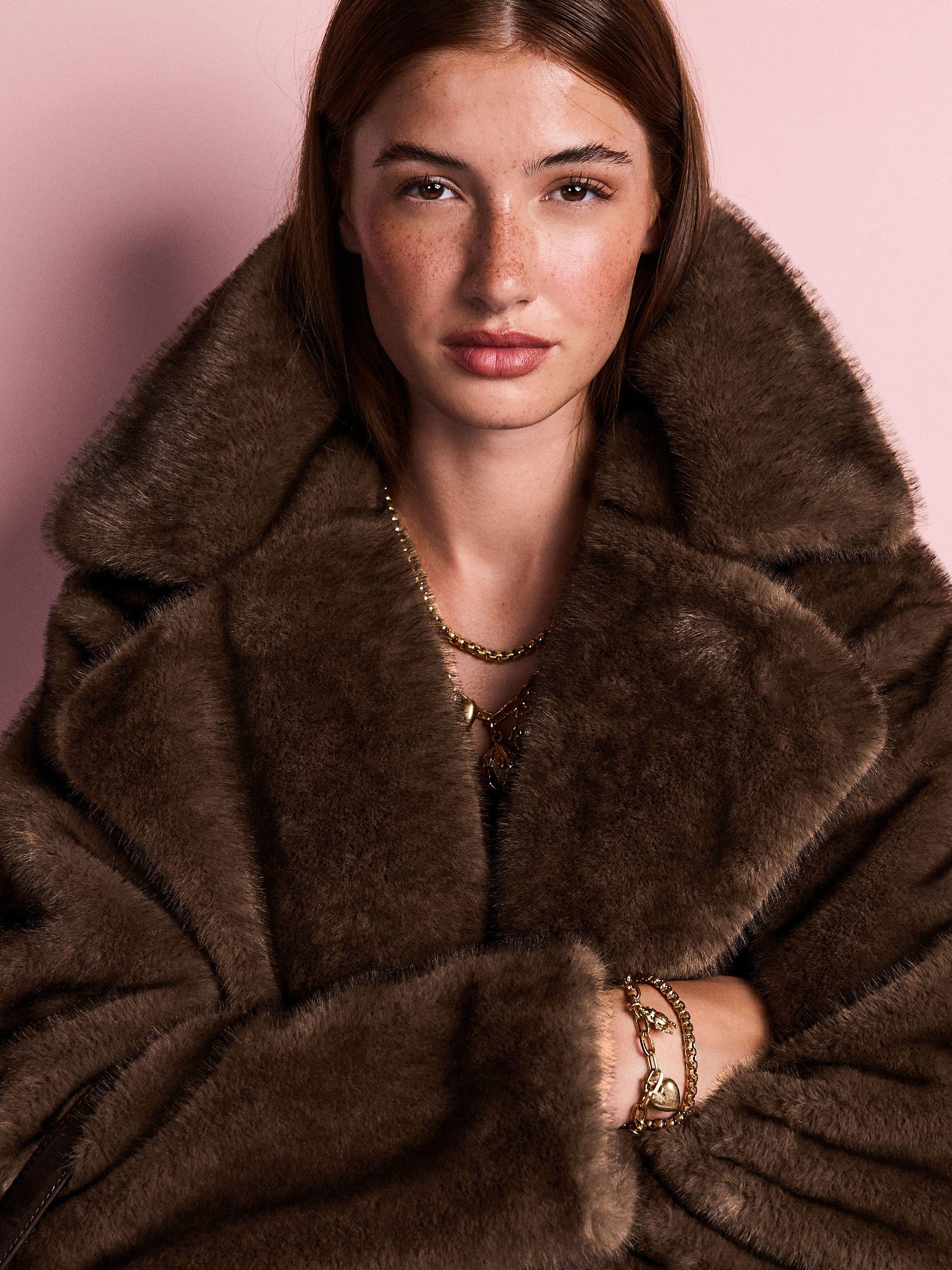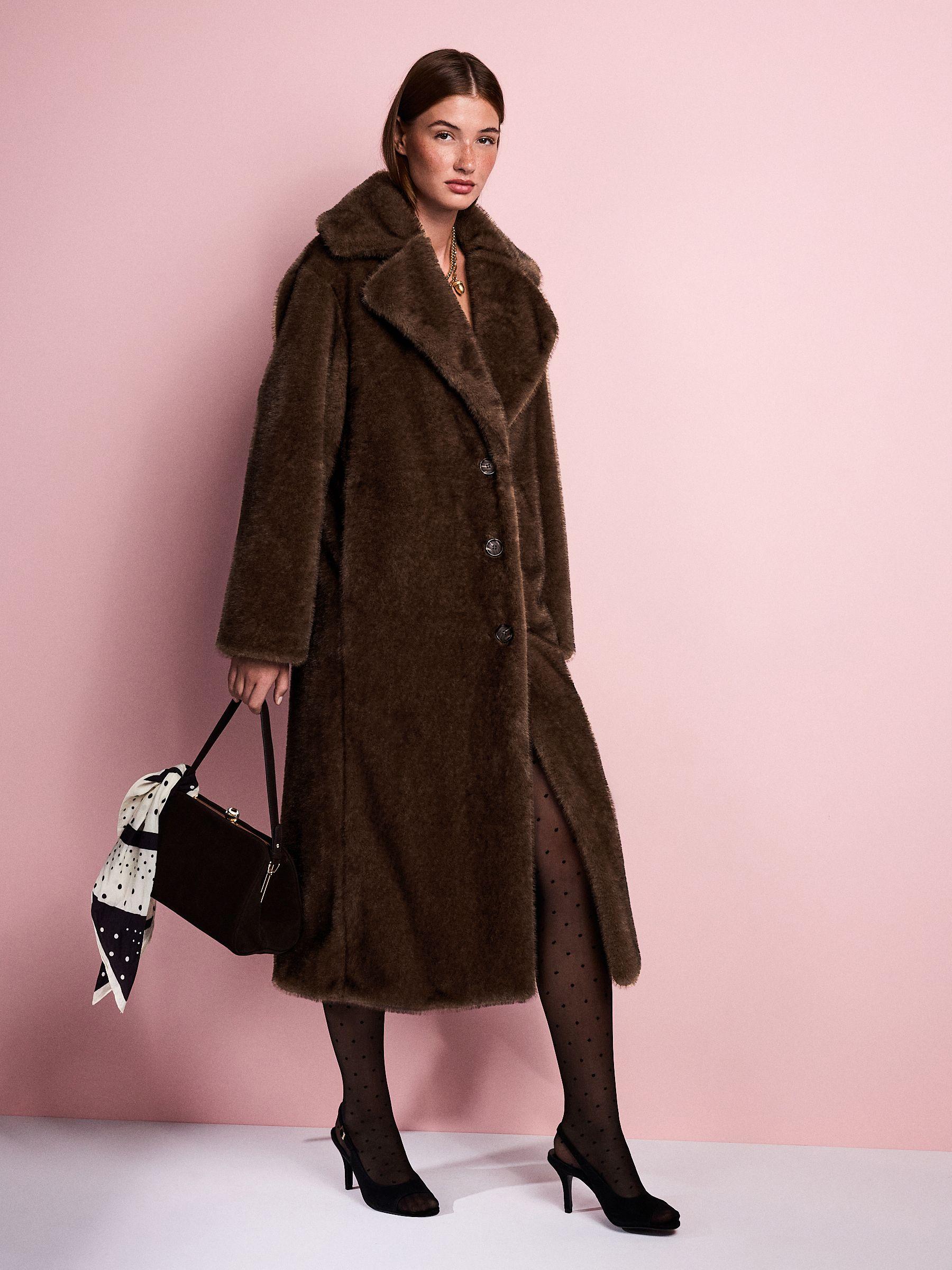 Chocolate Brown Tabitha Simmons X Next Premium Long Faux Fur Coat