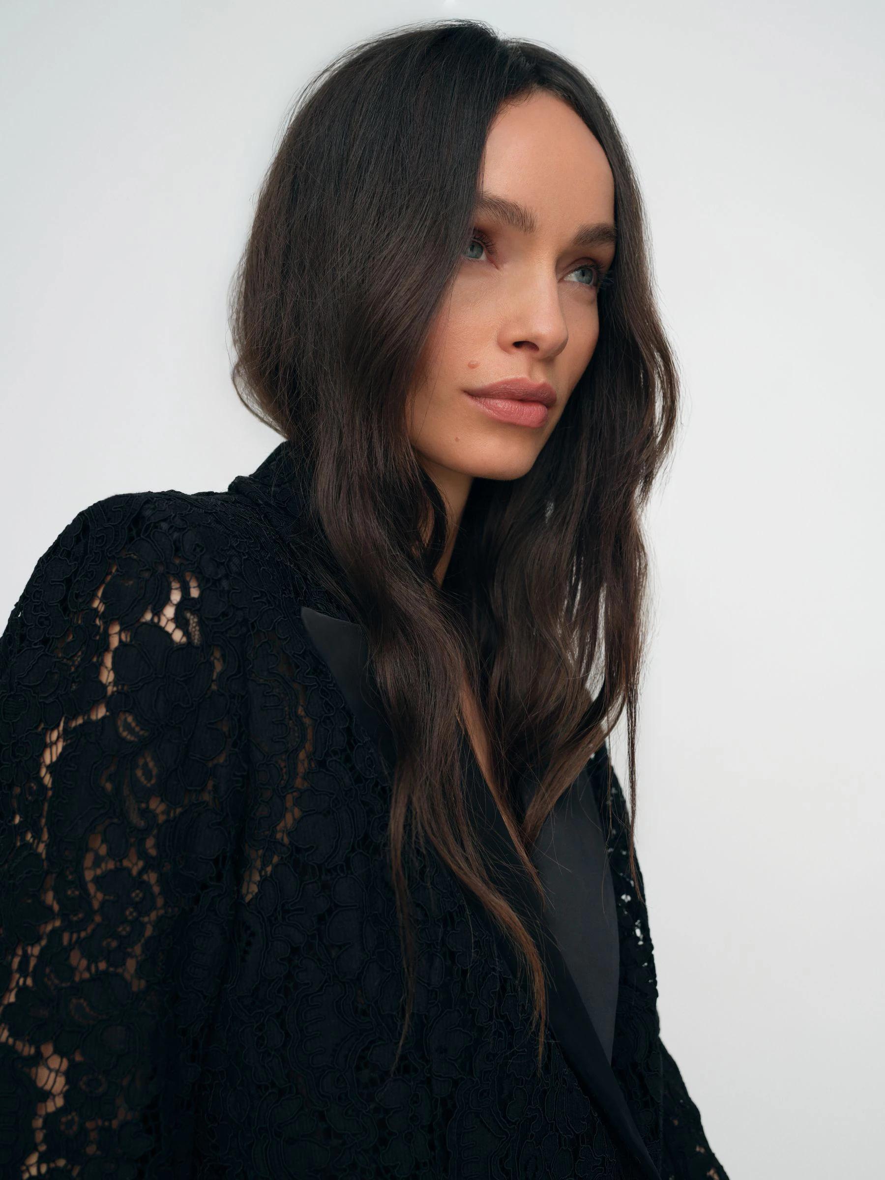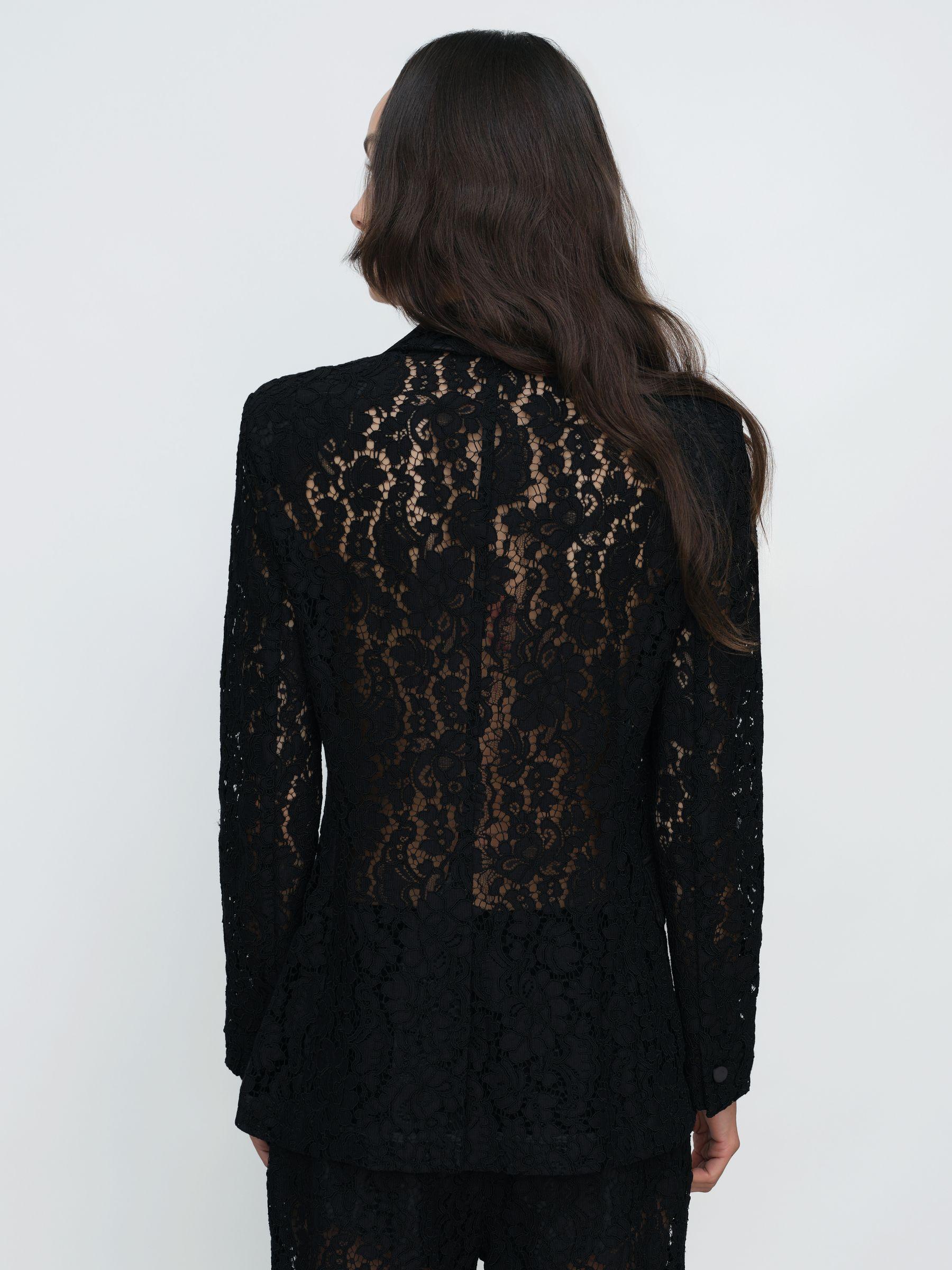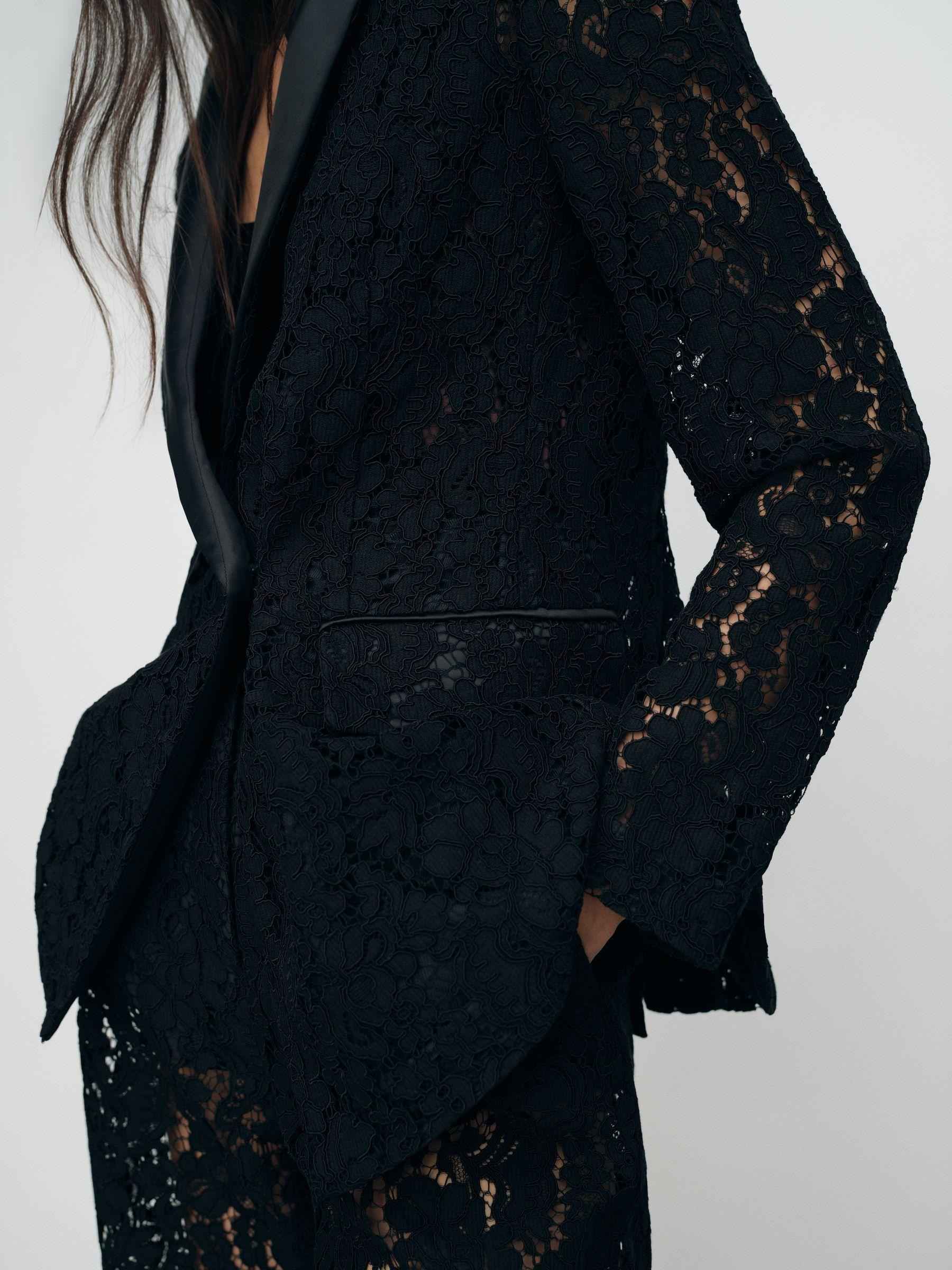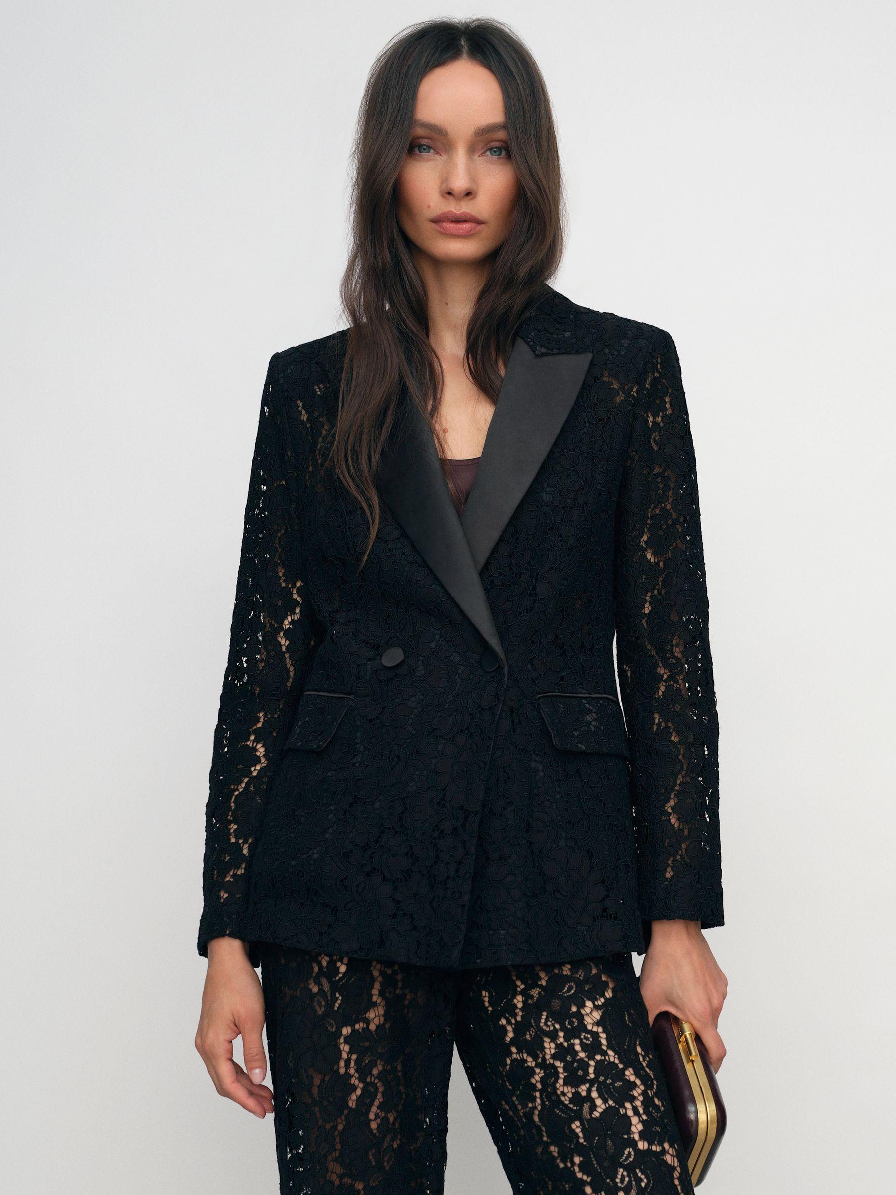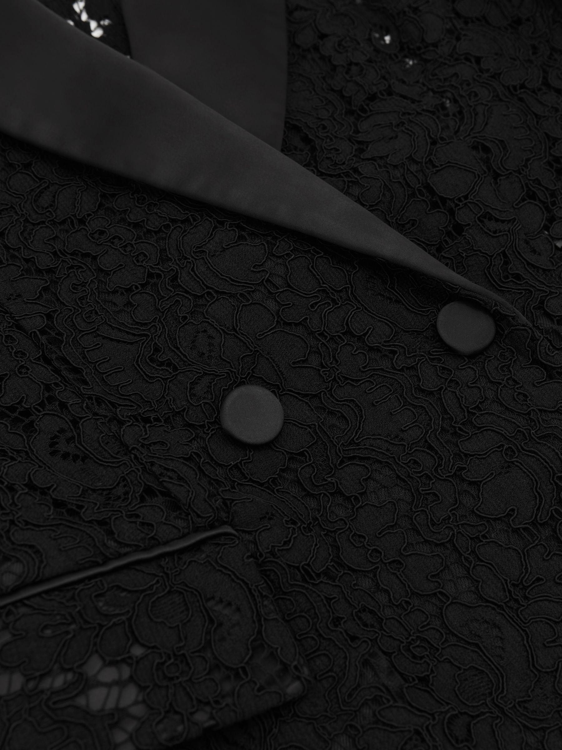 Reiss Black Delphine Double-Breasted Lace Tuxedo Blazer