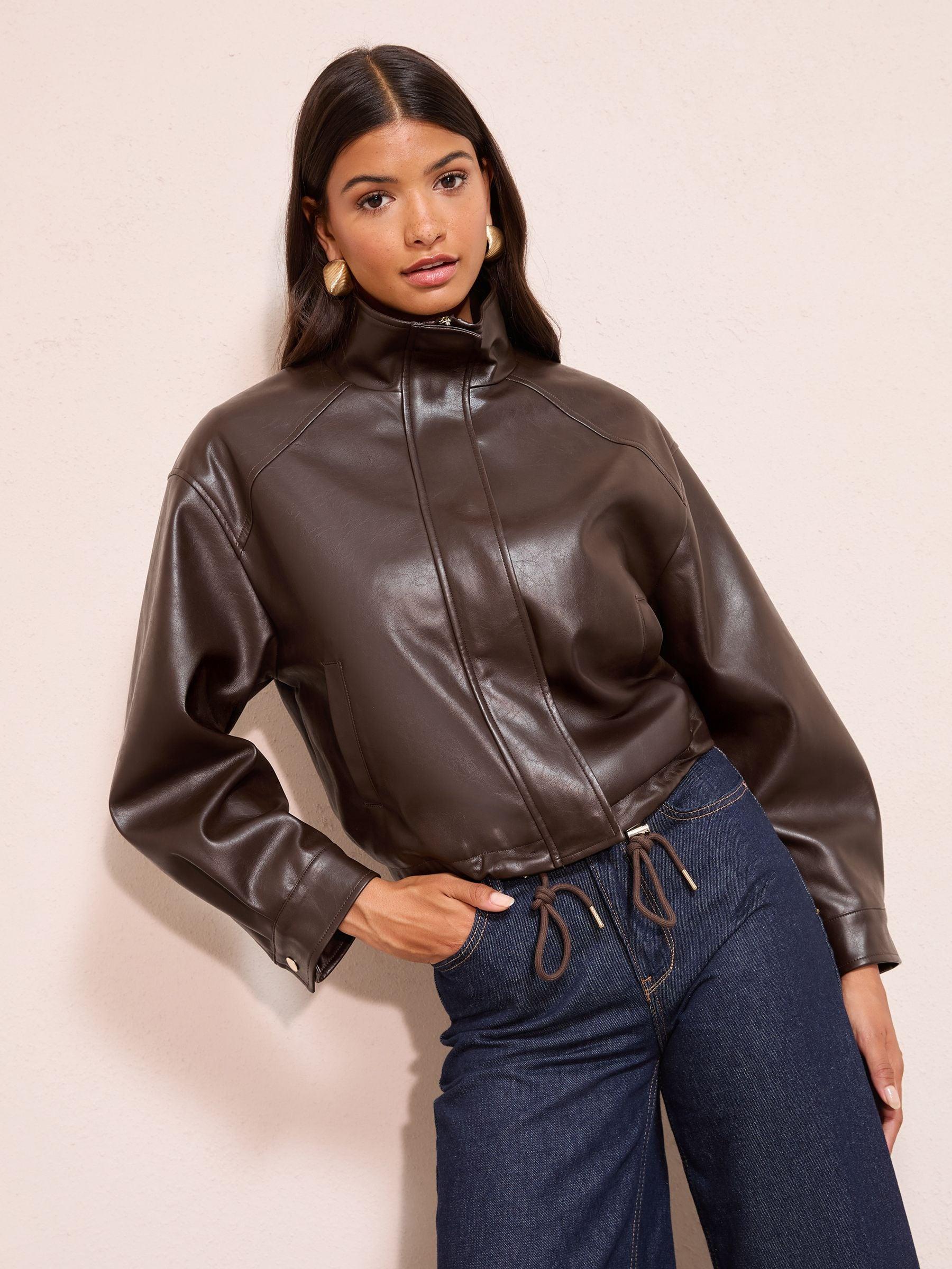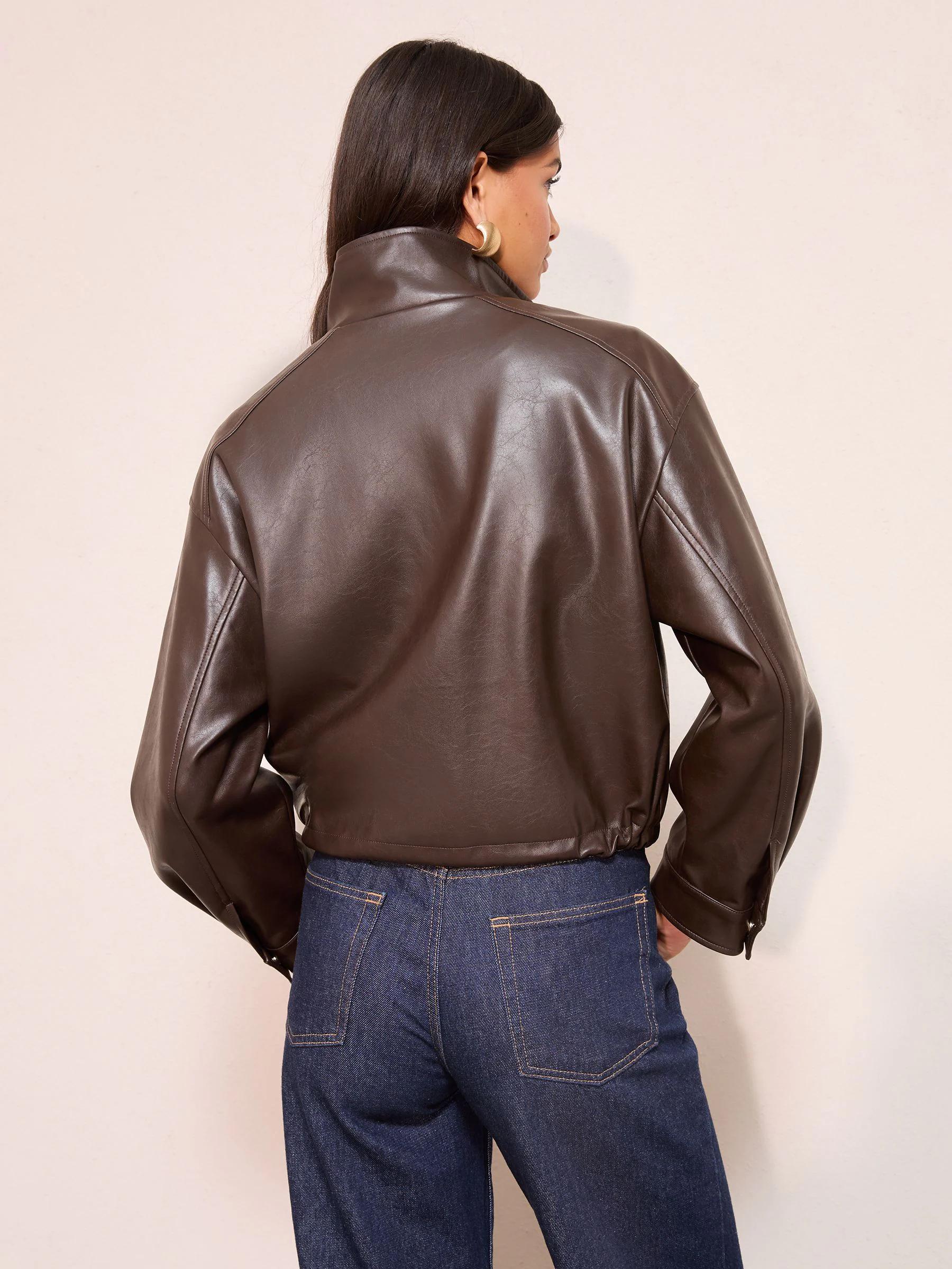 Friends Like These Chocolate Brown Faux Leather Bomber Jacket