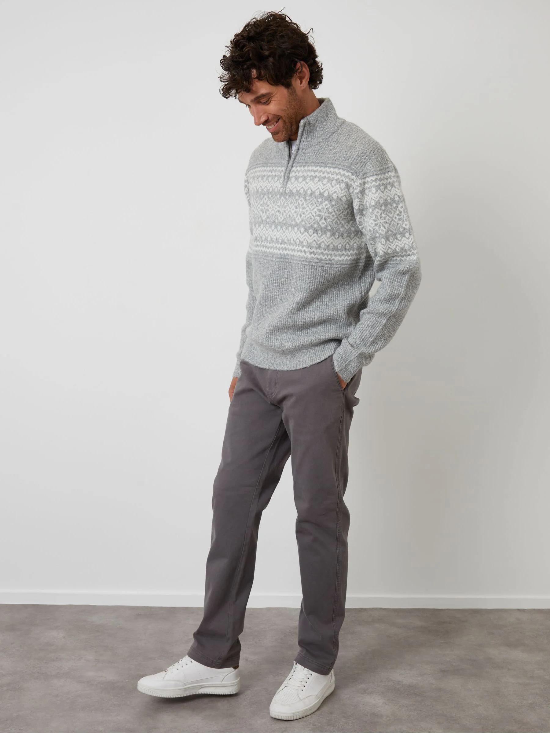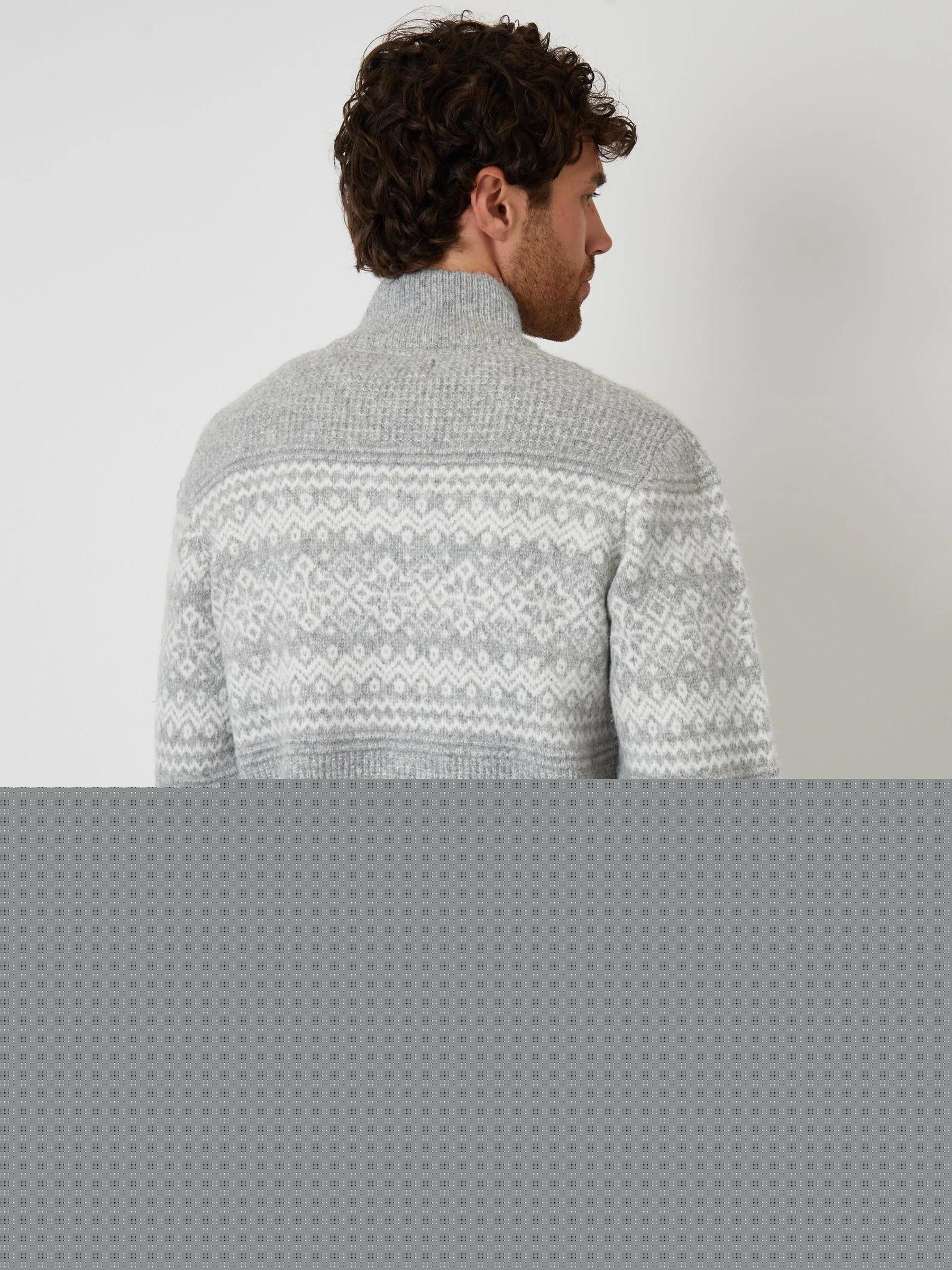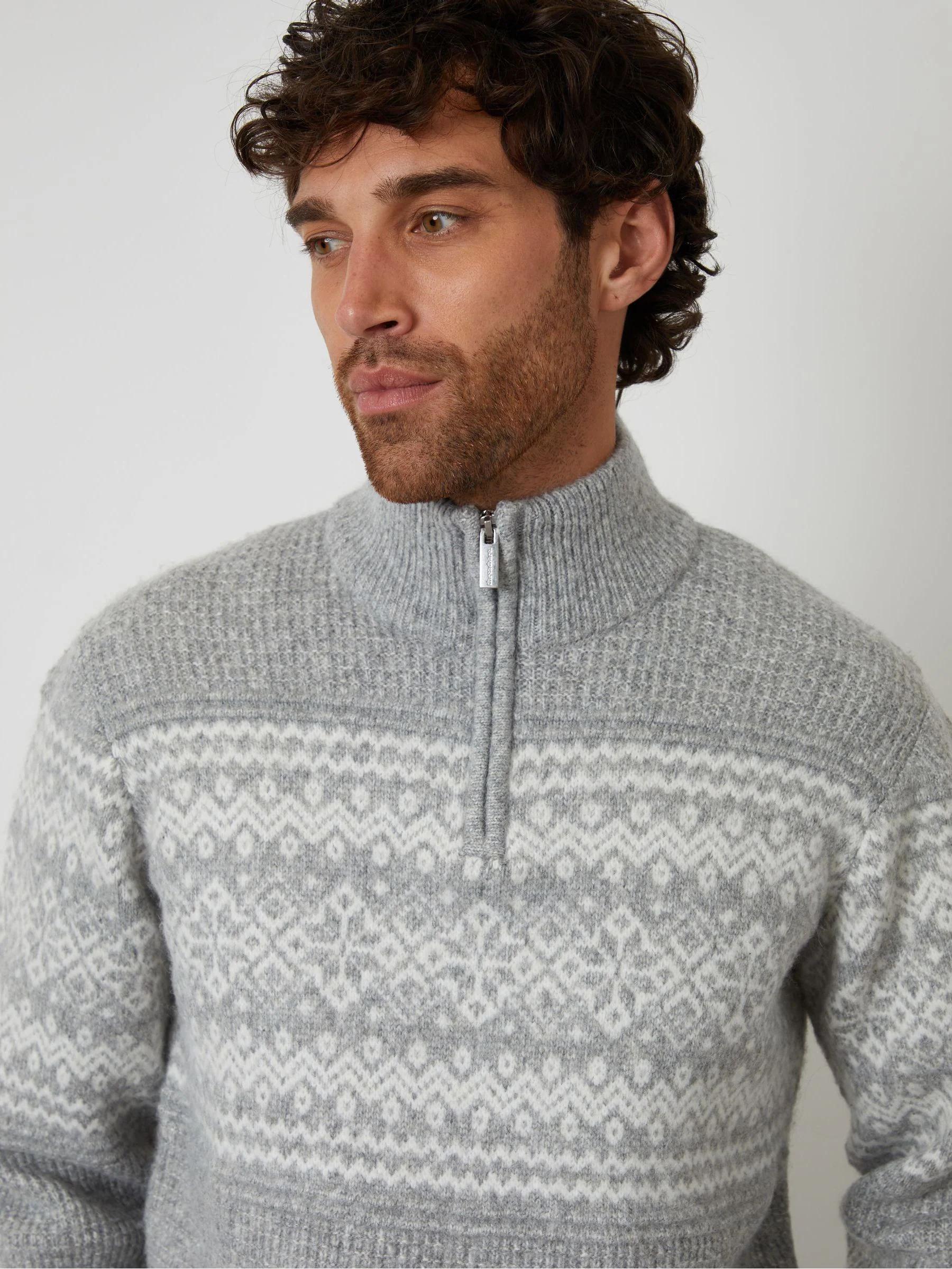 Threadbare Grey Textured Knitted Fairisle Quarter Zip Jumper