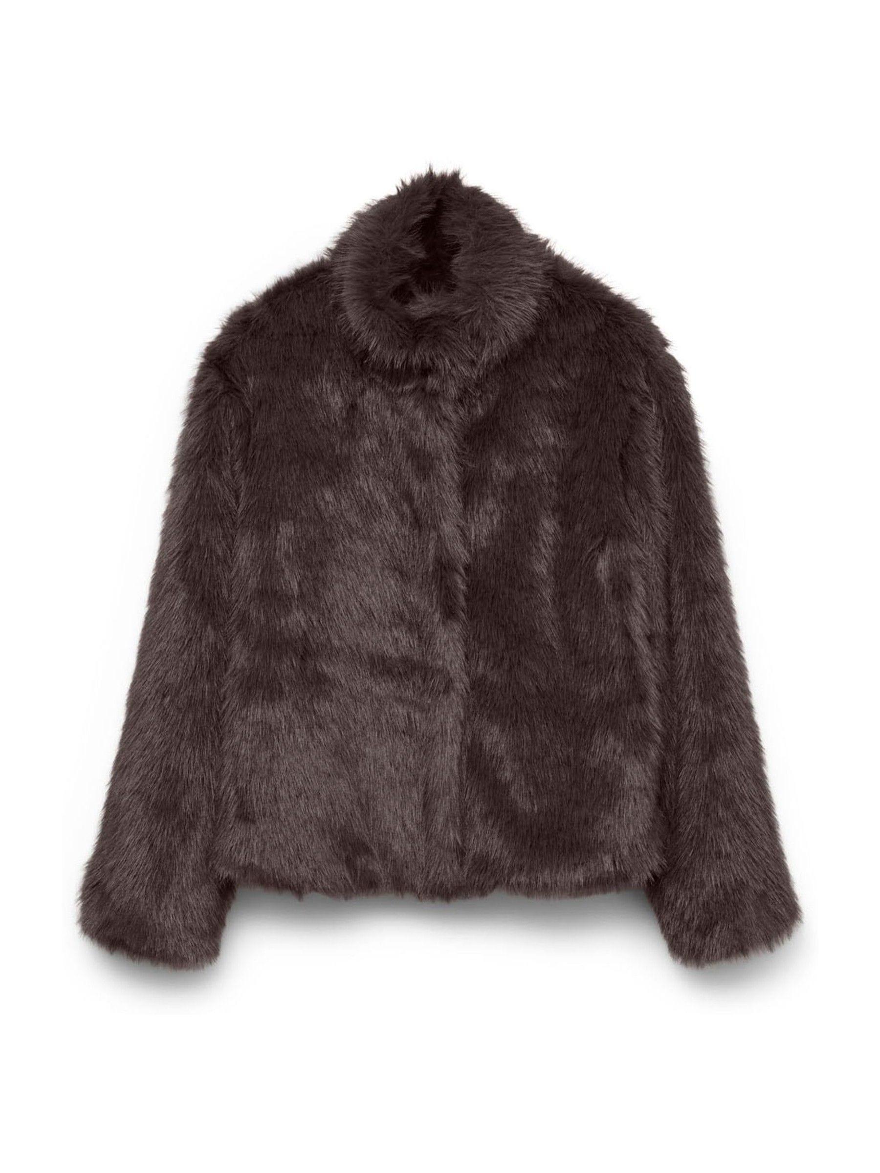 VERO MODA Brown Short Faux Fur Jacket