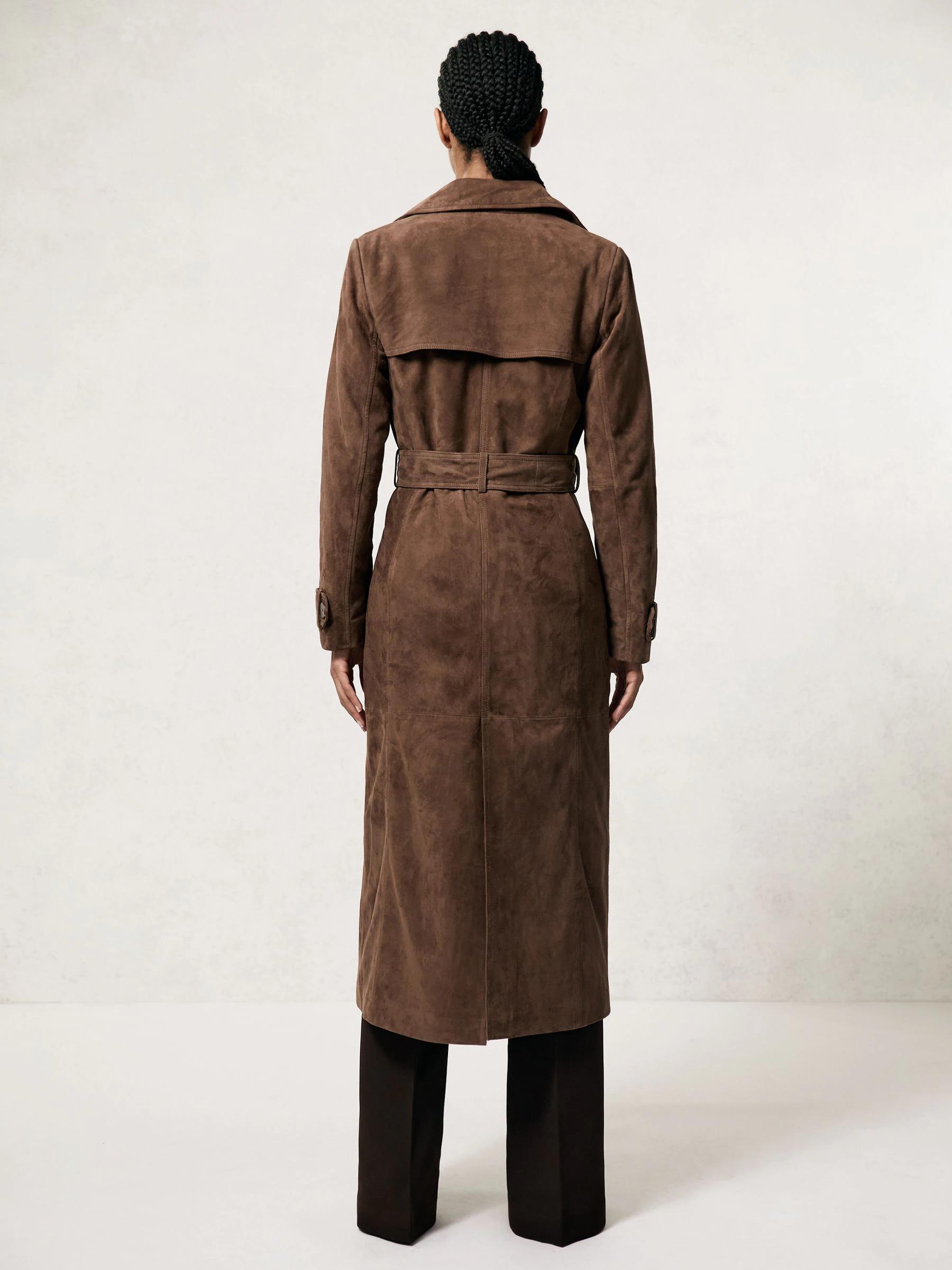 Reiss Taupe Neutral Hattie Suede Suede Belted Trench Coat