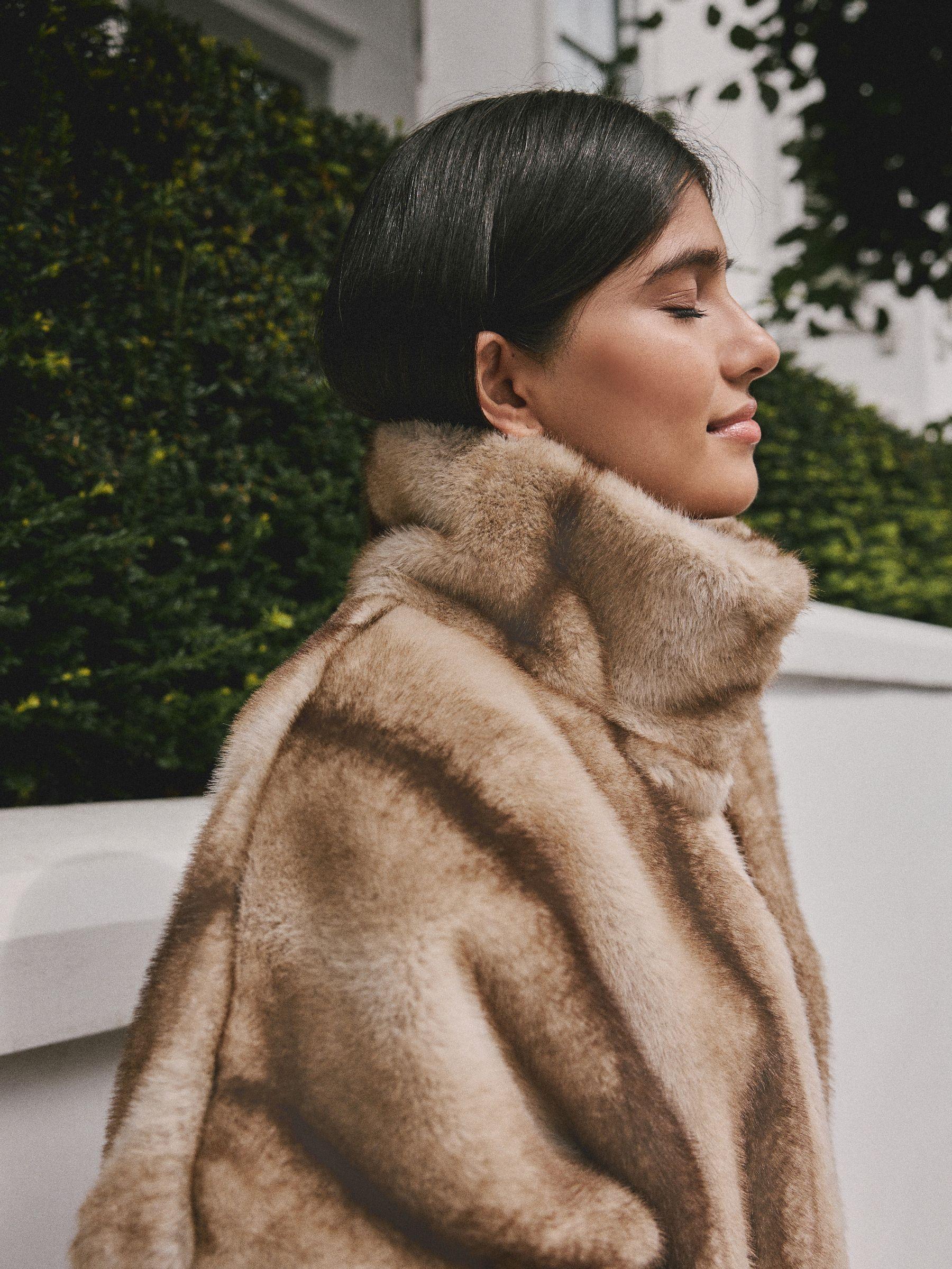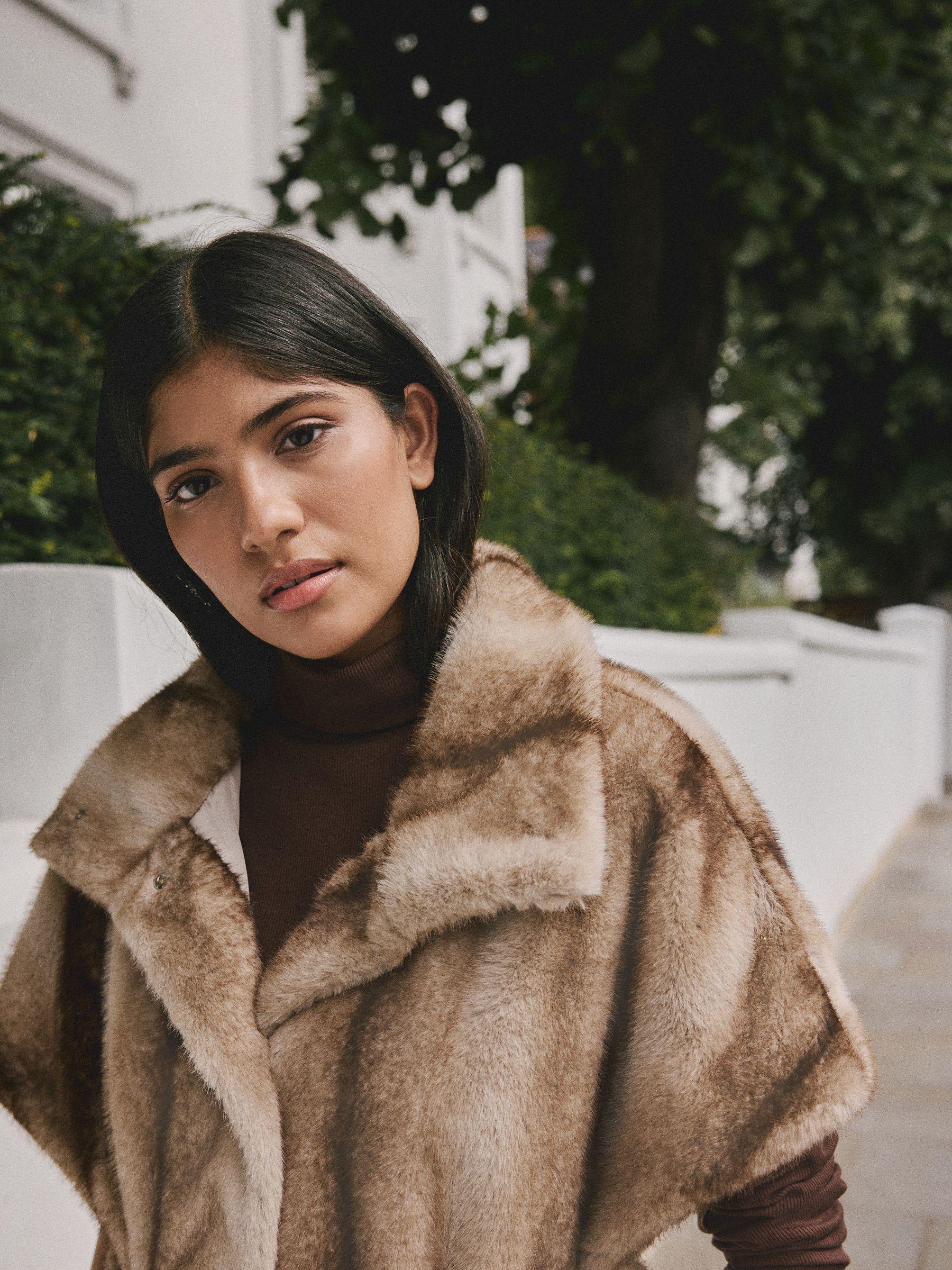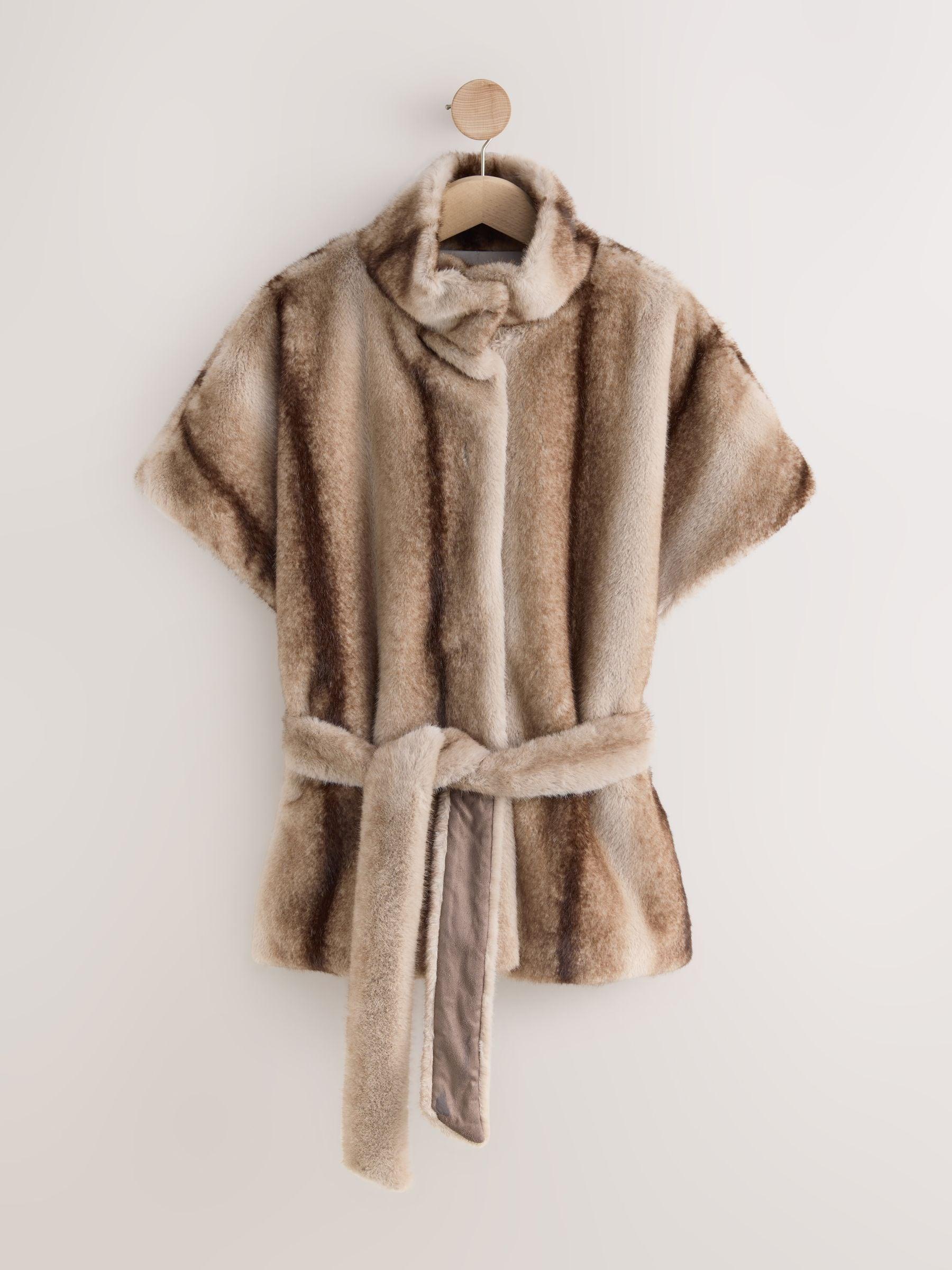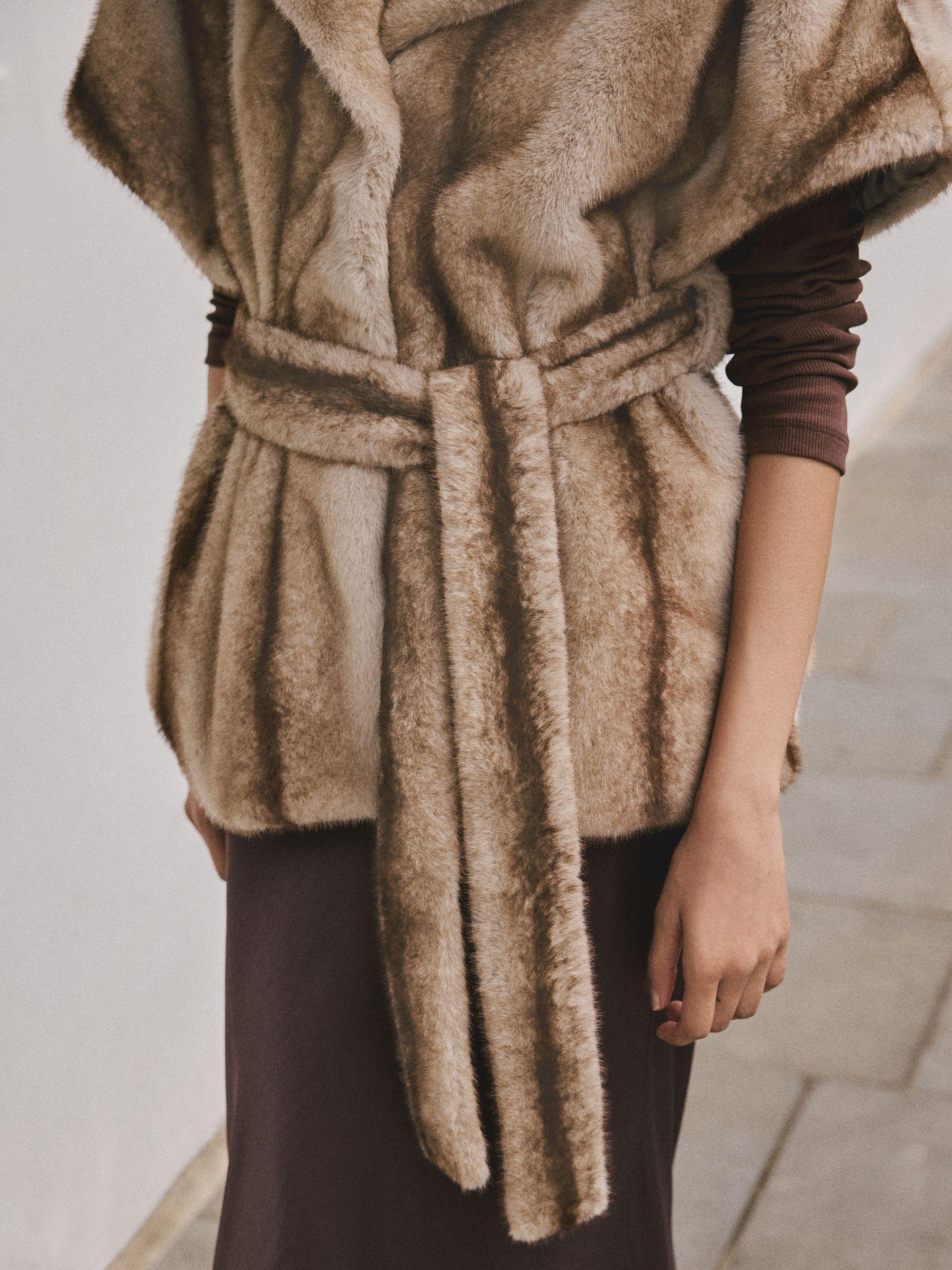 Camel Faux Fur Tie Waisted Gilet
