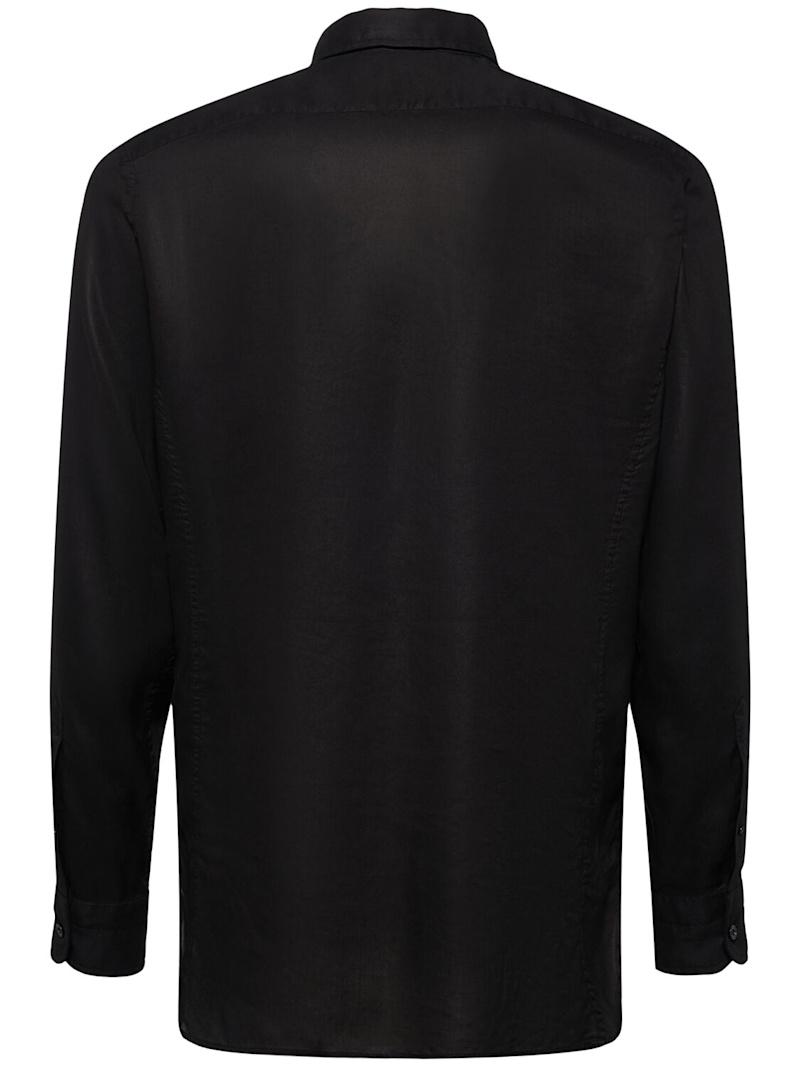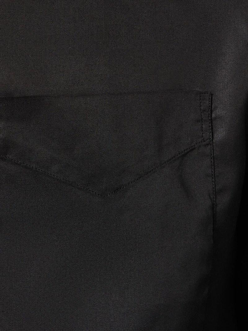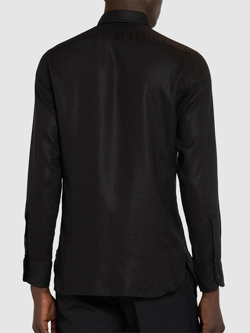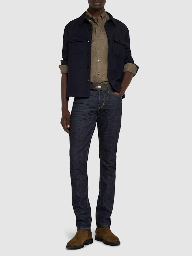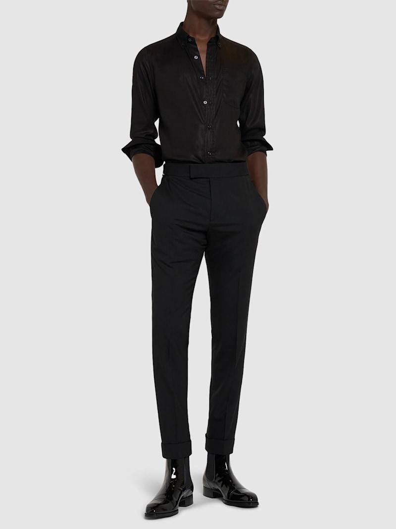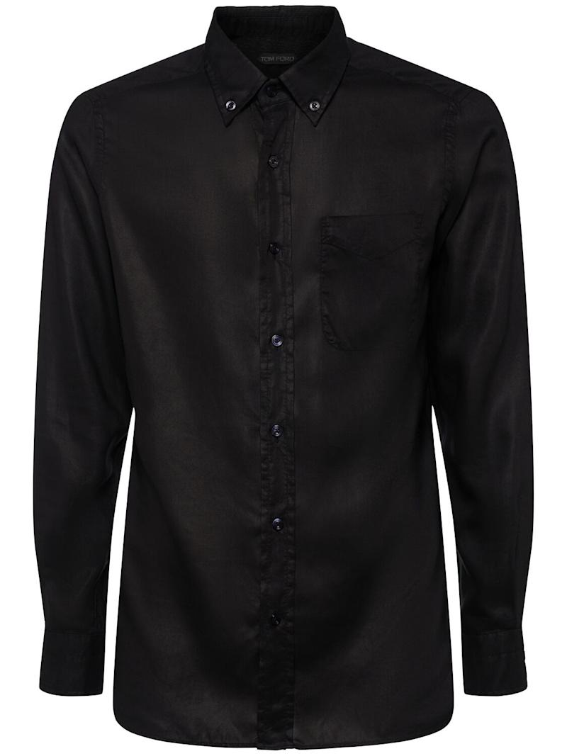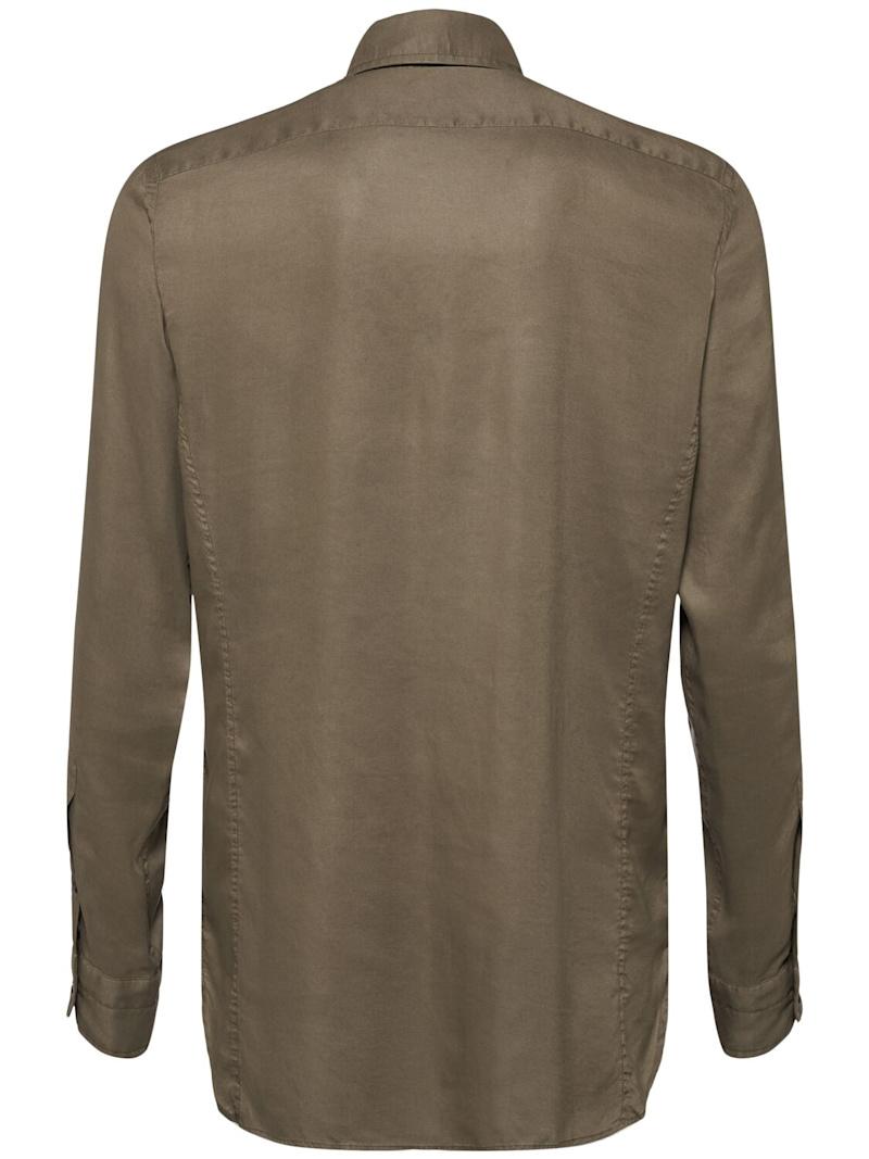 光滑华达呢修身衬衫 - 军绿色 - 男士 - Tom Ford - 正面纽扣开合.