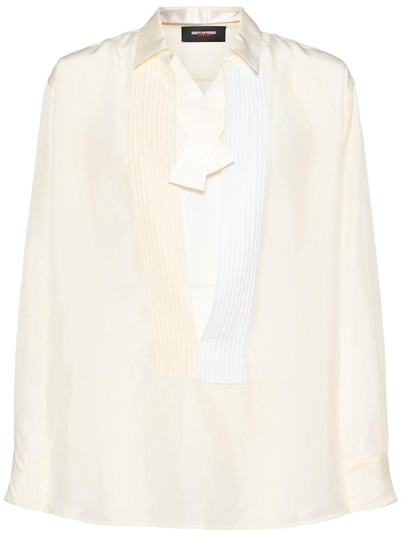 Magliano真丝燕尾服衬衫 - 白色 - 男士 - Dsquared2 - 领口系带开合.