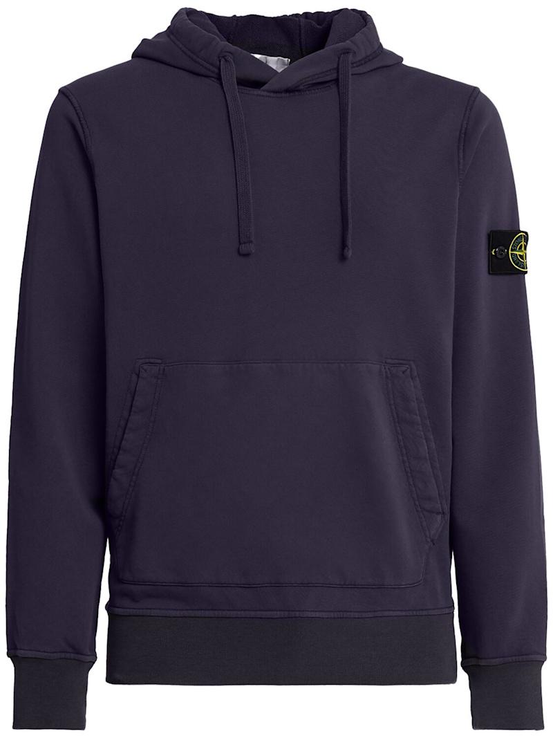 棉质连帽卫衣 - 黑色 - 男士 - Stone Island - 不可拆卸风帽配有抽绳.