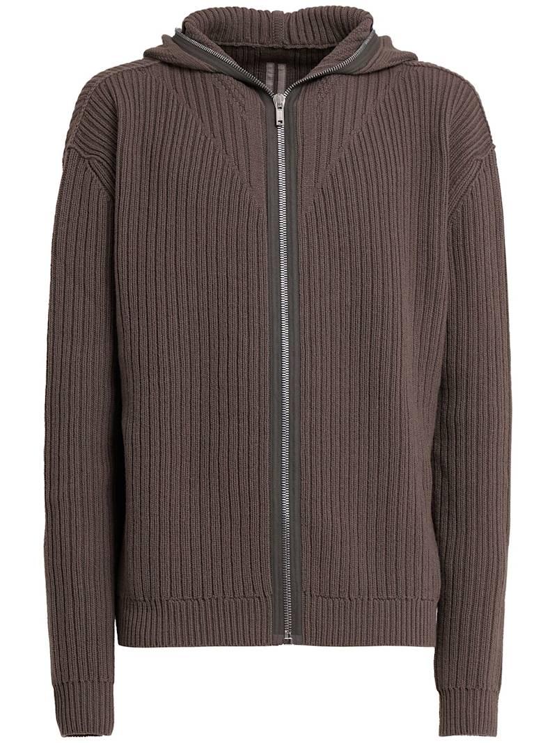 拉链开合羊毛连帽卫衣 - 沙尘色 - 男士 - Rick Owens - 不可拆卸的风帽.