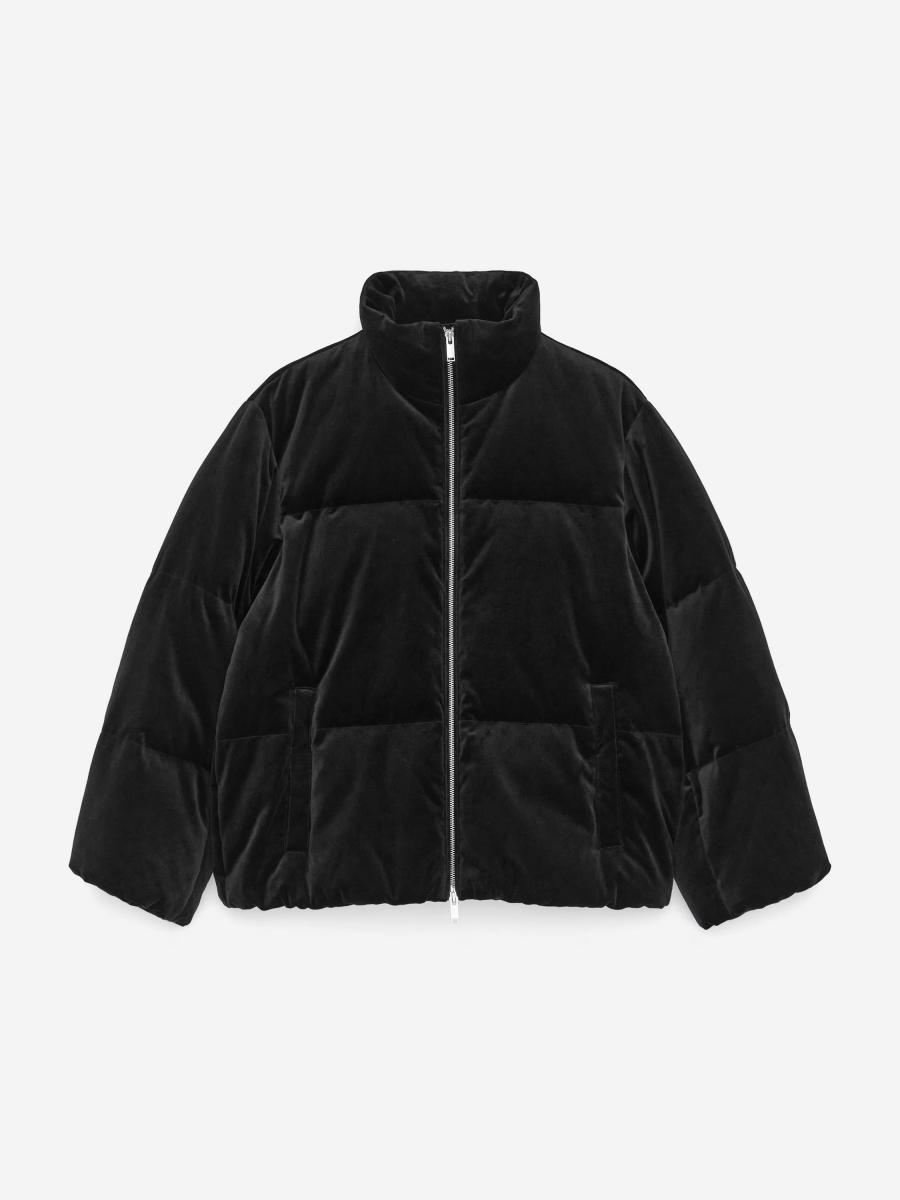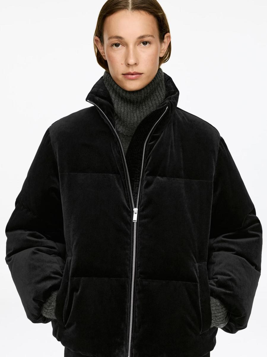 Padded puffer jacket in a velvet fabric. Features a stand collar, zip closure, and zipped pockets. Regular fit.ARKET/Women's clothes/Women's coats and jackets/Women's jackets