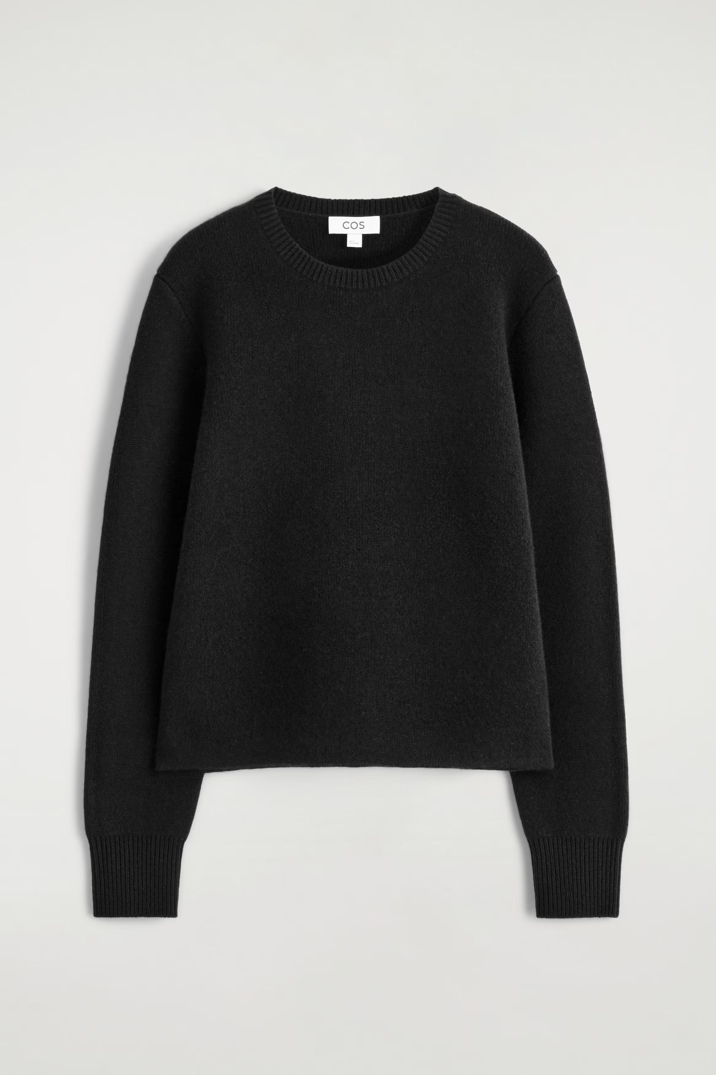 This refined jumper will make a versatile styling piece throughout the autumn/winter season. It's crafted from luxuriously soft merino wool in an enduring black hue and designed with a crew neckline and finely ribbed trims.\u0026nbsp;\u0026nbsp;Regular fitThis product contains Responsible Wool Standard TE-00047206 (RWS) wool fibre from farms certified to animal welfare and land-management requirements\u0026nbsp;Shell: 97% Merino wool, 2% Recycled polyamide (Recycled nylon), 1% Elastane. Excluding trims / Dry clean\u0026nbsp;Back length of size S is 57cm / Model wears a size S