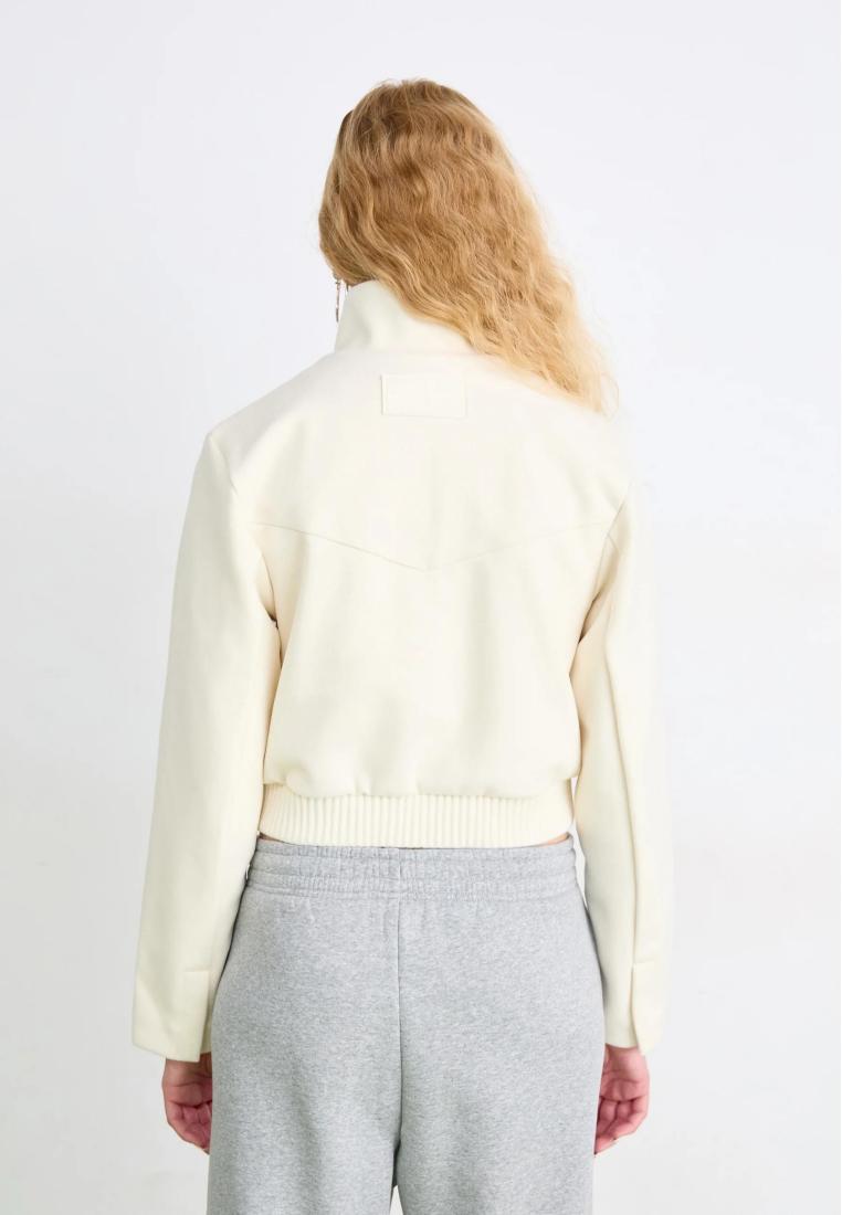 Collar: Standing collarFastening: ZipPockets: Inseam pocketsPattern: PlainDetails: Two-way zip, elasticated waist