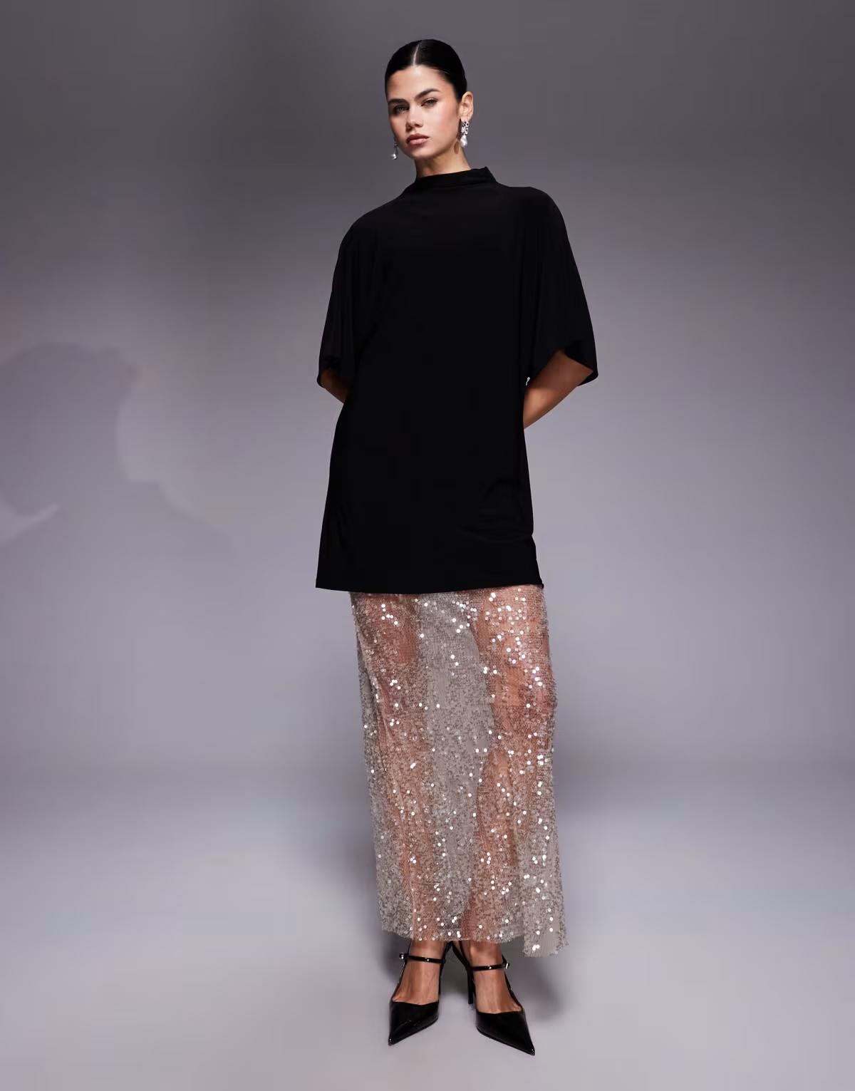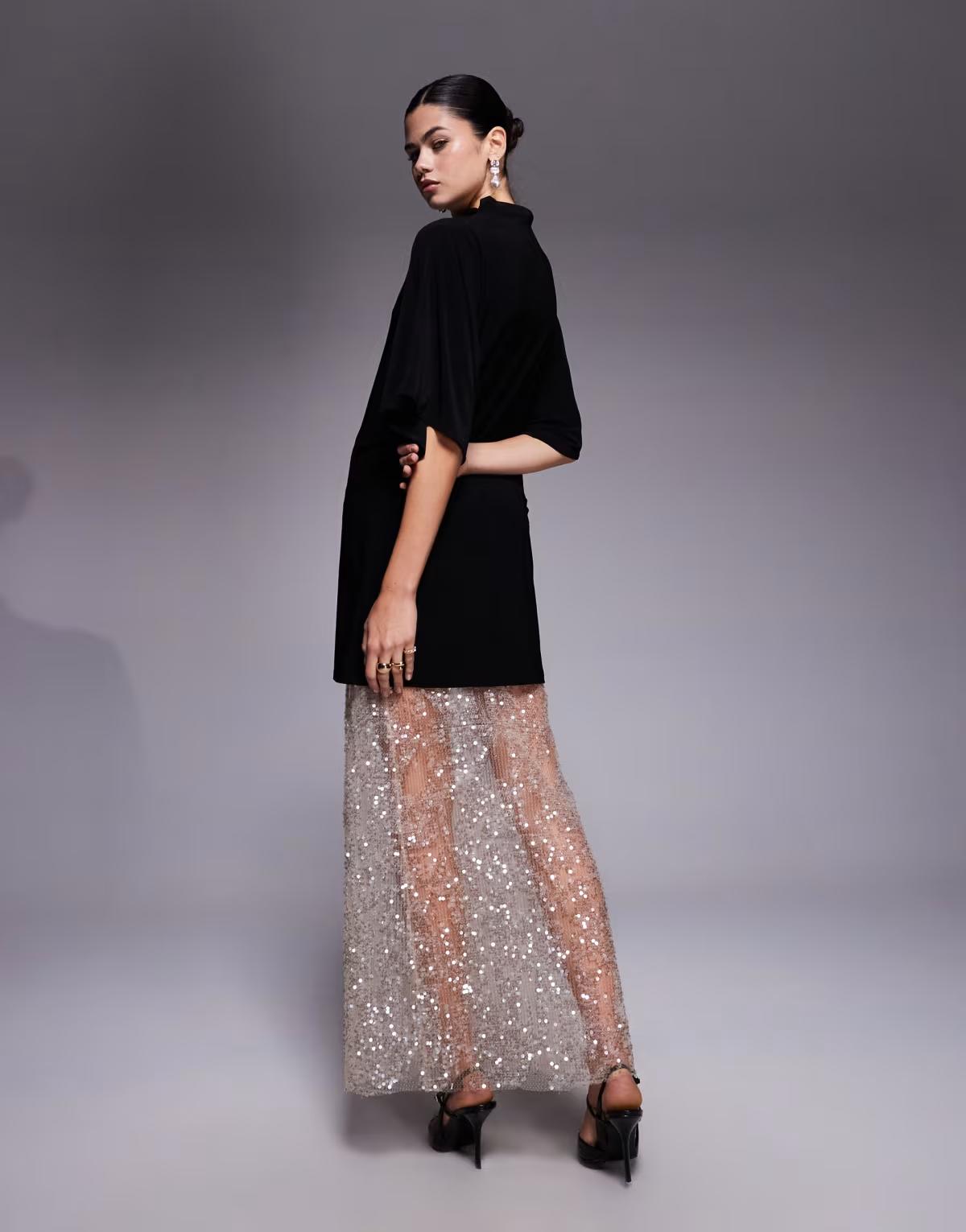 Embellished mesh skirt