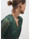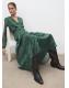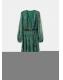 Estampado Paisley. Diseño largo. Diseño evasé. Cuello pico. Manga larga abullonada. Cinturón con cierre de hebilla. Cierre de cremallera lateral. Forro interior
