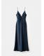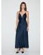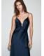 Tejido satinado. Diseño largo. Diseño recto. Escote de pico. Sin mangas. Tirantes finos. Detalle fruncido en el pecho. Cierre de cremallera en la parte posterior. Esta prenda pertenece a nuestra colección de fiesta y evento, diseñada para elevar tus looks en ocasiones especiales. El color azul es exclusivo online