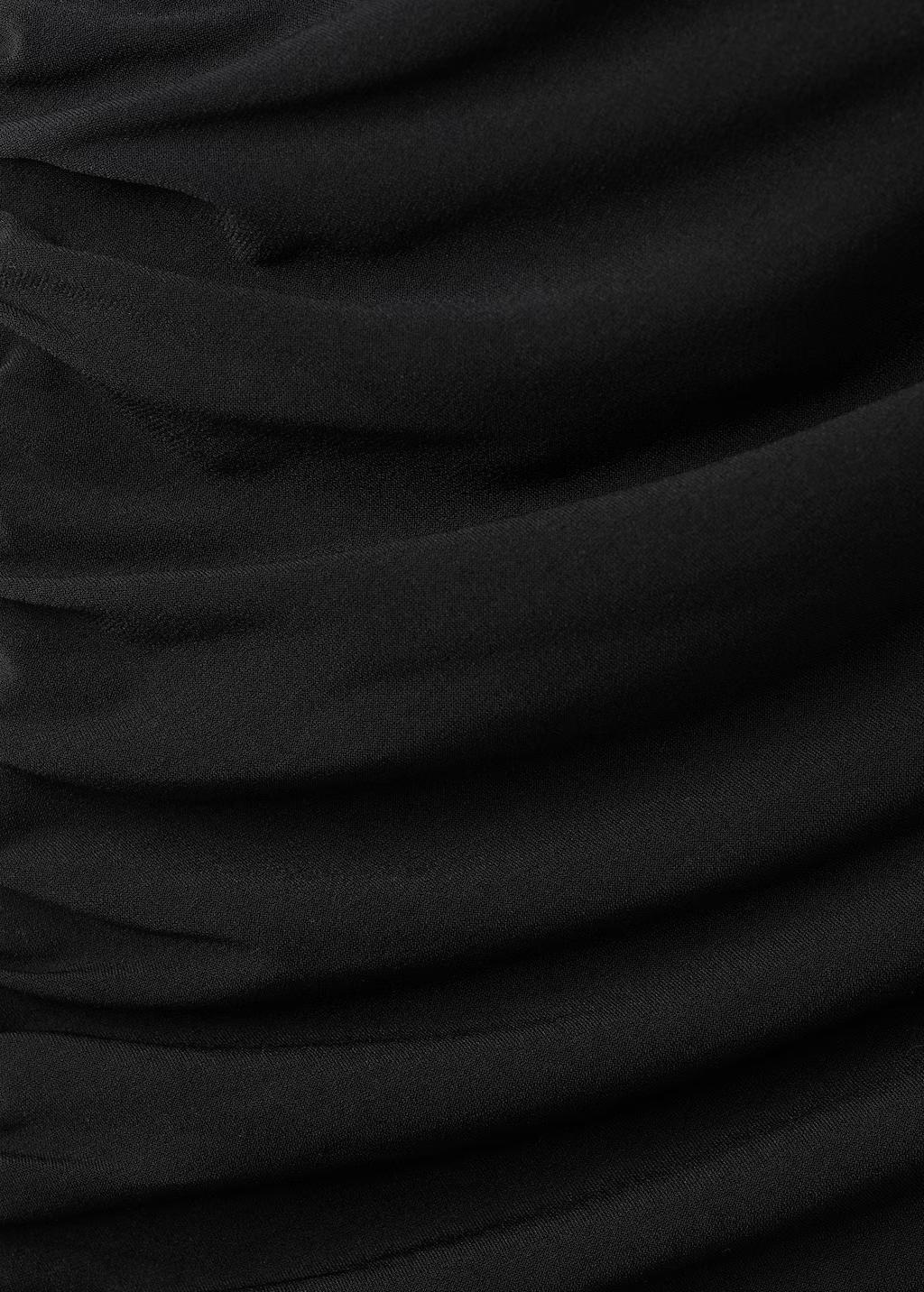 Diseño entallado. Cuello asimétrico. Sin mangas. Tirantes asimétricos. Fruncido lateral. Adorno de volantes. Esta prenda pertenece a nuestra colección de fiesta y evento, diseñada para elevar tus looks en ocasiones especiales. Diseño largo