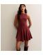 Dark Burgundy Shoulder Ring Mini Dress