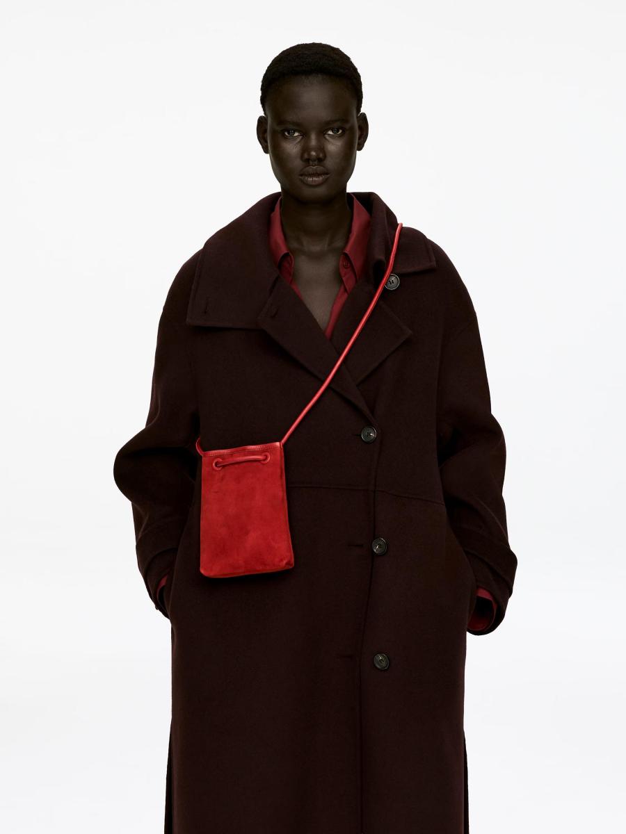 Crossbody bag in suede, featuring tubular shoulder straps that slide through metal eyelets. Finished with a cotton lining and magnetic tab closure. Width 15 cm, height 18.5 cm.ARKET/Women's clothes/Women's new arrivals/Women's new arrivals – Shoes and accessories