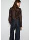 Confeccionada en tejido satinado, esta prenda presenta un diseño recto con detalles de strass. Incluye cuello camisero y manga larga con puños abotonados. El cierre delantero de botones oculto completa su estilo. Disponible en tallas Plus
