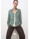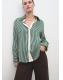 Con un diseño recto y combinado, esta prenda presenta un patrón de rayas con cuello camisero y manga larga con puños abotonados. Se cierra mediante botones en la parte delantera. Disponible en tallas Plus