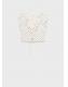 Esta blusa de lunares con diseño crop y entallado realza la figura. El escote de pico con detalle de volante añade un detalle único. Incluye un lazo ajustable en la espalda. Combínalo con su falda a conjunto para crear un 'total look'