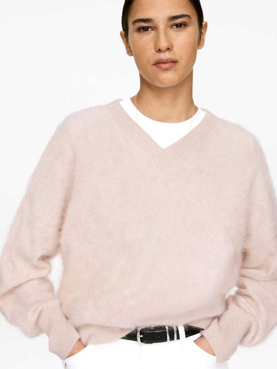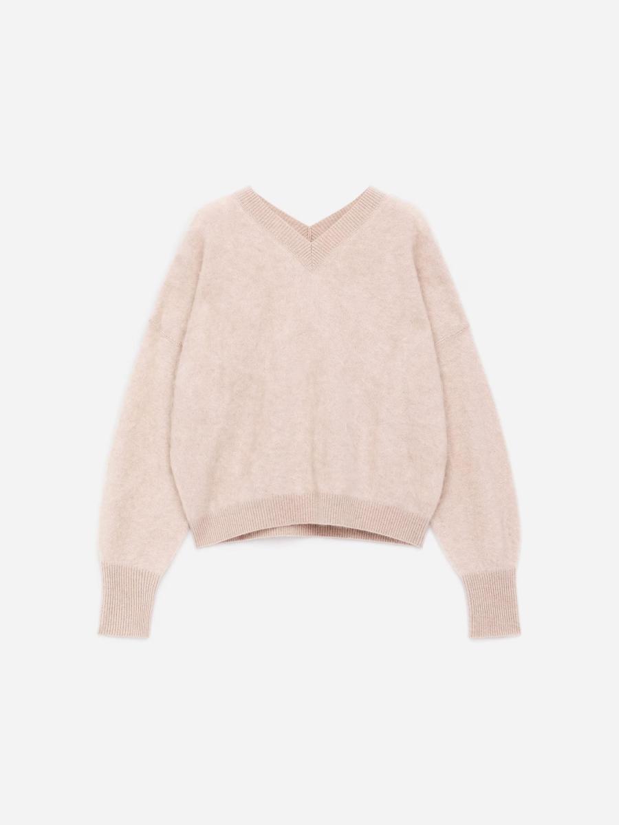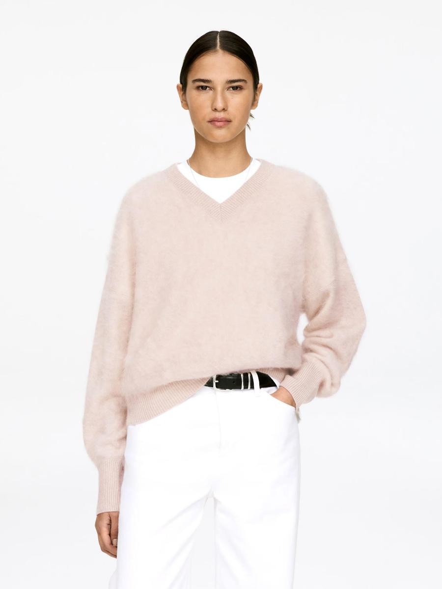 Plush jumper crafted from pure cashmere with a brushed finish. Features a V-neck at both the front and back and finished with ribbed trims. This style contains 100% GCS cashmere. The Good Cashmere Standard (GCS) is owned by the Aid by Trade Foundation (AbTF) and sets out requirements on animal welfare, land management and herders' working conditions. The percentage refers to the main material, excluding threads.ARKET/Women's clothes/Women's knitwear/Women's cashmere clothes