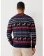 Navy Blue Regular Fit Christmas Dog Fairisle Pattern Crew Neck Jumper