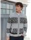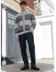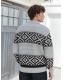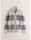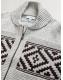 Grey/Black Regular Fit Fairisle Pattern Zip Through Cardigan with Wool