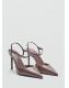Efecto charol. Con punta. Tacón de aguja. Cierre de tira tobillera con hebilla metálica. El tacón mide 8,5 cm