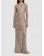 亮片露背长款连衣裙 - 米黄色 - 女士 - Brunello Cucinelli - 背面纽扣开合.