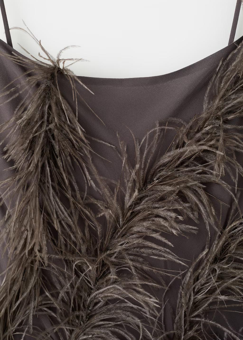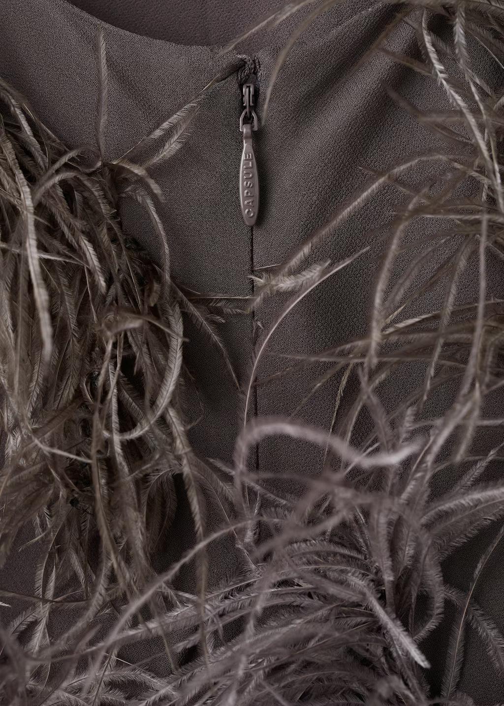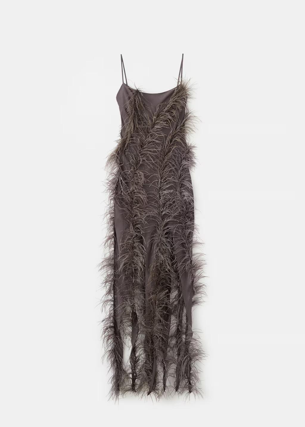Este diseño abraza la silueta con naturalidad, mientras que su diseño se ve elevado por una elegante decoración de plumas dispuestas de manera dinámica por toda la prenda. El diseño incorpora sensuales aberturas y detalles de flecos que fluyen en perfecta armonía con las plumas, logrando una declaración de sofisticación y carácter. Diseño entallado. Diseño largo. Adorno de plumas cosidas a mano. Cuello escotado. Tirantes finos. Bajo acabado con flecos. Cierre de cremallera en la parte posterior. Forro interior. Esta prenda pertenece a nuestra colección de fiesta y evento, diseñada para elevar tus looks en ocasiones especiales. Los artículos de la colección CAPSULE se pueden cambiar o devolver en un plazo de 14 días desde la fecha de envío. Capsule: una colección de prendas de edición limitada, hechas con los mejores tejidos y los máximos cuidados en el patronaje, para conseguir los mejores acabados. Esta colección, de carácter exclusivo, está pensada para los eventos y ocasiones más especiales