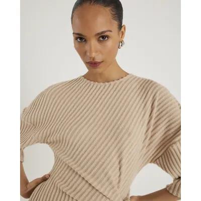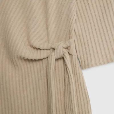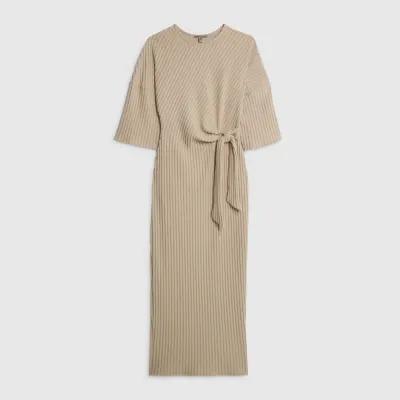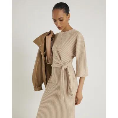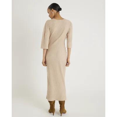 Beige Short Sleeve Cosy Ribbed Midi Dress
